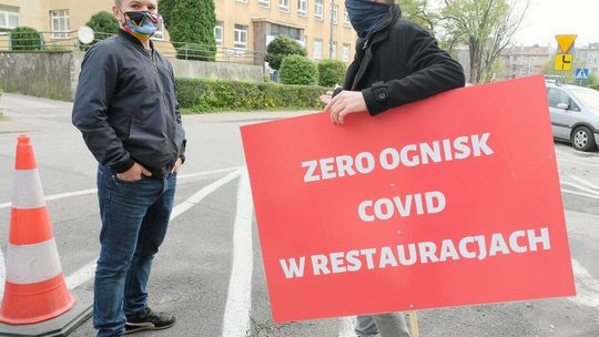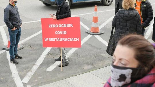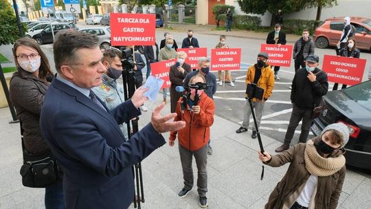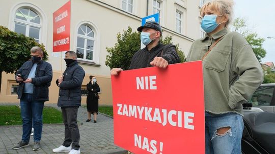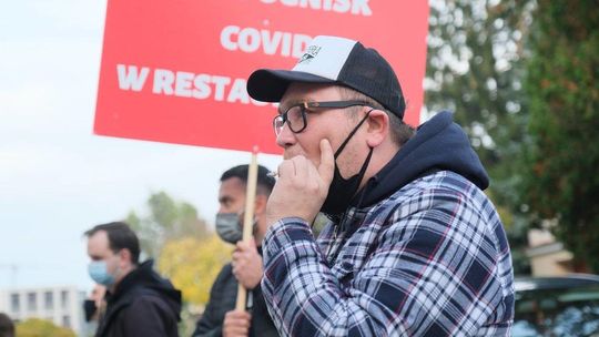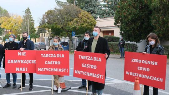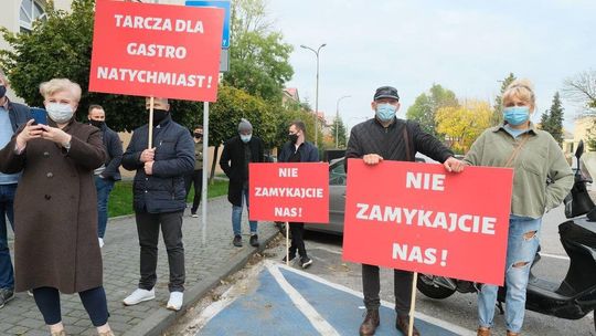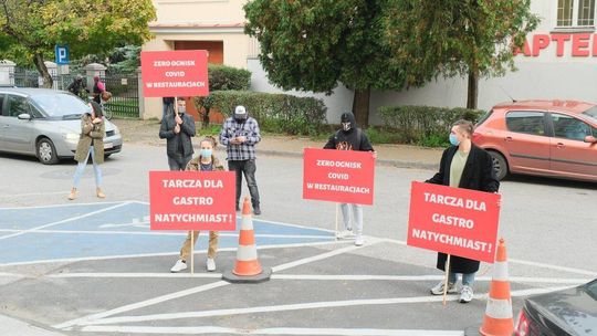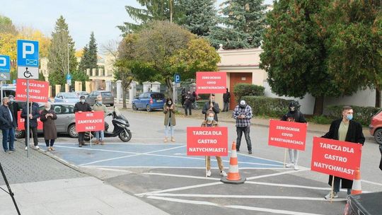 Protest pracowników branży gastronomicznej przed Lubelskim Urzędem Wojewódzkim