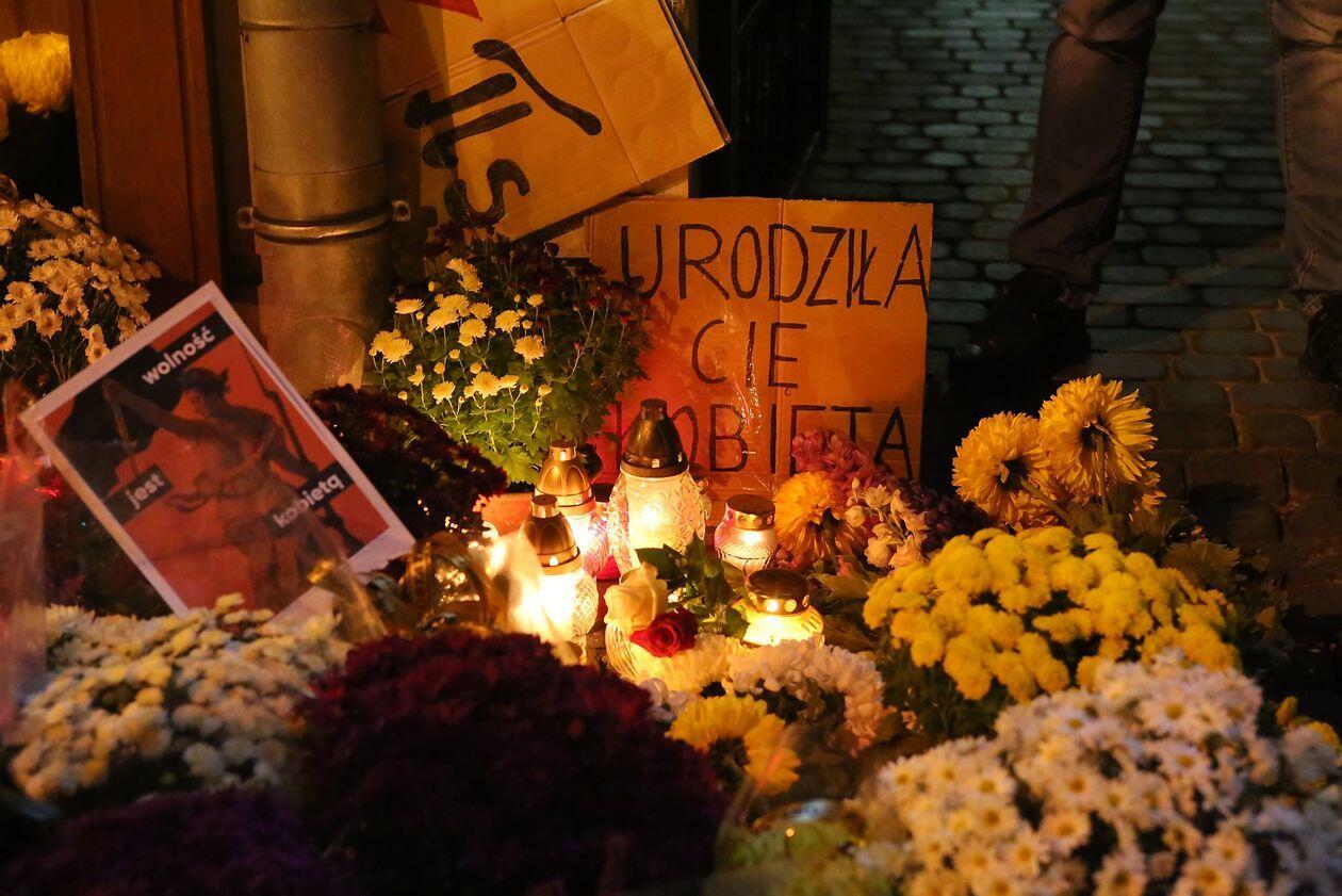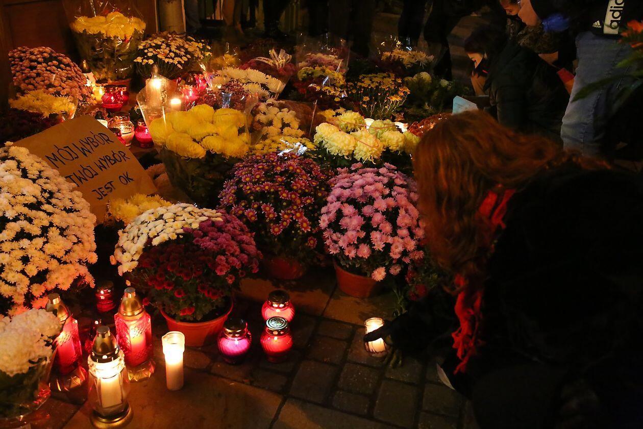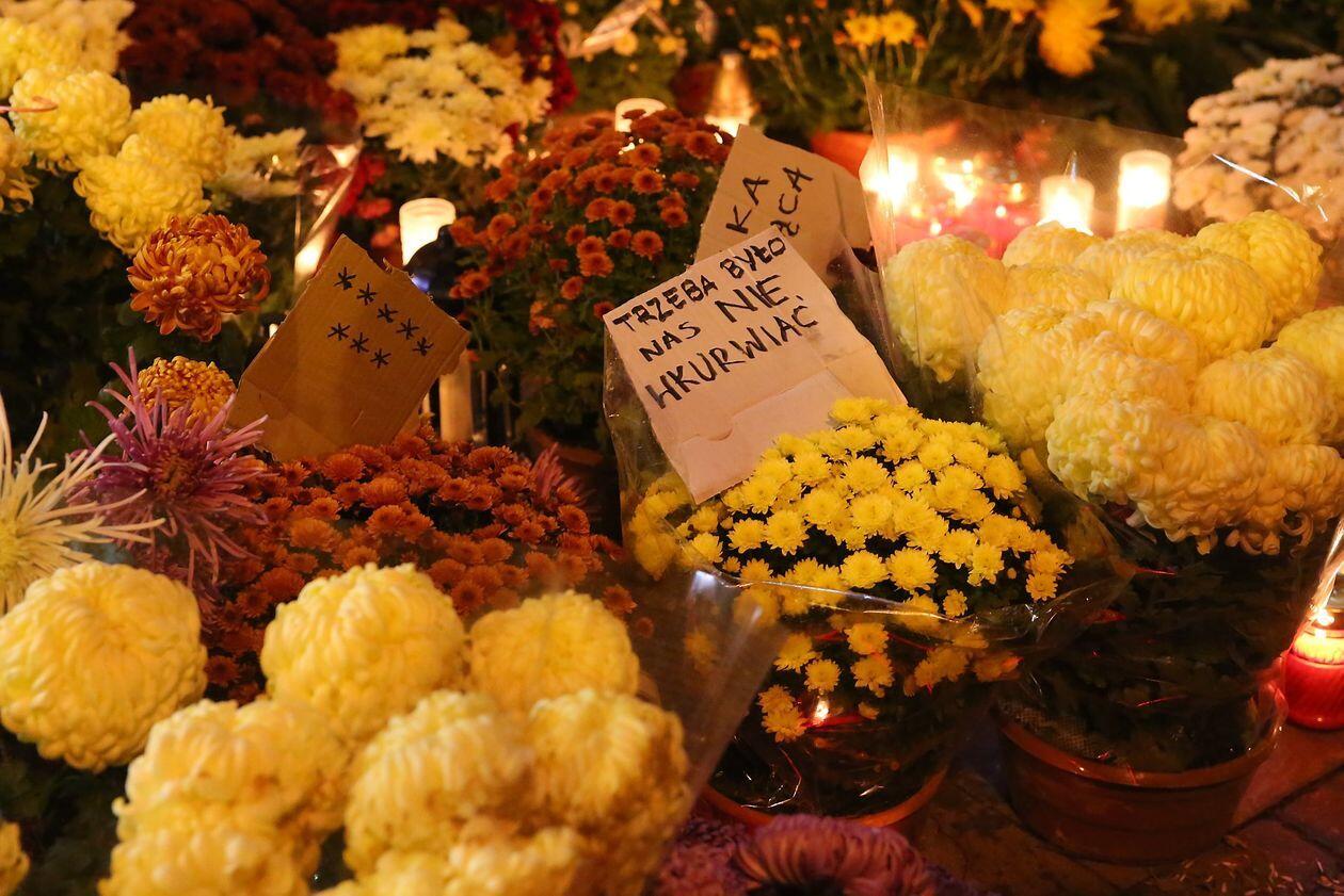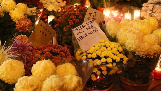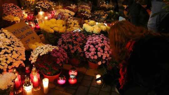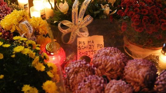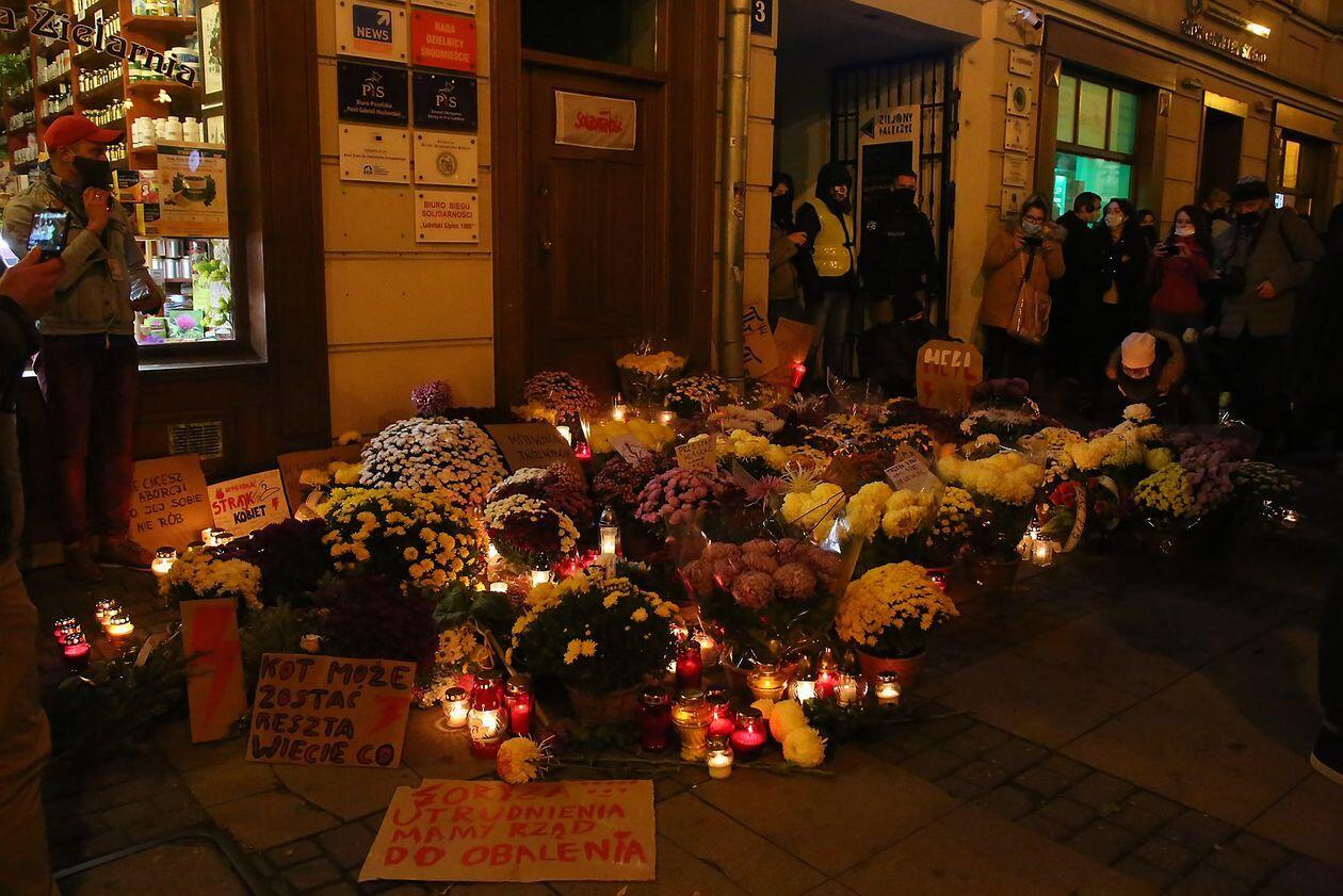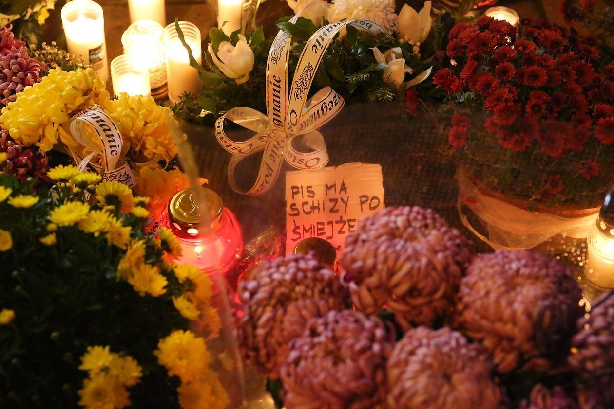 Chryzantemy, wiązanki i znicze przed siedzibą PiS w Lublinie