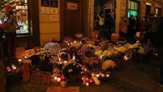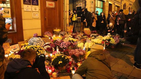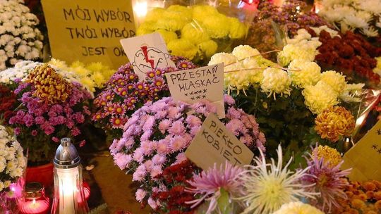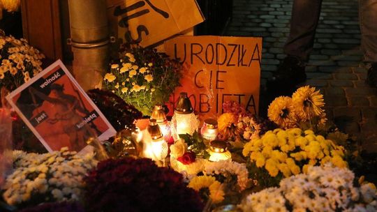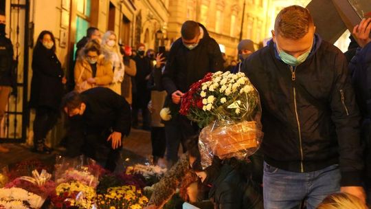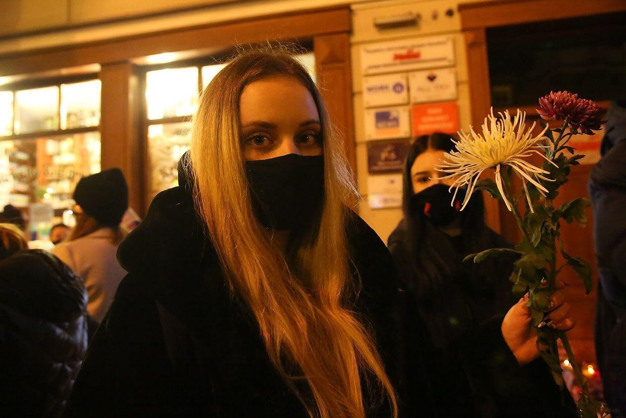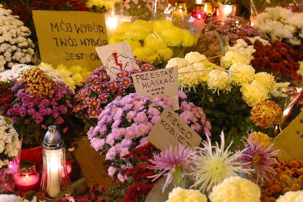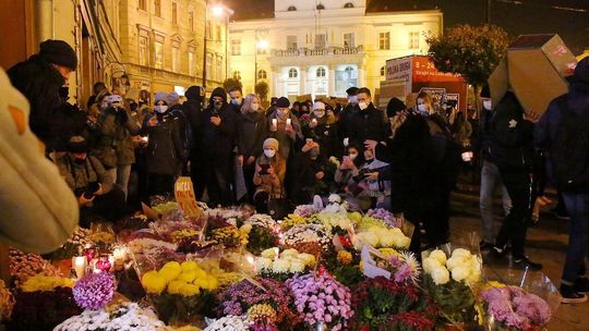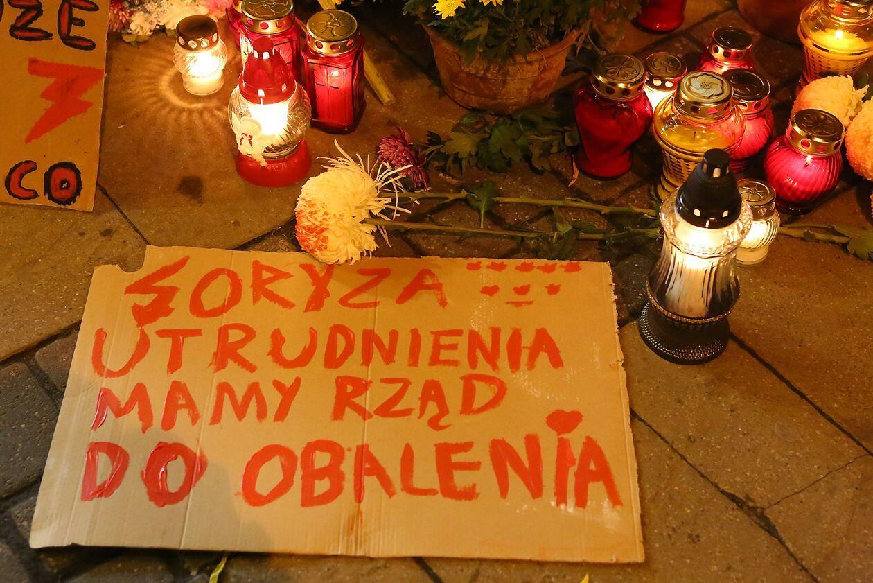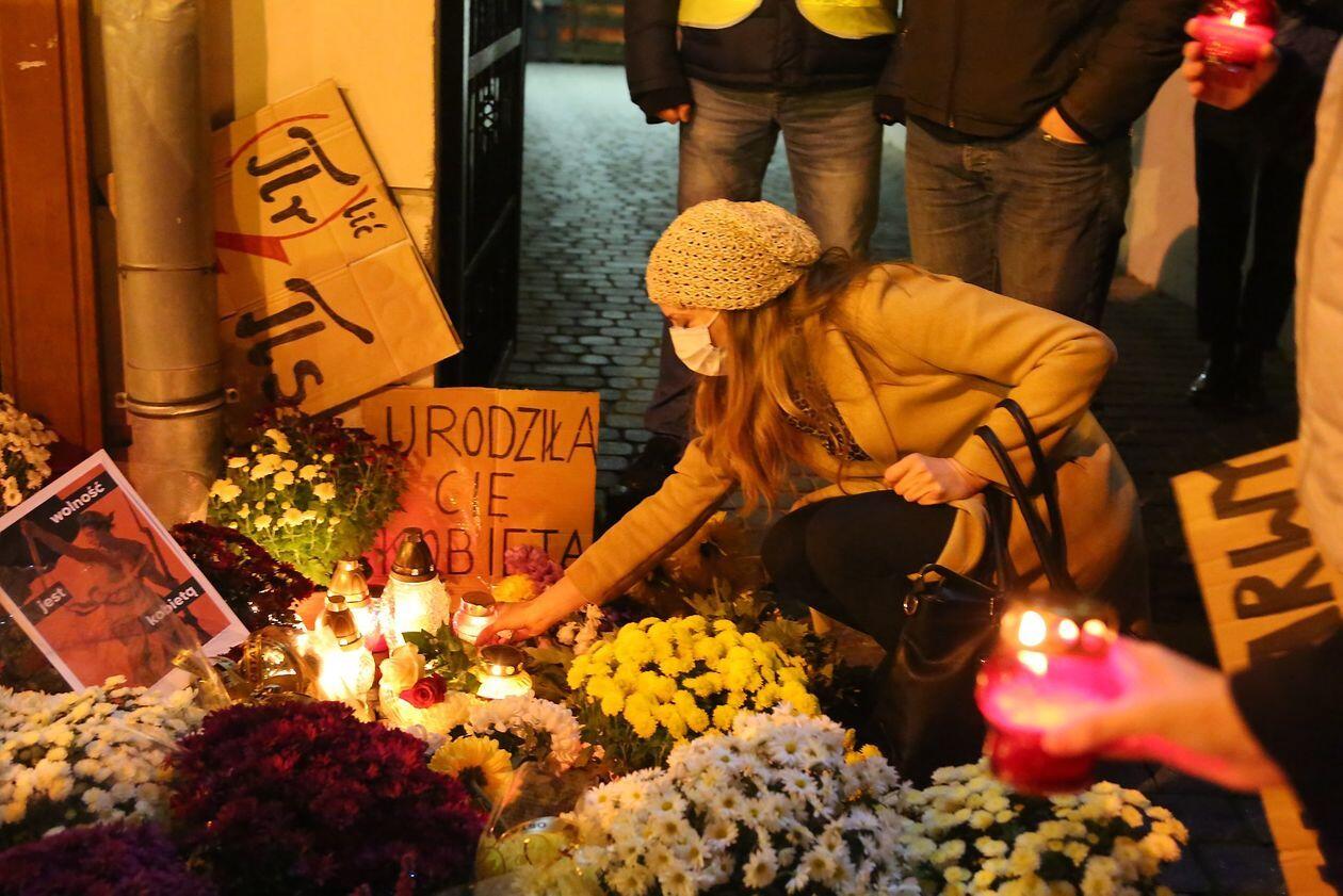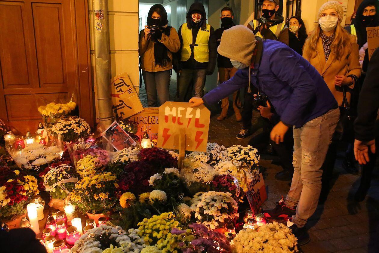 Chryzantemy, wiązanki i znicze przed siedzibą PiS w Lublinie