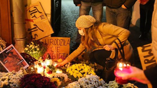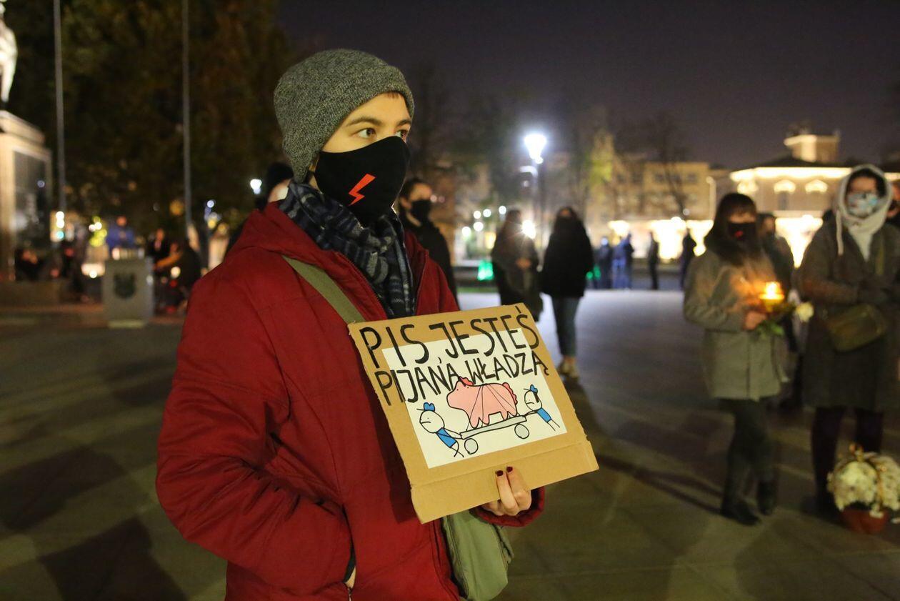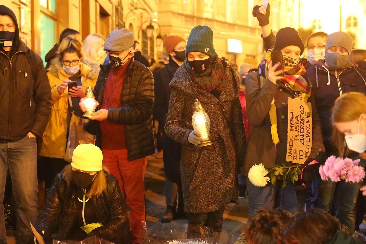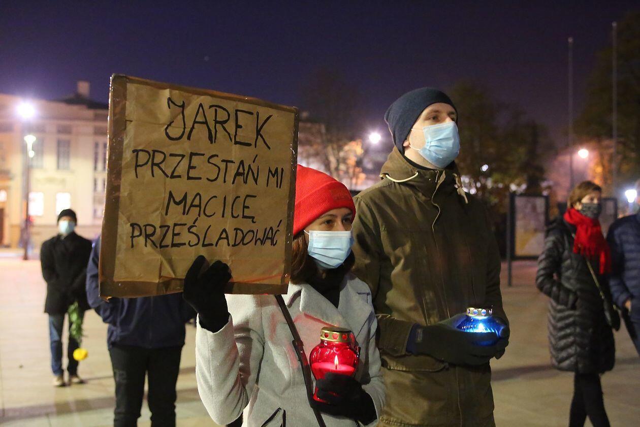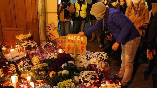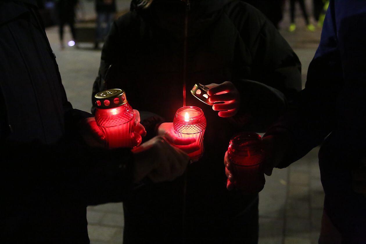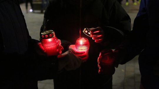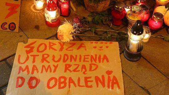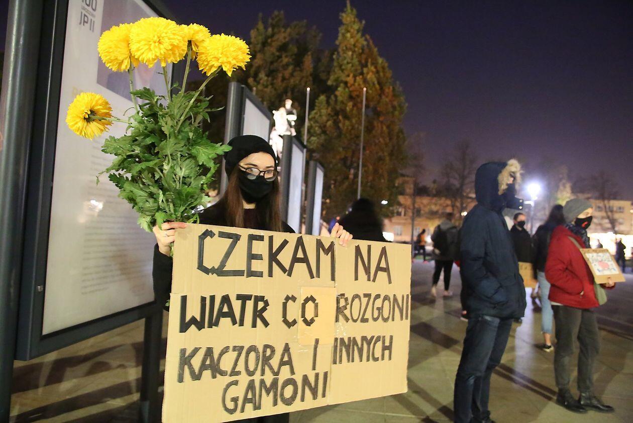 Chryzantemy, wiązanki i znicze przed siedzibą PiS w Lublinie
