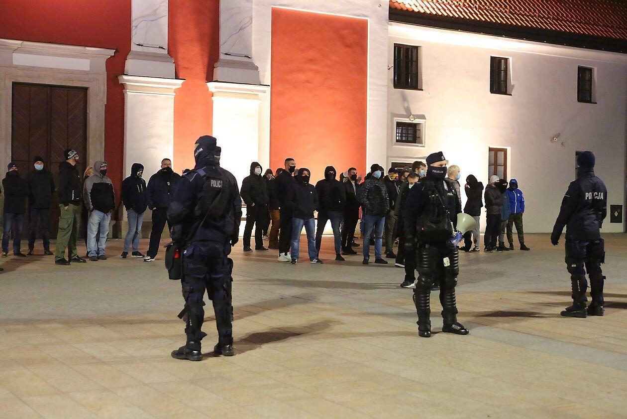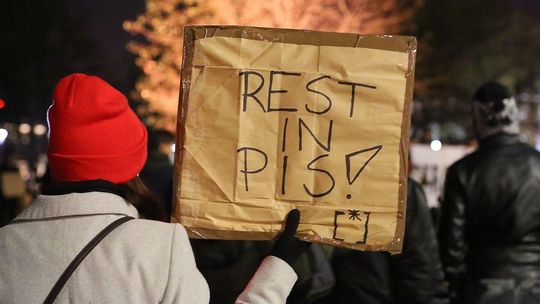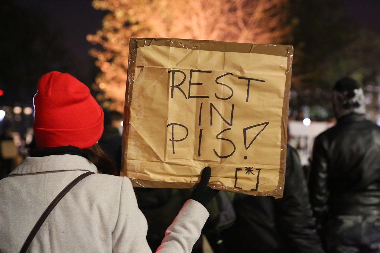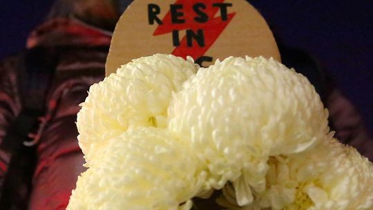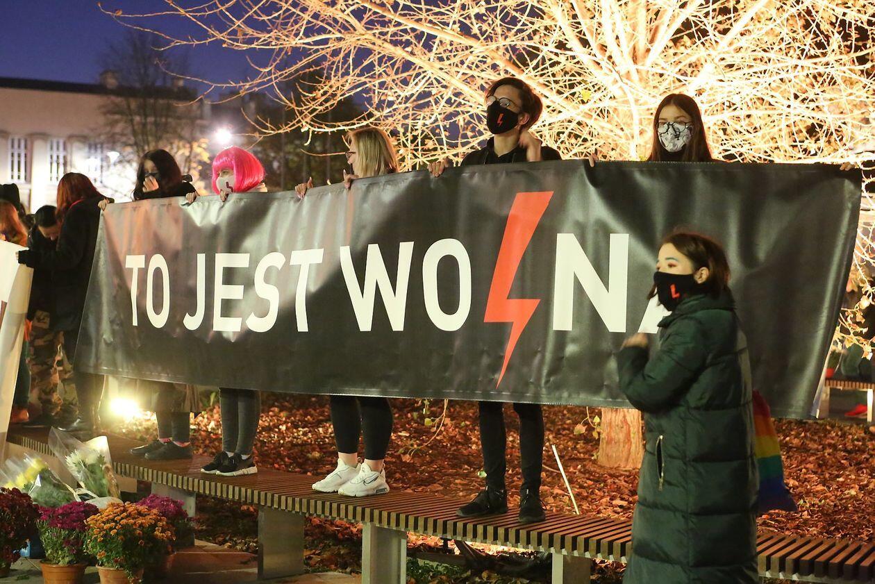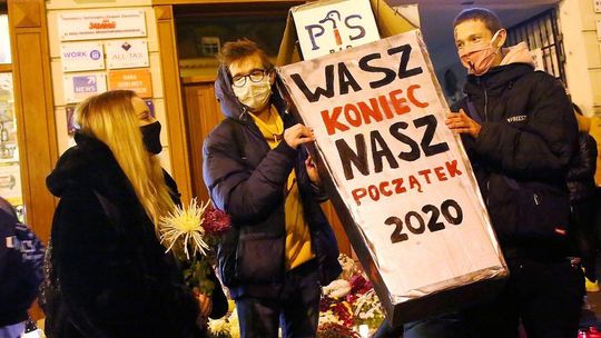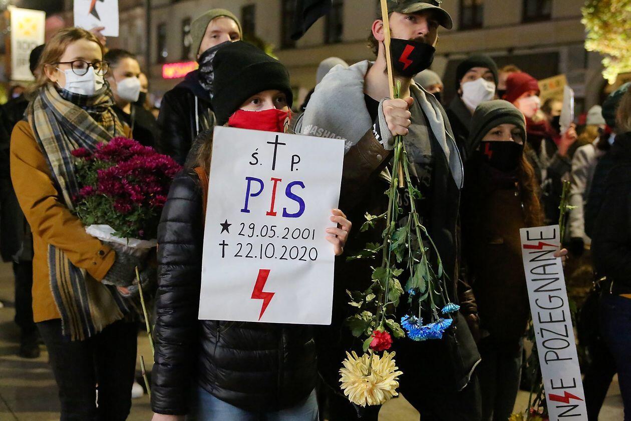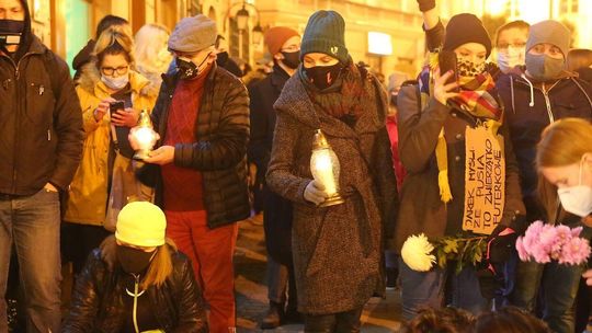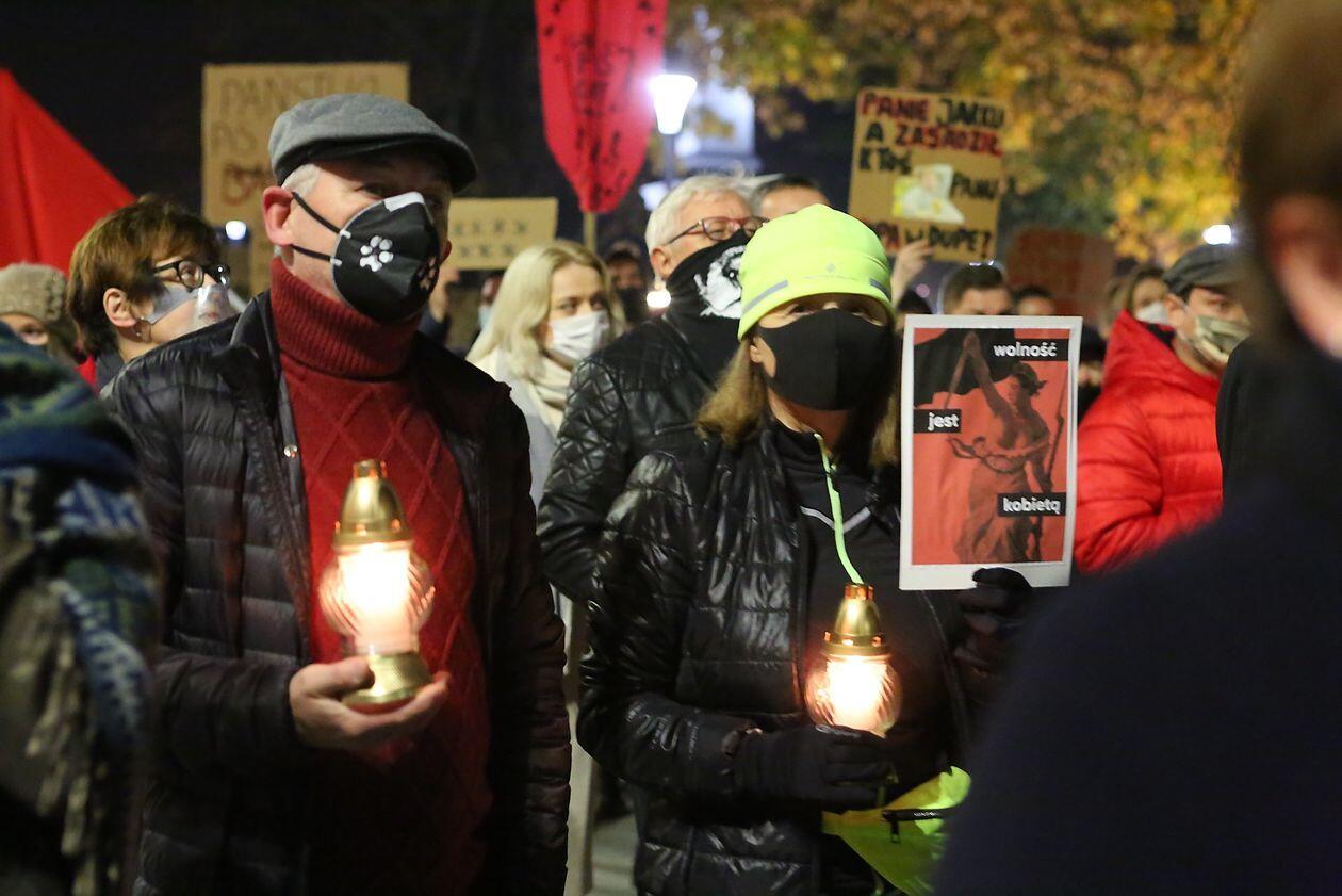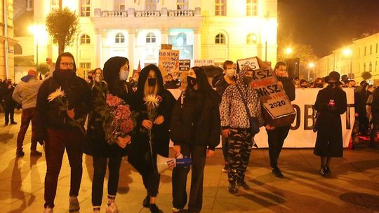 Chryzantemy, wiązanki i znicze przed siedzibą PiS w Lublinie