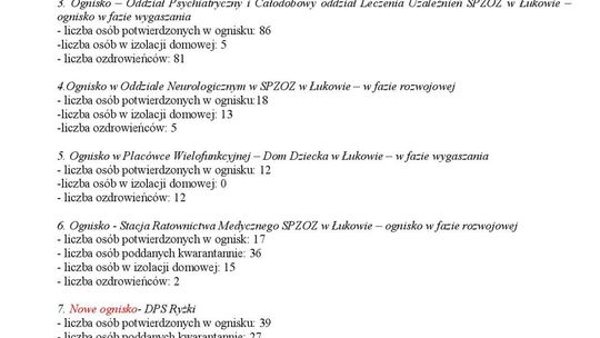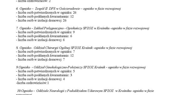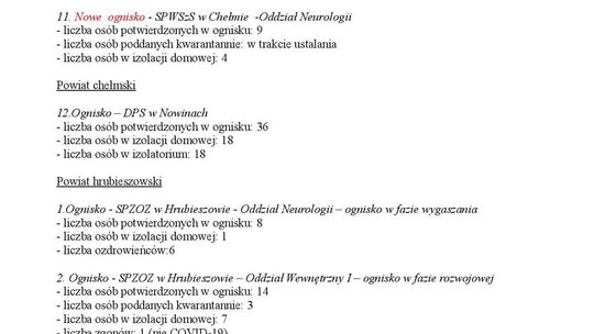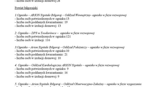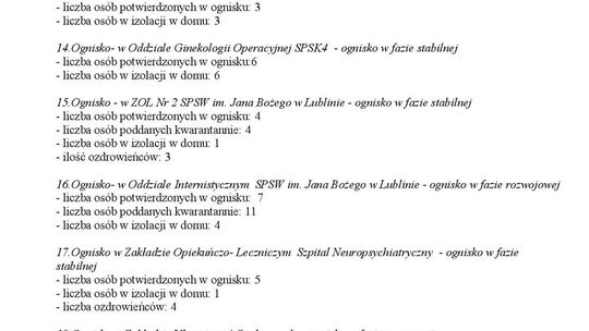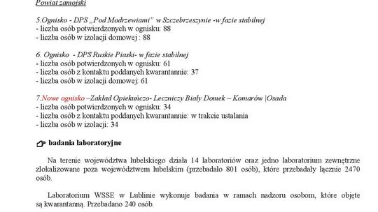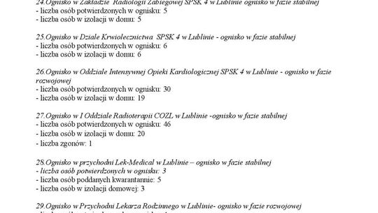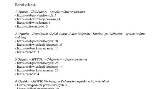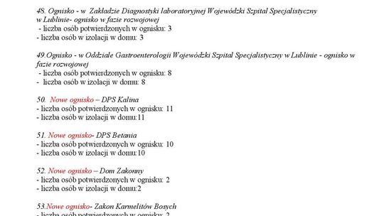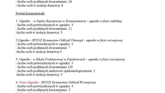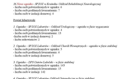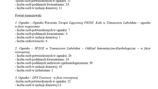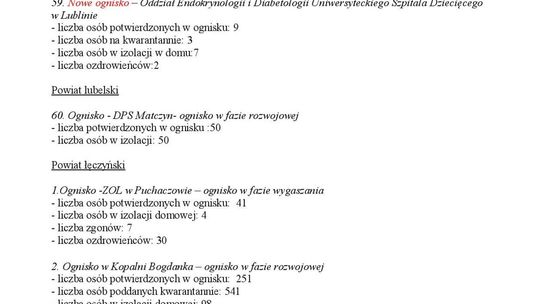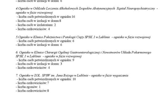 Ogniska epidemiczne w województwie lubelskim. 4 listopada 20...