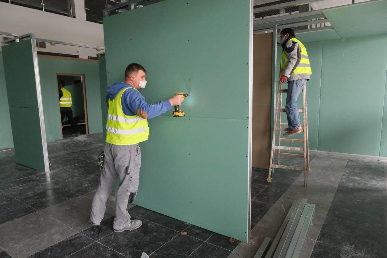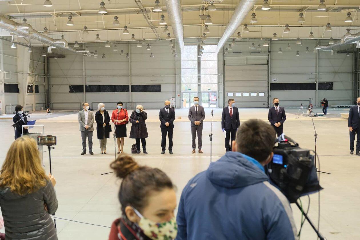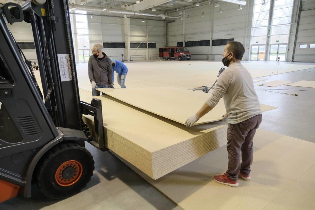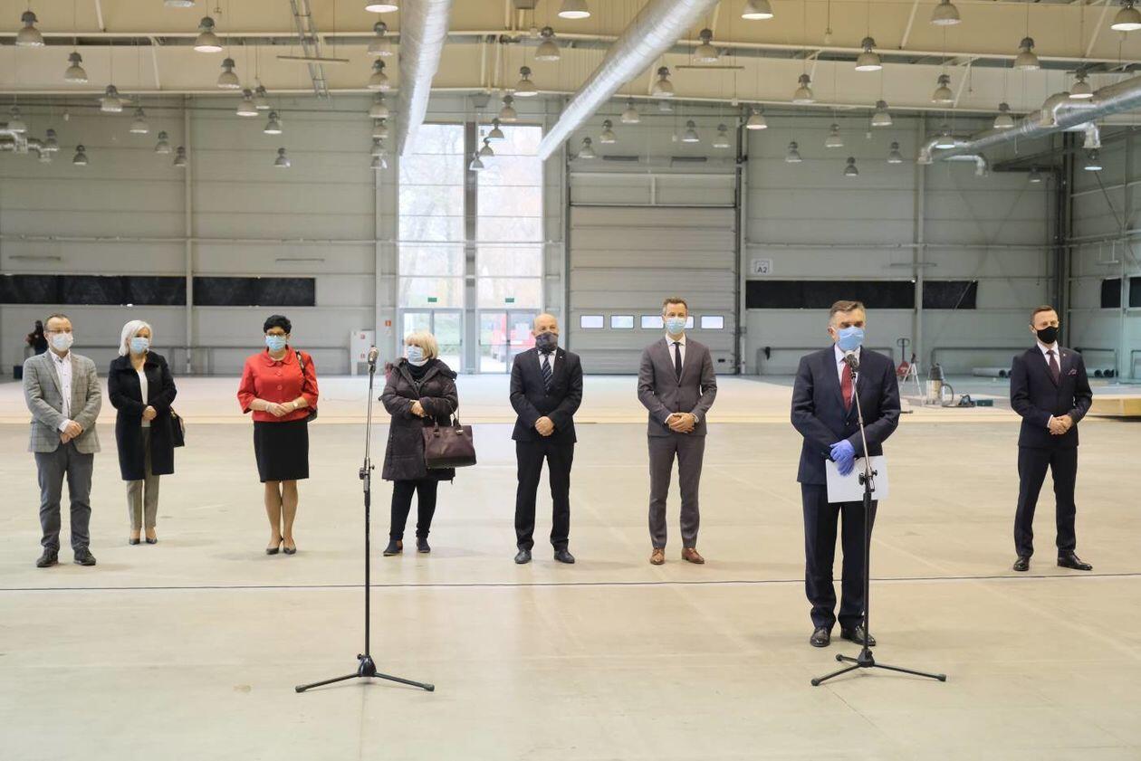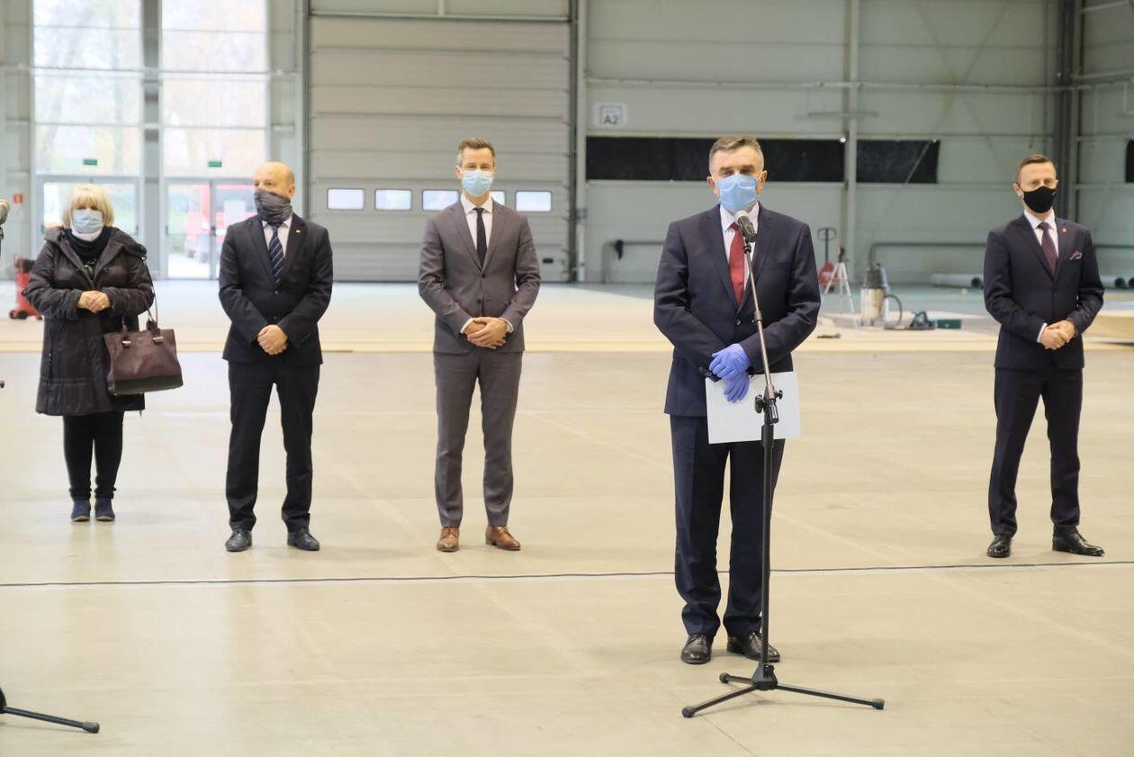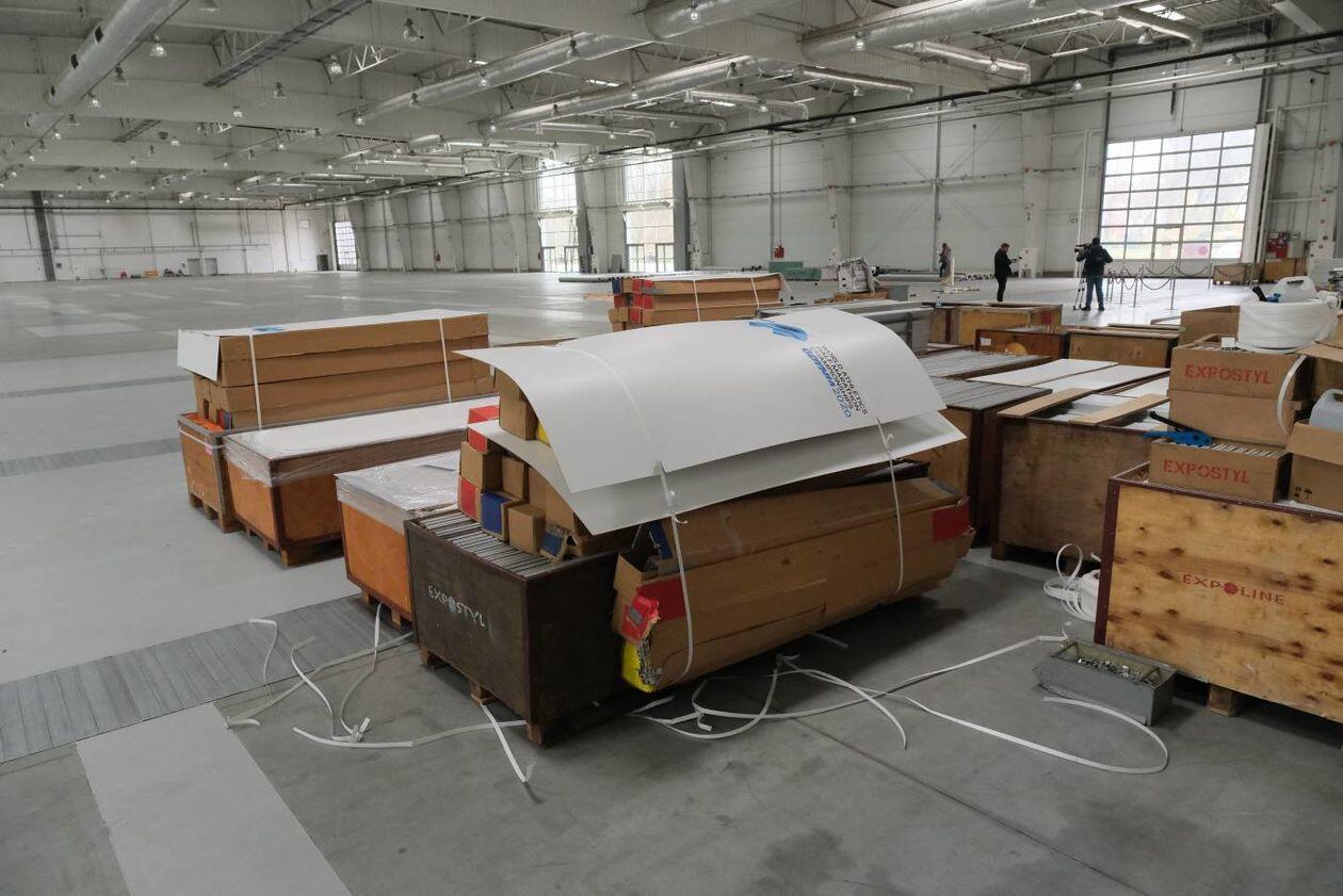 Budowa szpitala polowego w hali Targów Lublin