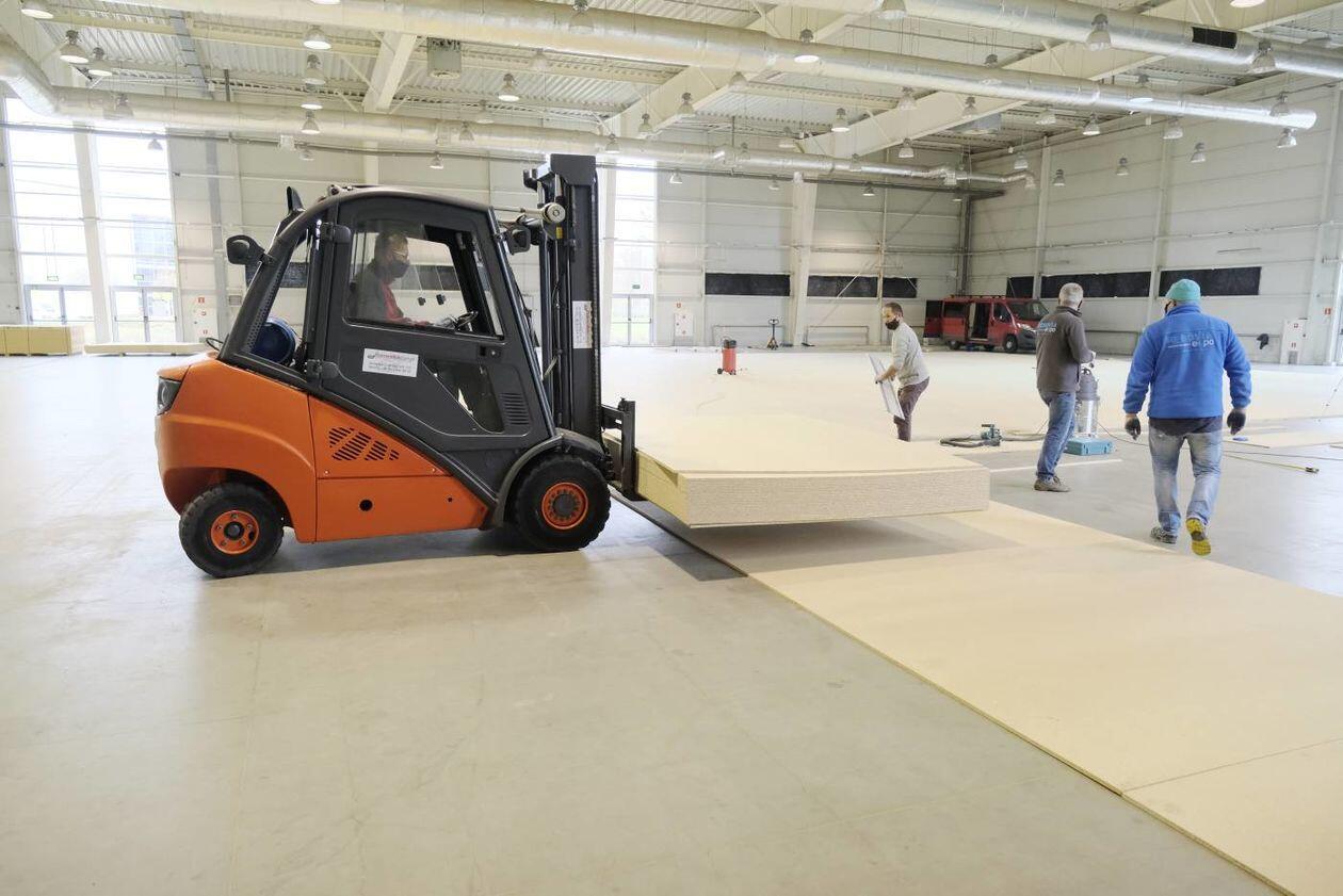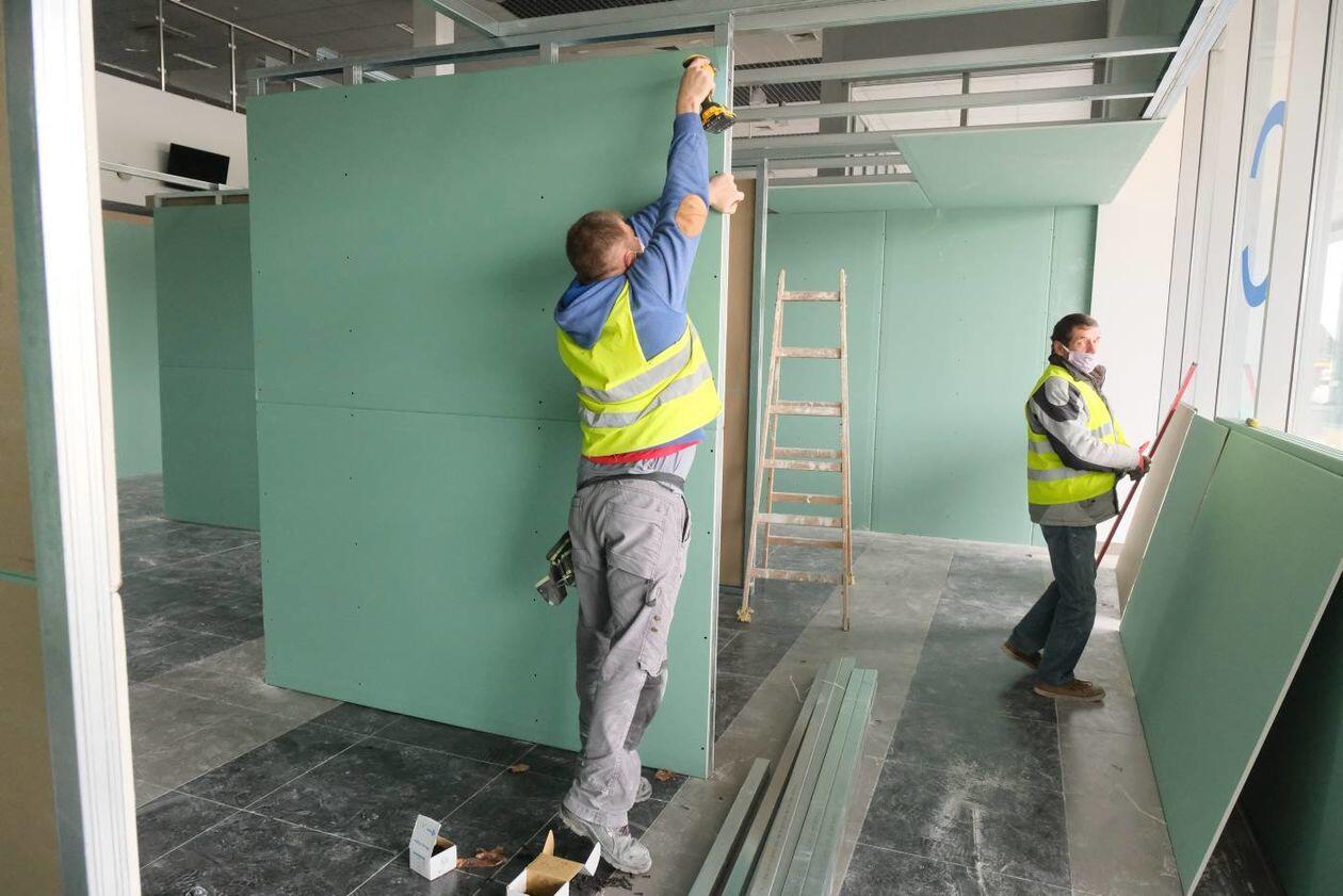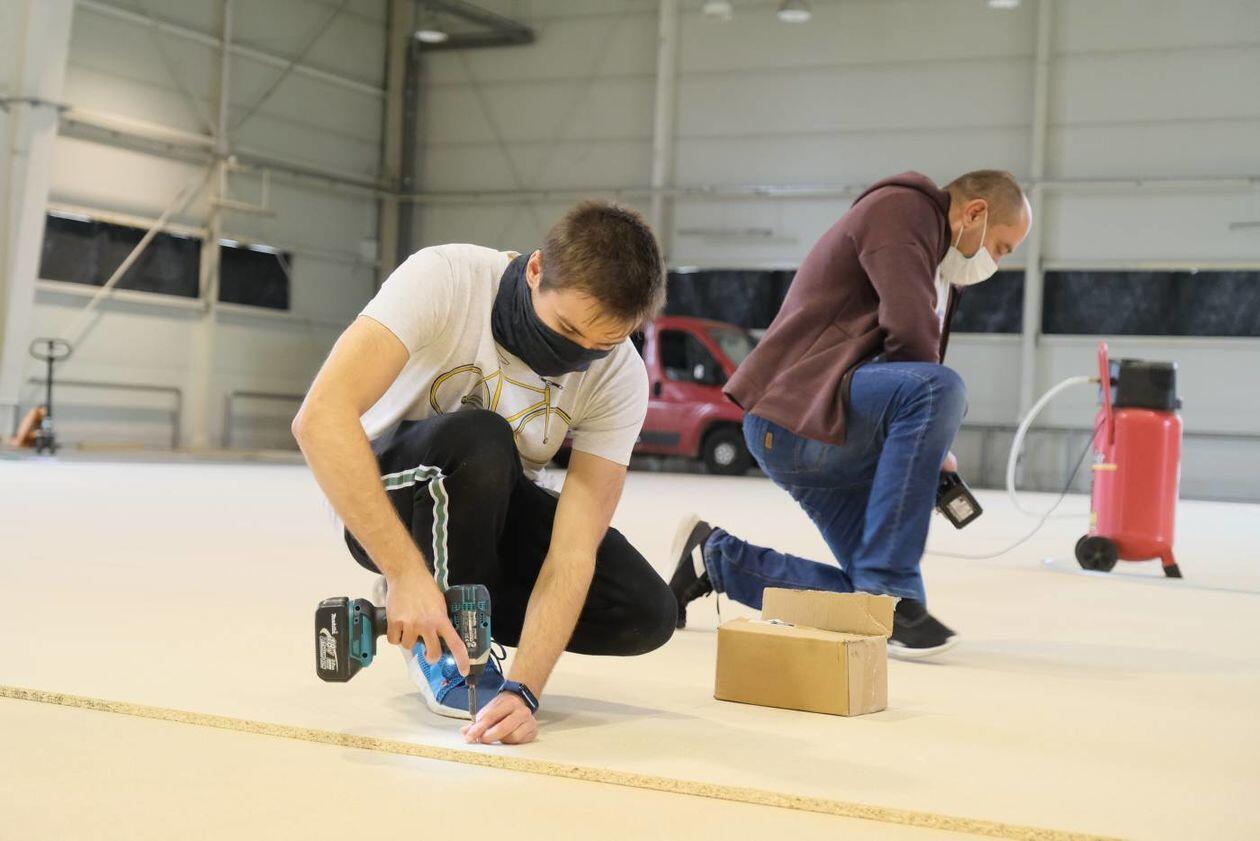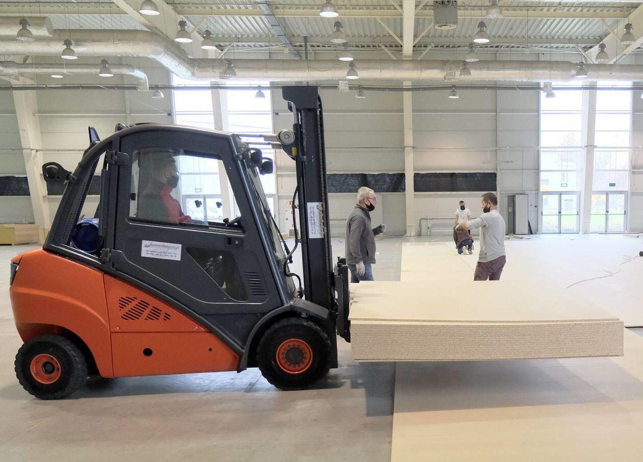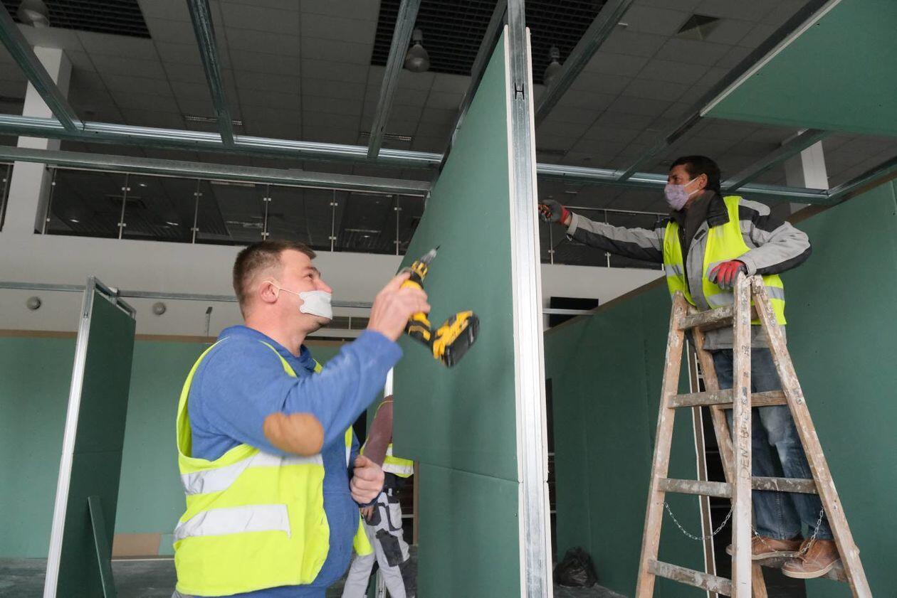 Budowa szpitala polowego w hali Targów Lublin
