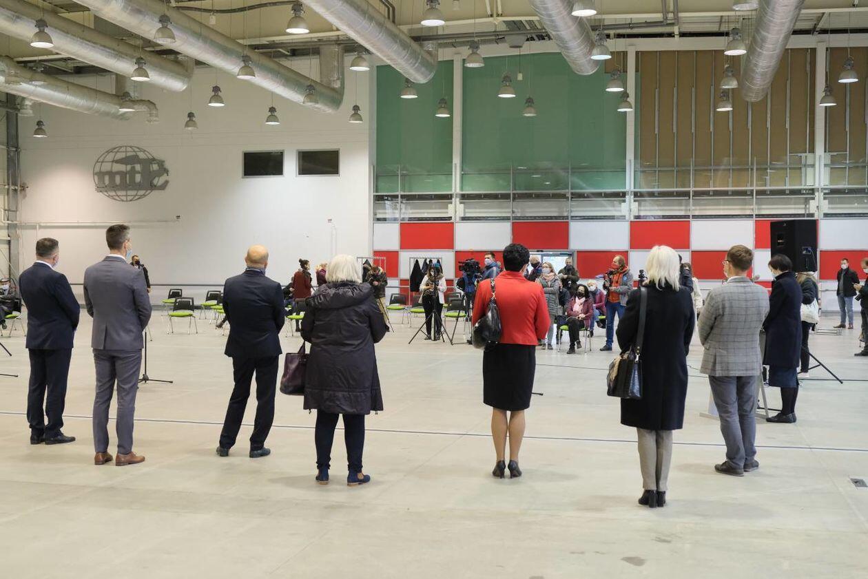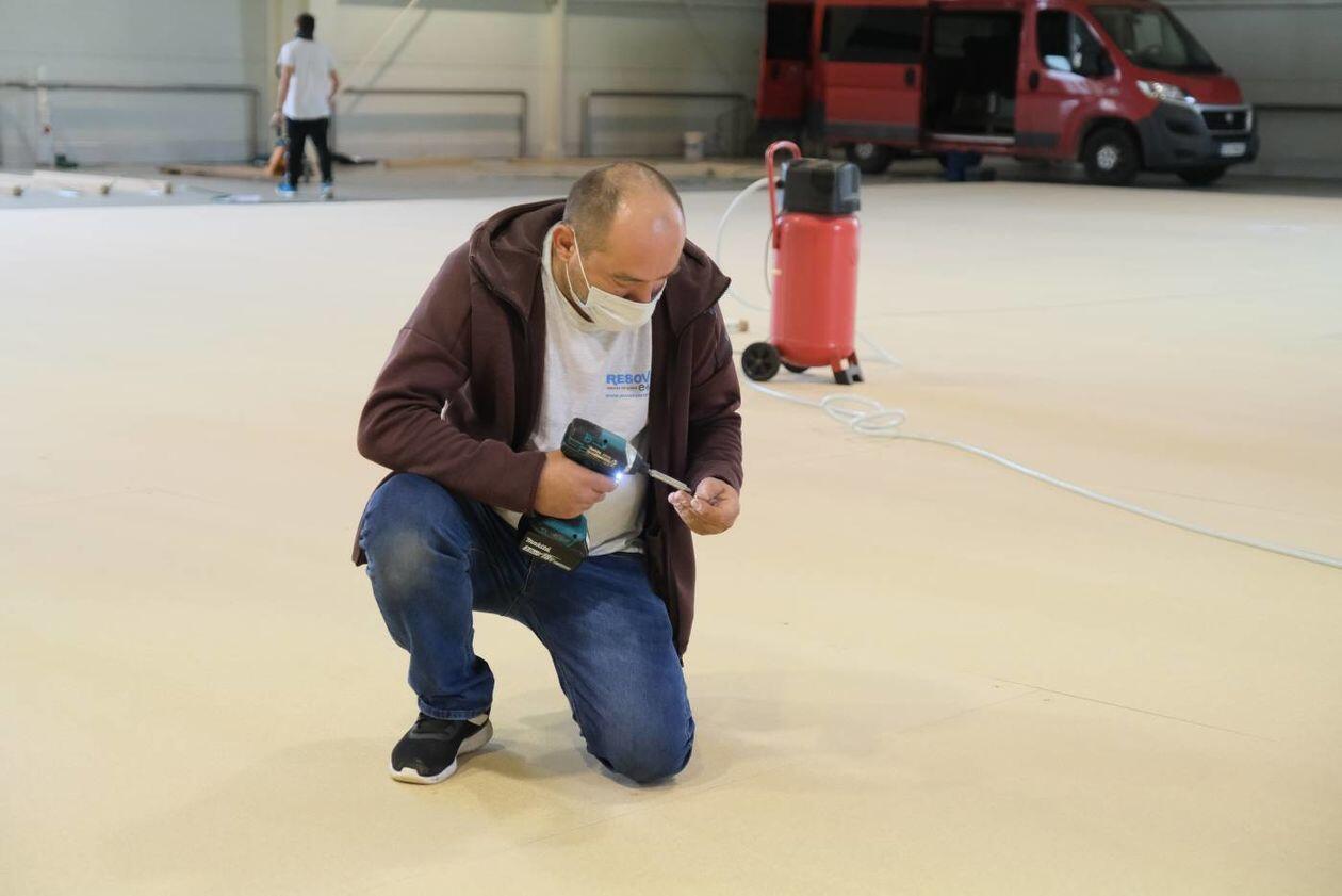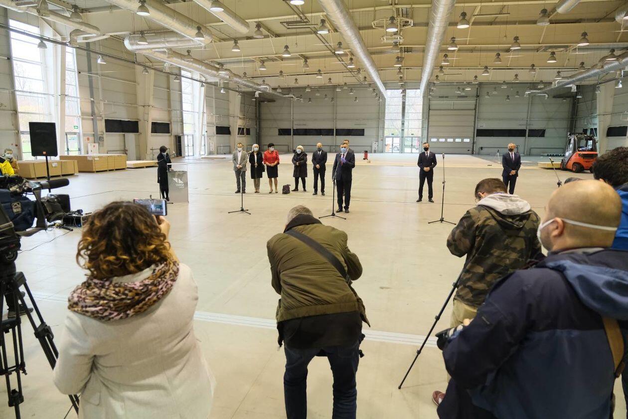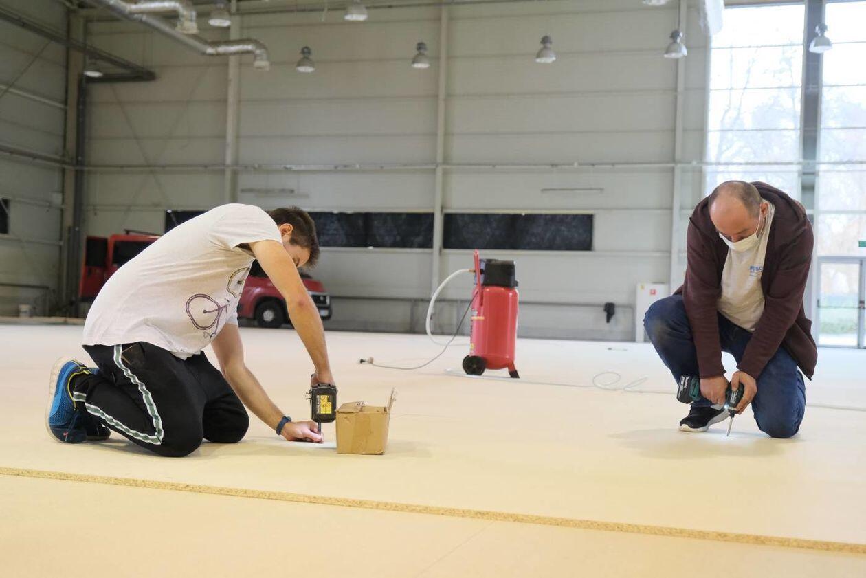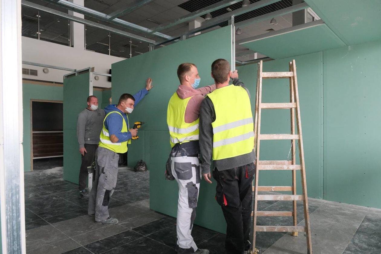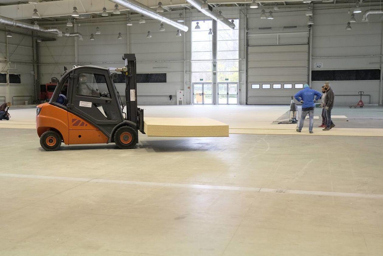 Budowa szpitala polowego w hali Targów Lublin