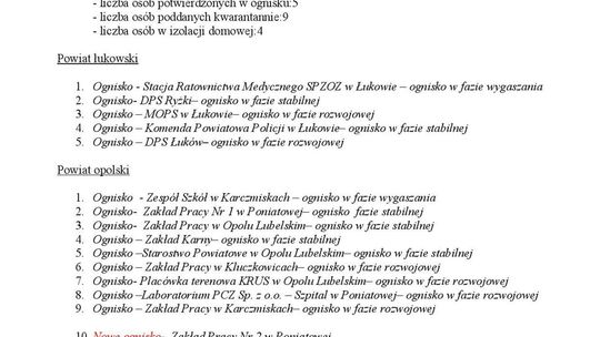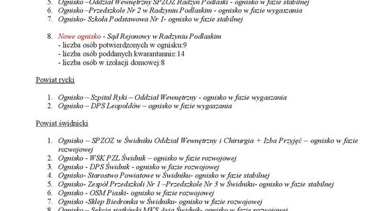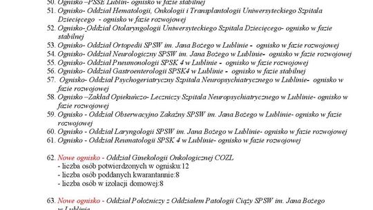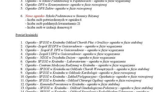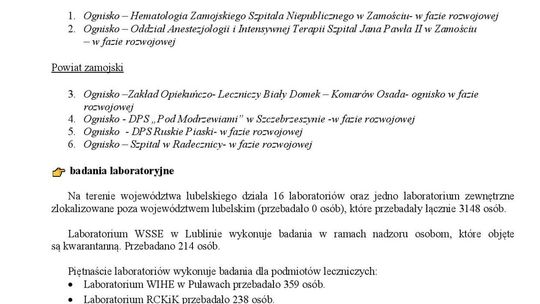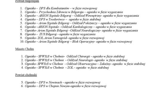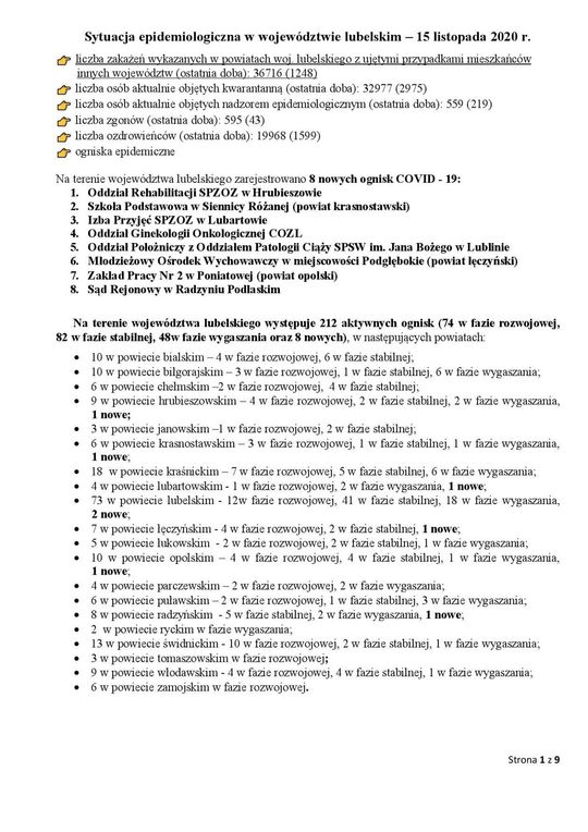 Ogniska epidemiczne w województwie lubelskim. 15 listopada 2...