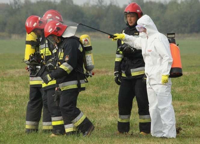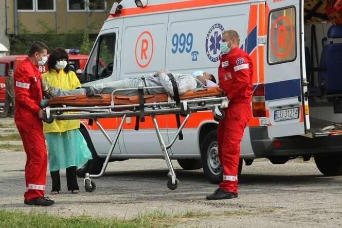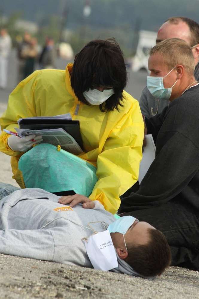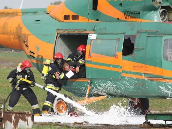 Śmigłowiec lądował awaryjnie, bo pilot miał świńską grypę - ćwiczenia służb ratowniczych w Świdniku. Zdjęcia: Maciej Kaczanowski.