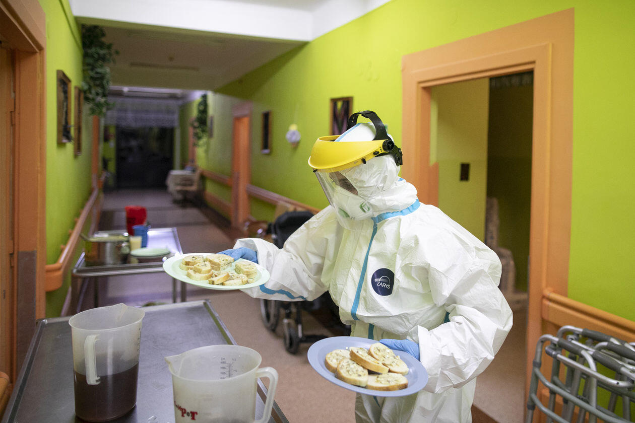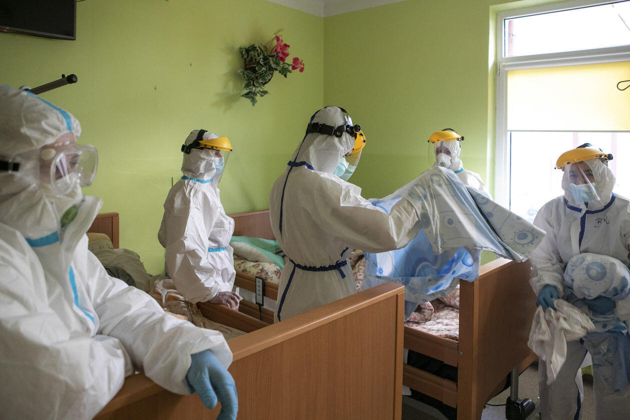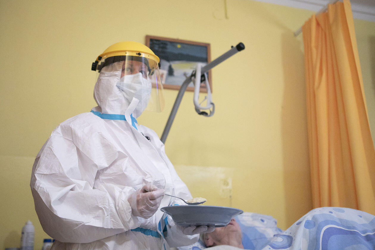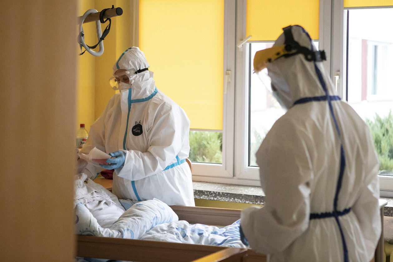 Pracownice Domu Pomocy Społecznej "Senior" w Różance podczas opieki nad pensjonariuszami chorymi na Covid-19