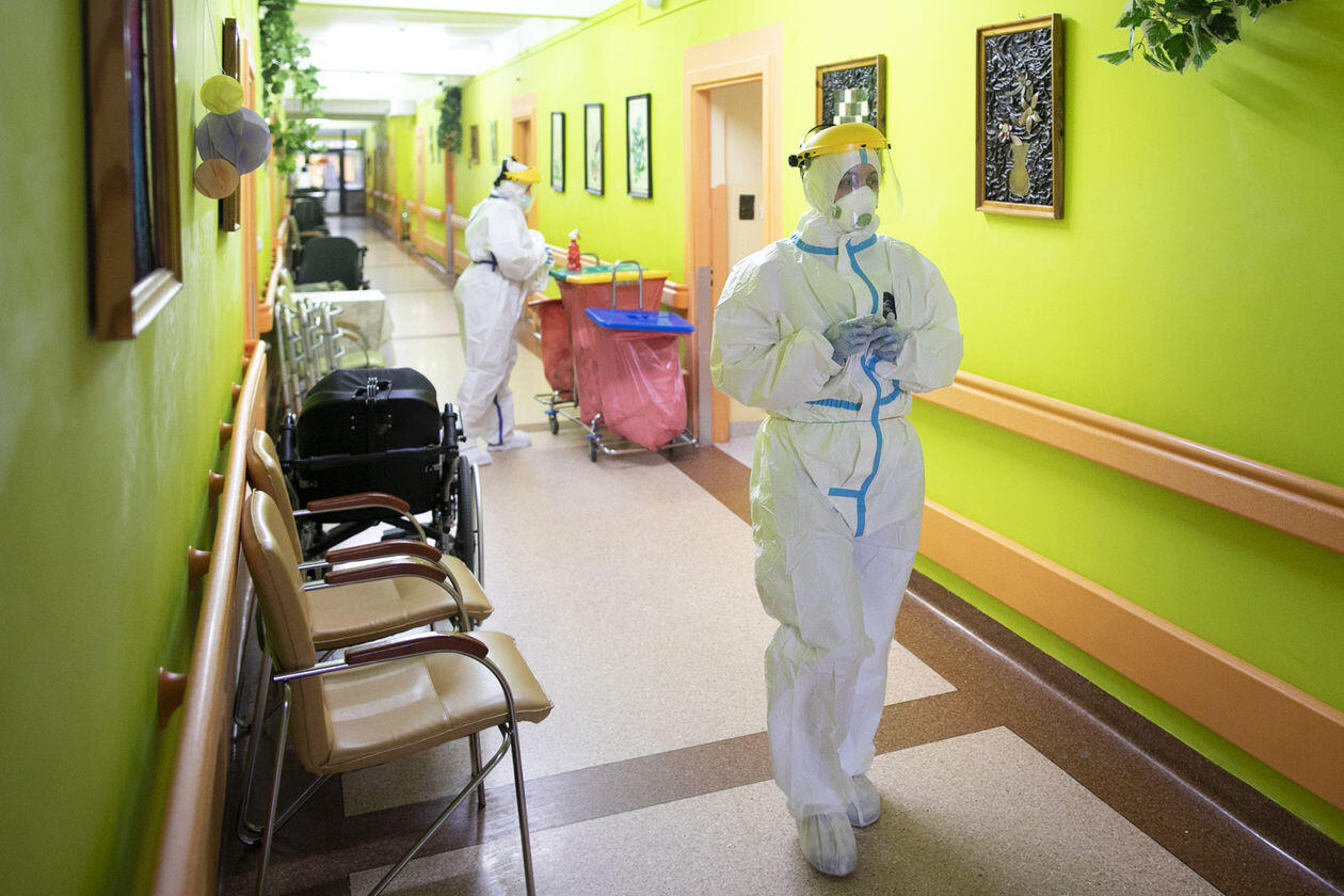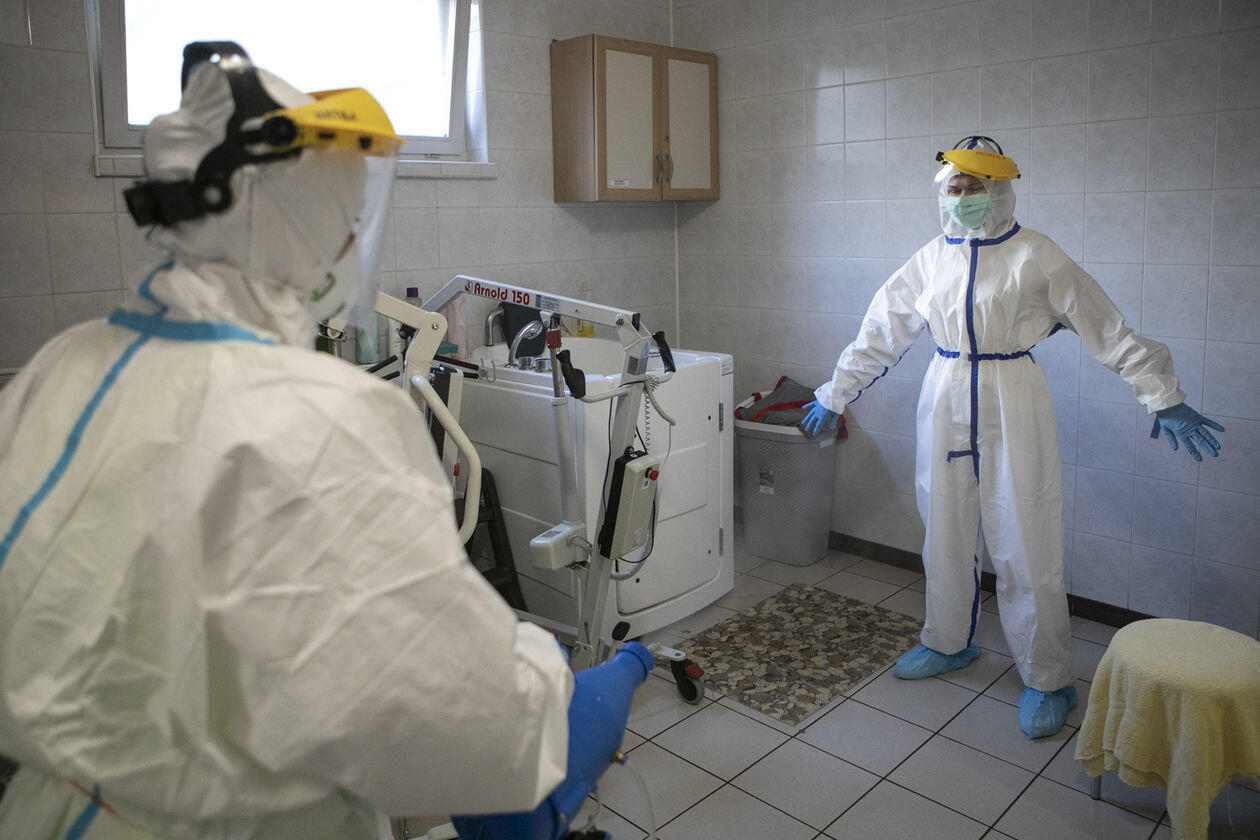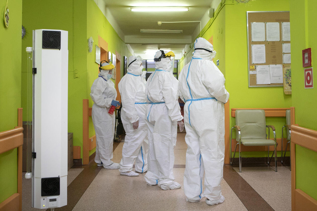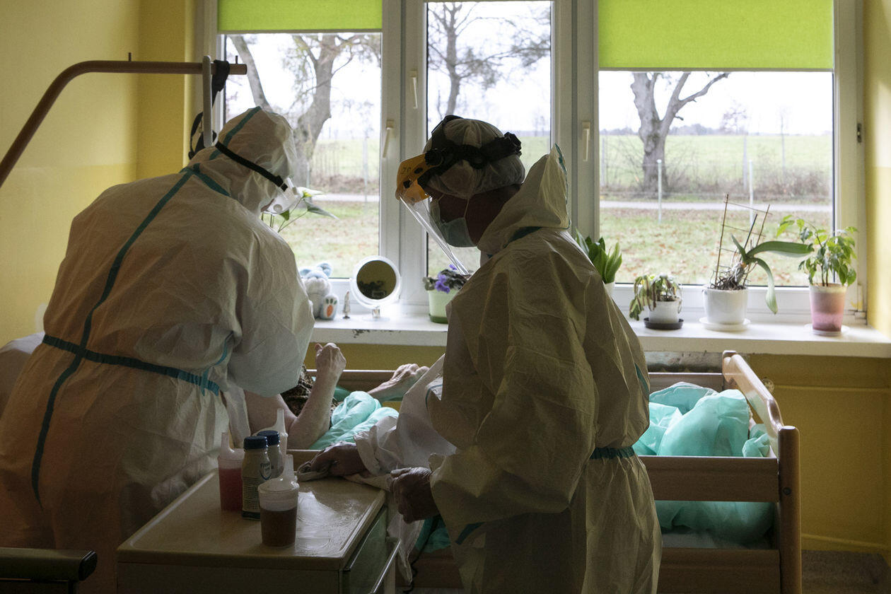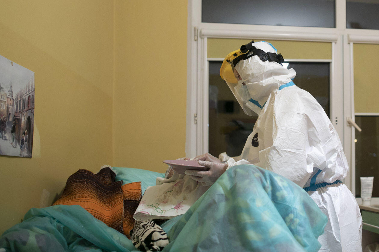 Pracownice Domu Pomocy Społecznej "Senior" w Różance podczas opieki nad pensjonariuszami chorymi na Covid-19