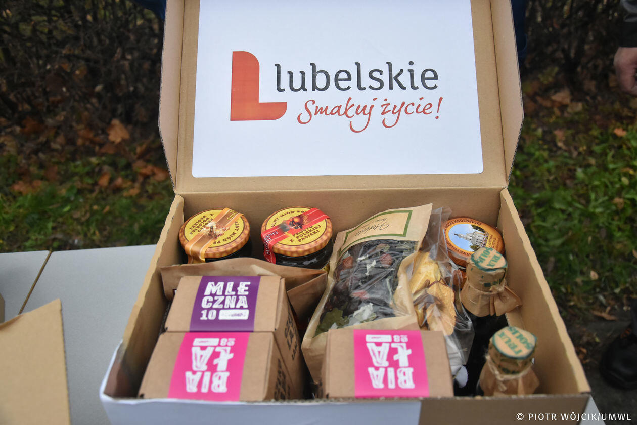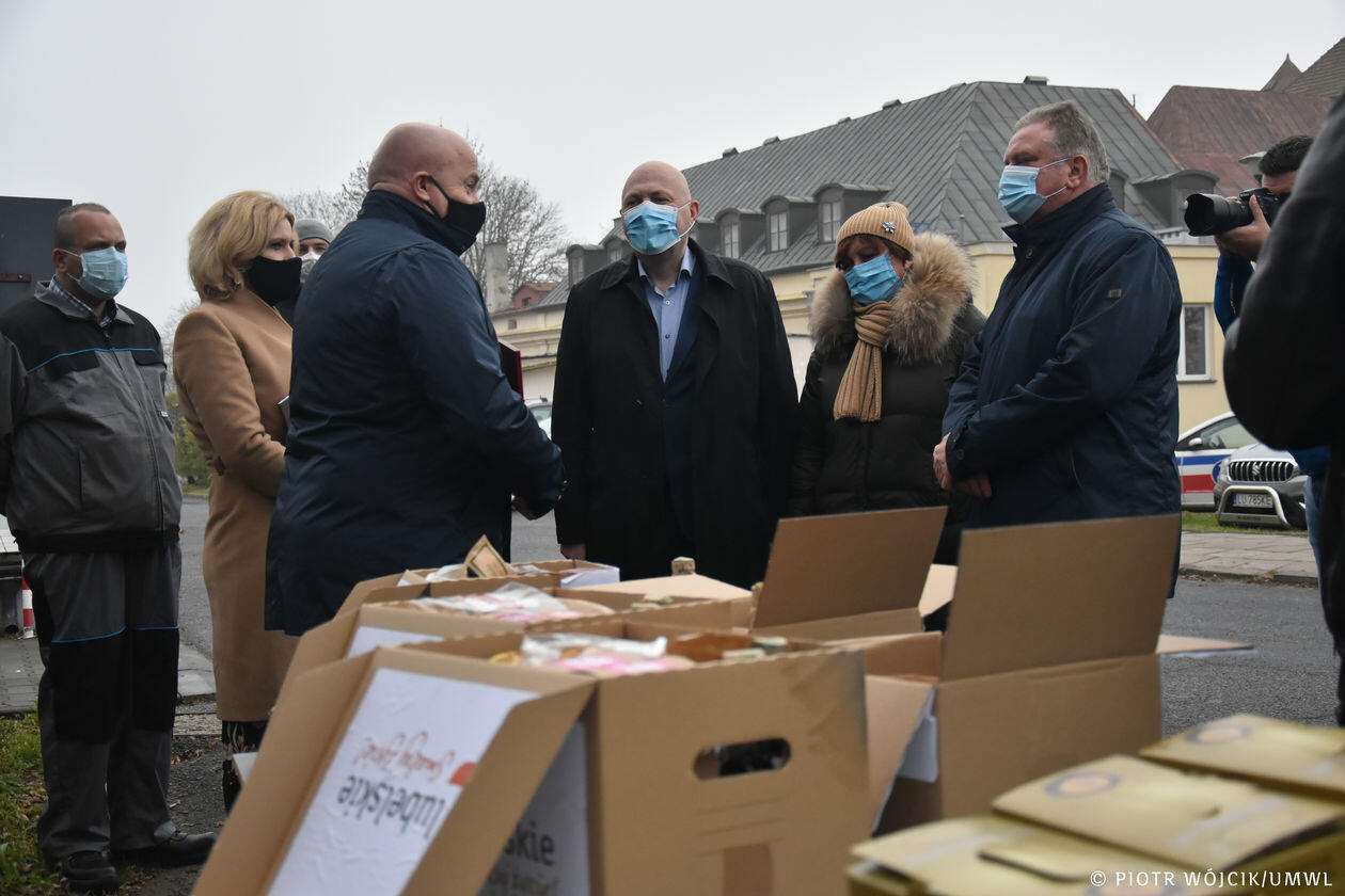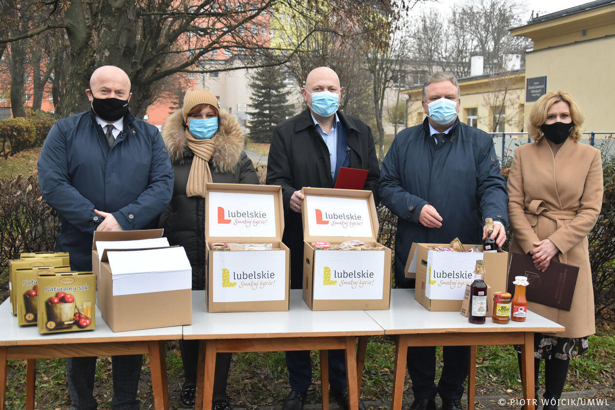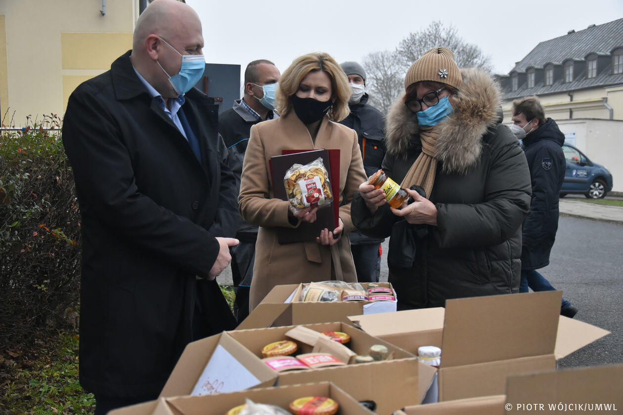 Marszałek województwa przekazuje produkty regionalne medykom