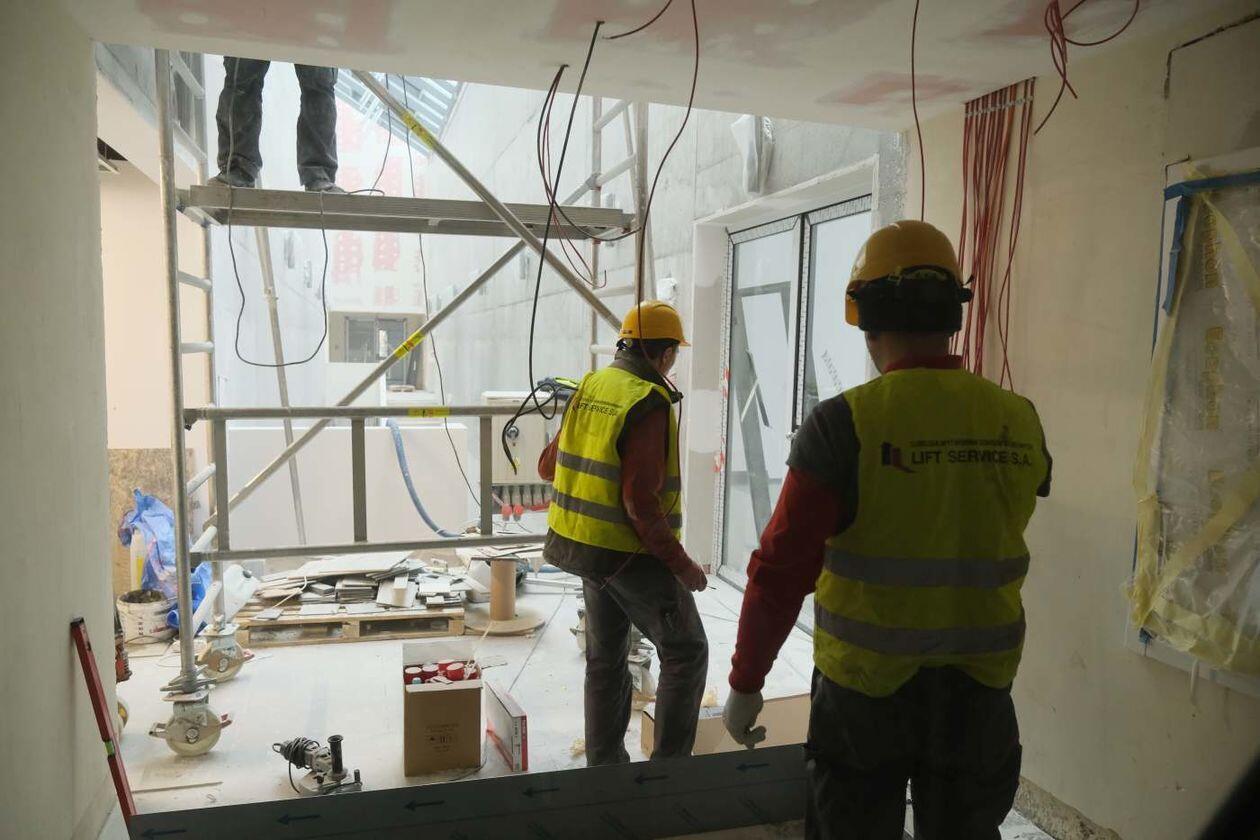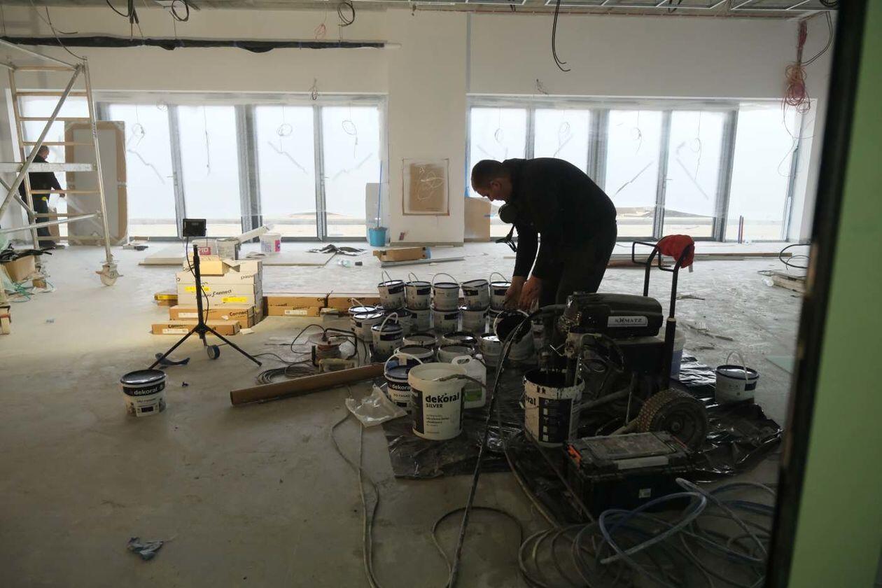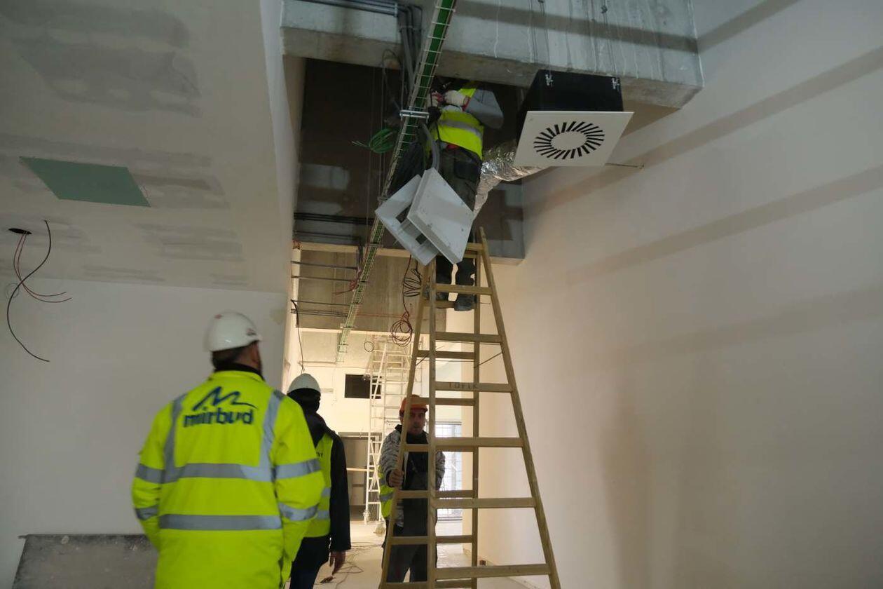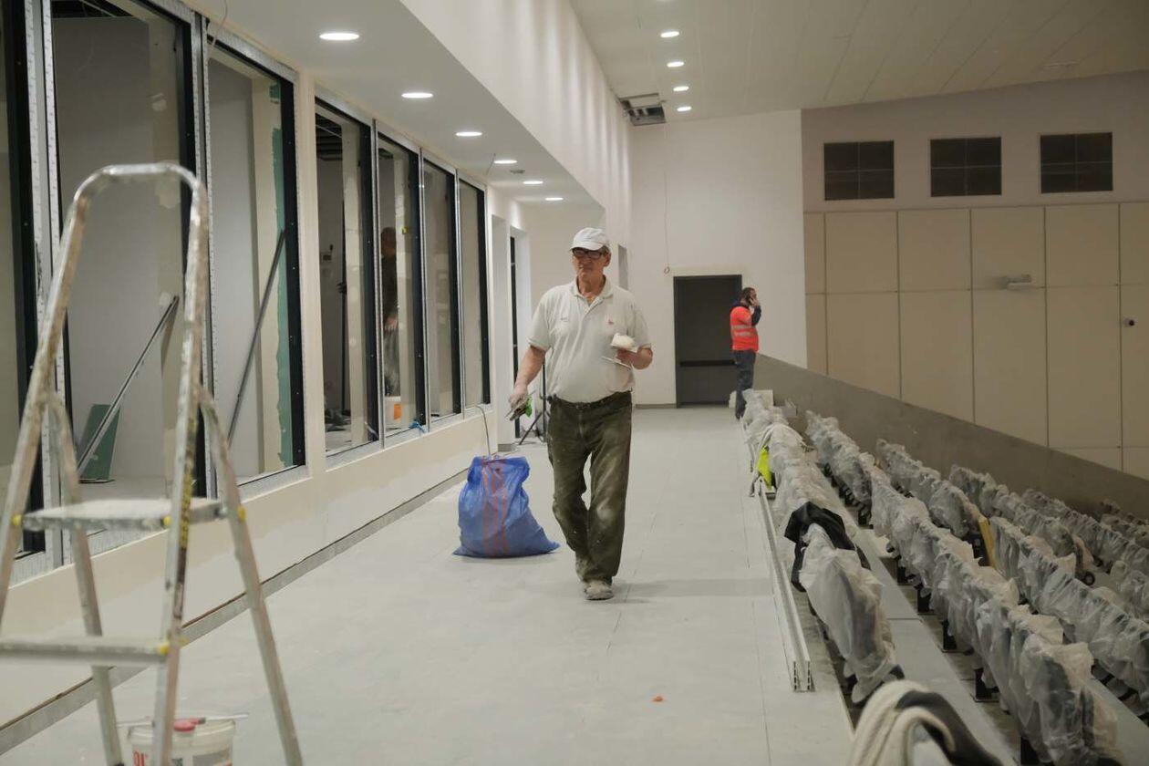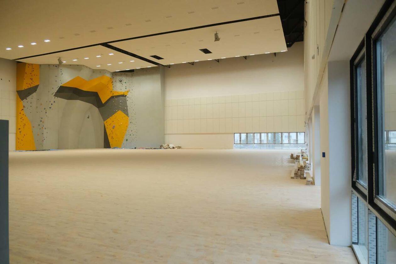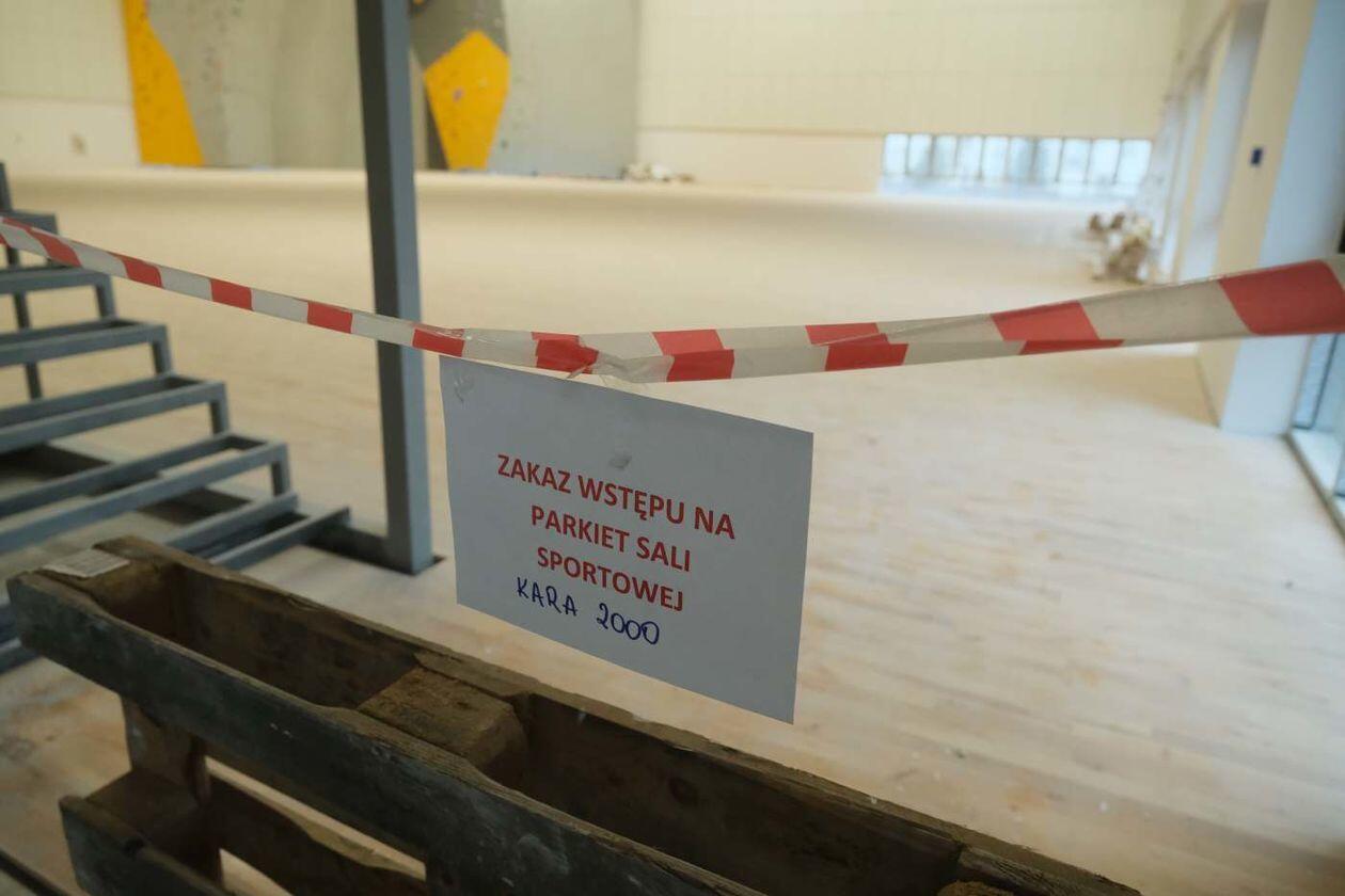 Prace wykończeniowe w nowej hali sportowej Uniwersytetu Medycznego