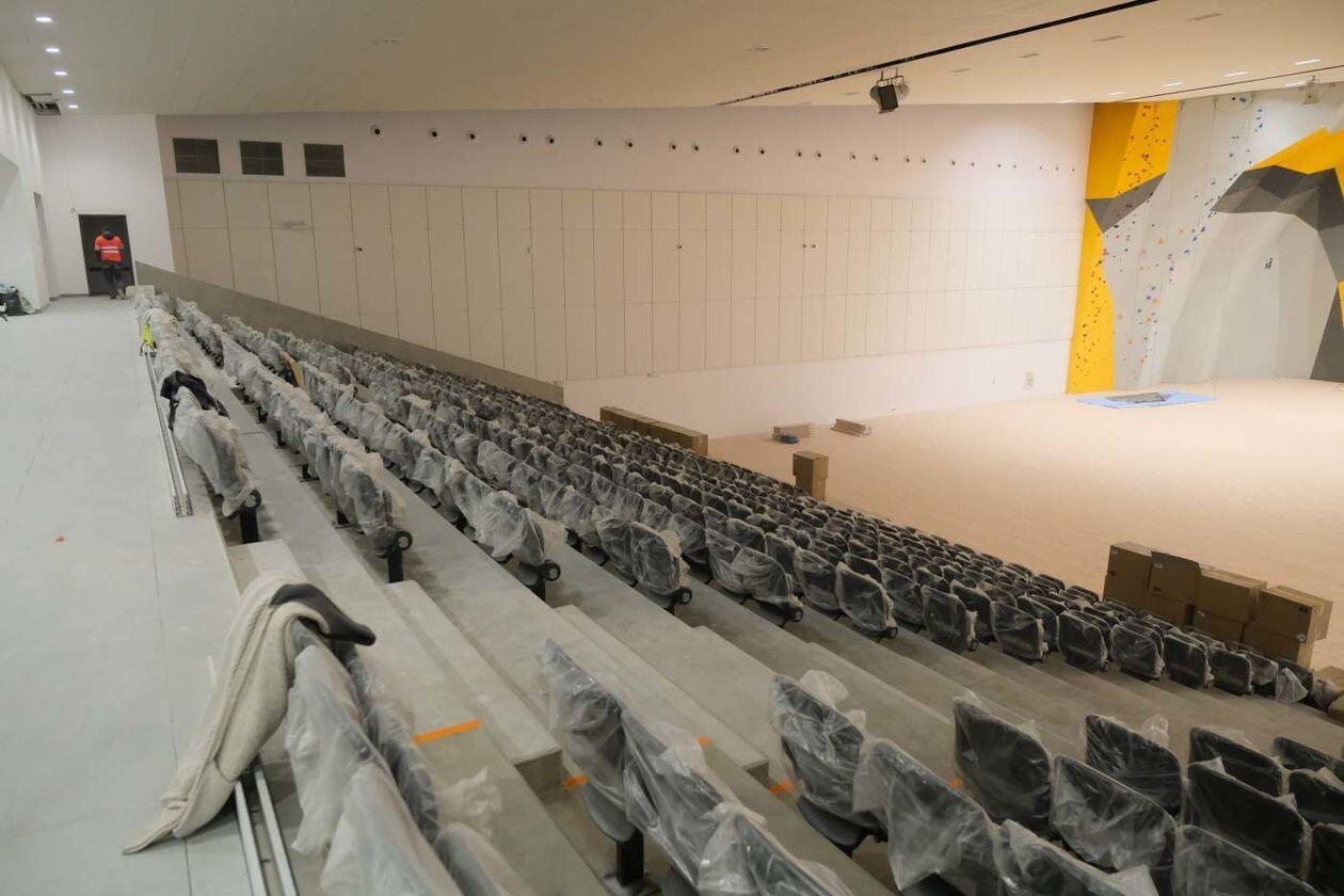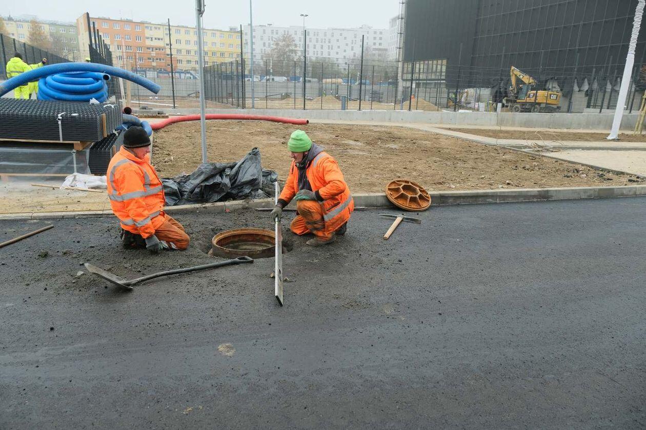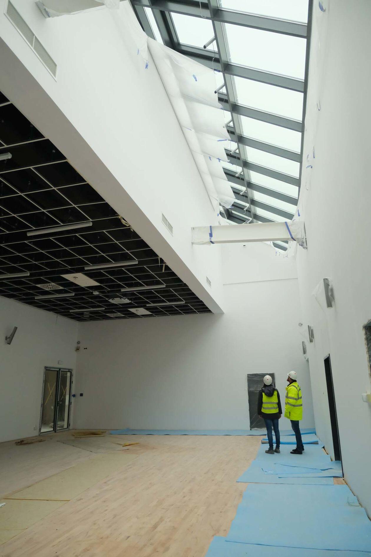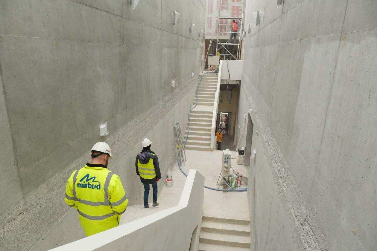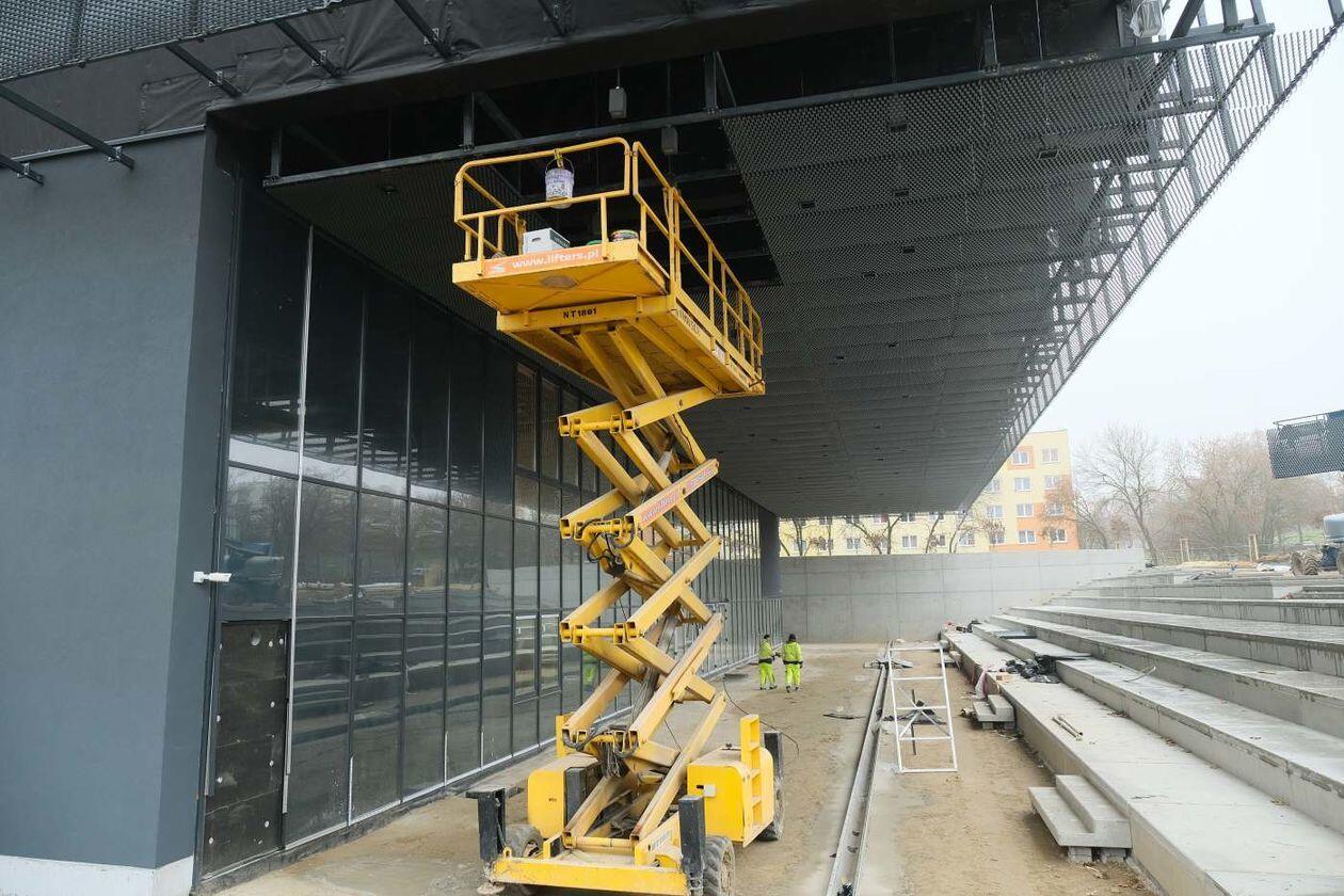Prace wykończeniowe w nowej hali sportowej Uniwersytetu Medycznego