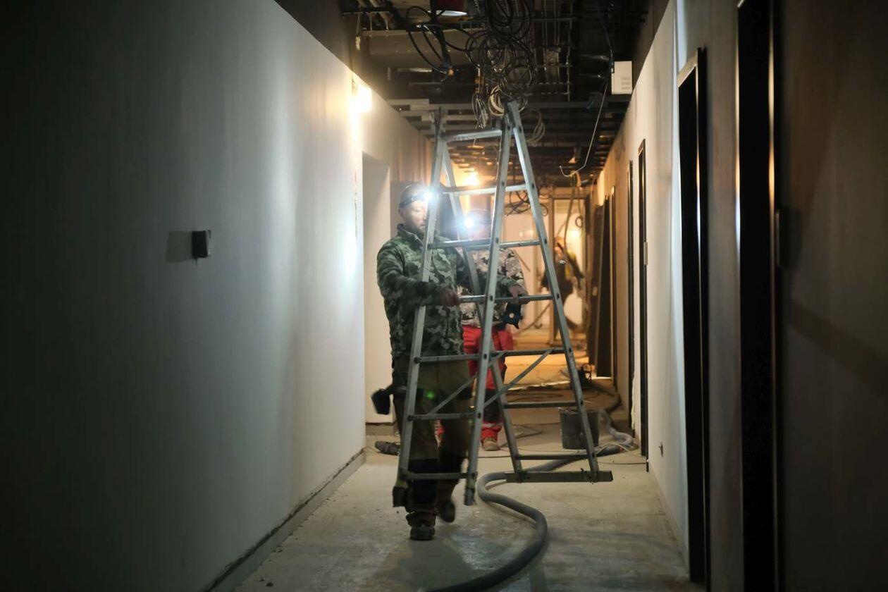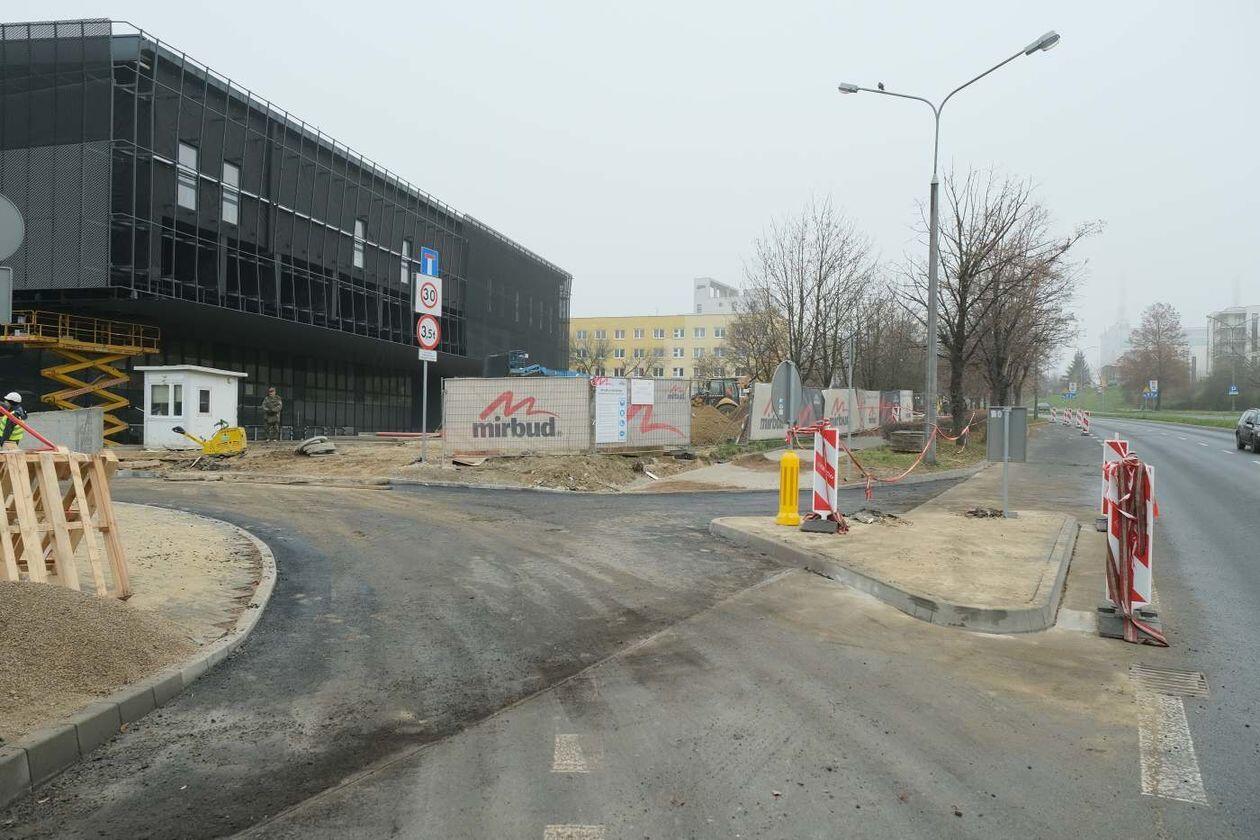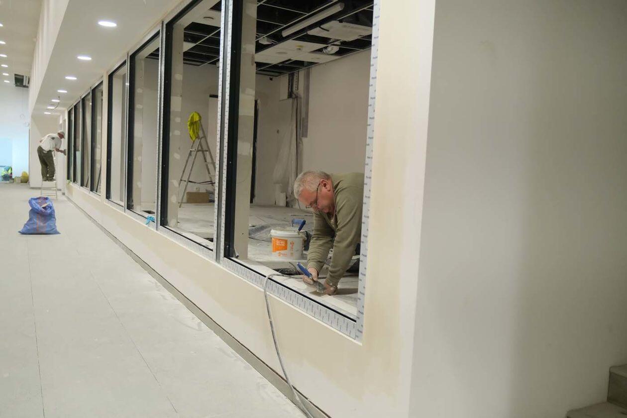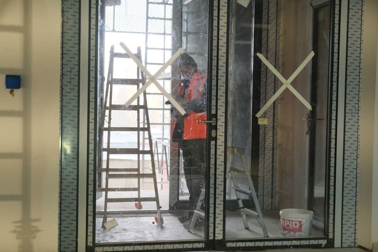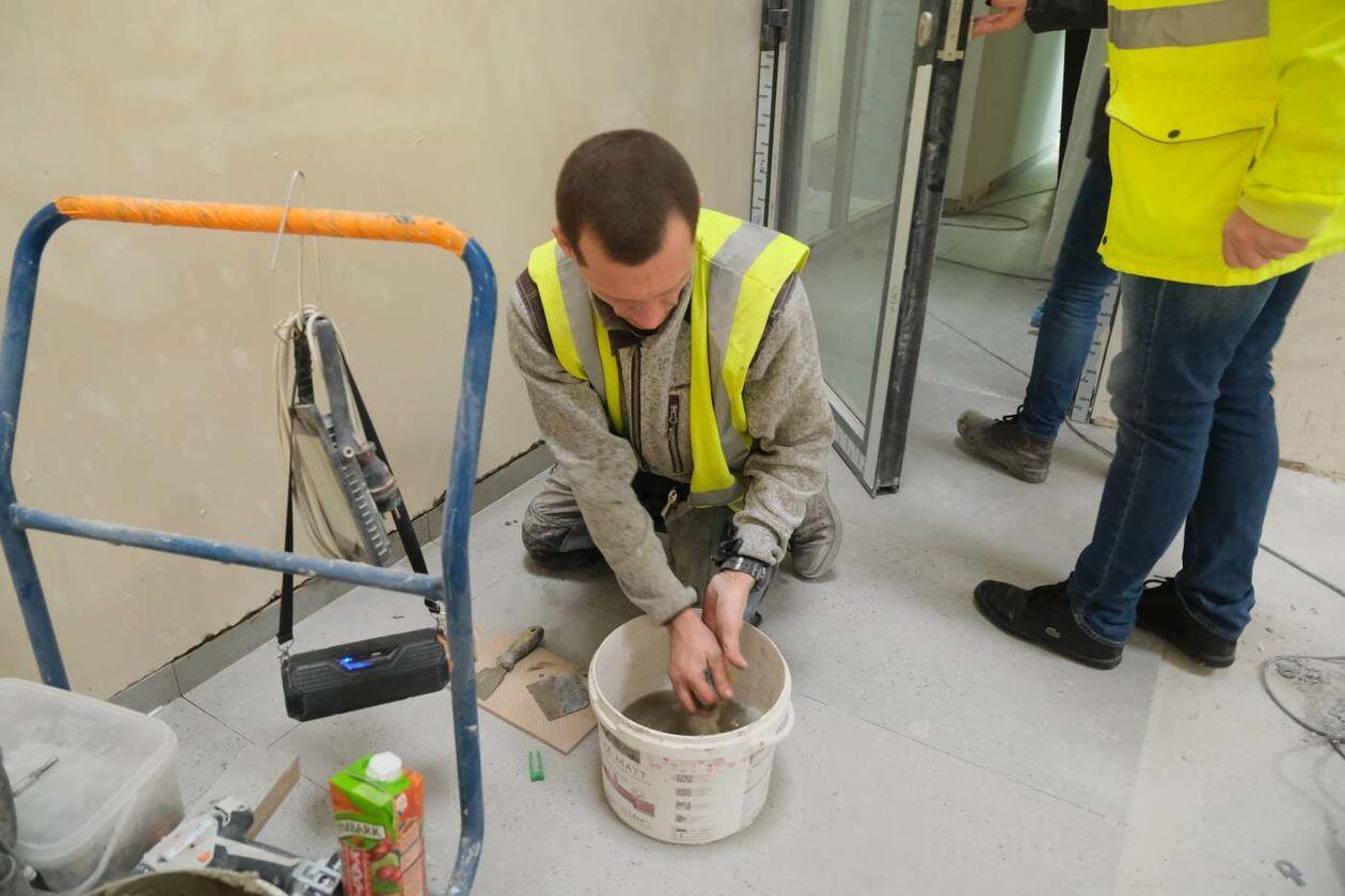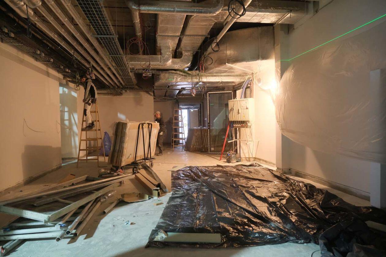Prace wykończeniowe w nowej hali sportowej Uniwersytetu Medycznego