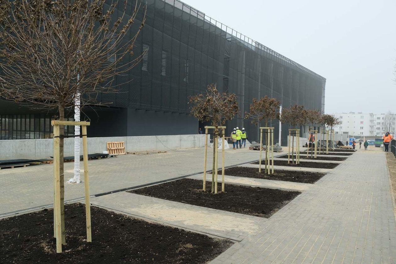 Prace wykończeniowe w nowej hali sportowej Uniwersytetu Medy...