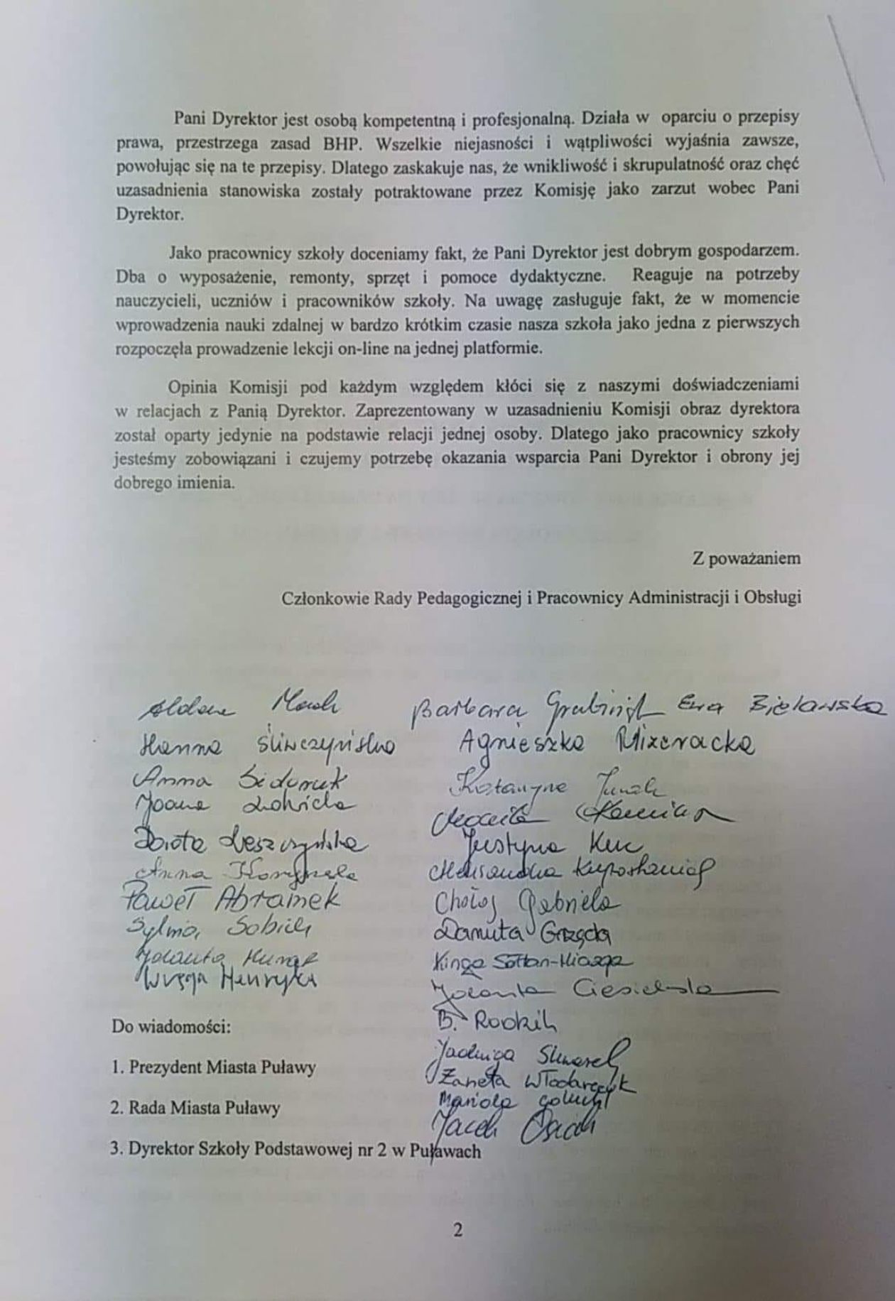 Nauczyciele murem za dyrektorką SP 2 w Puławach