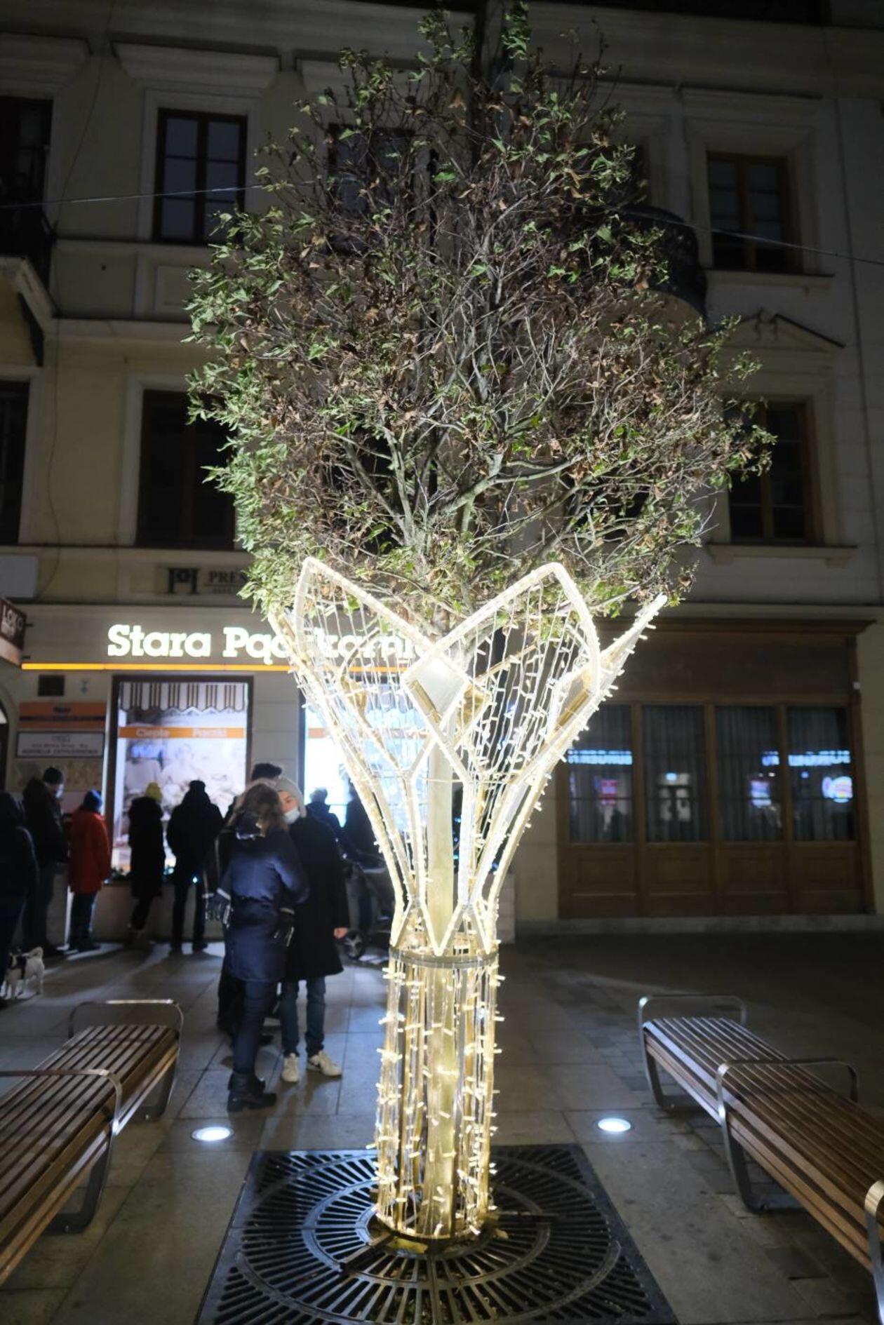 Świąteczna iluminacja miasta w komplecie: choinka już cieszy przechodniów