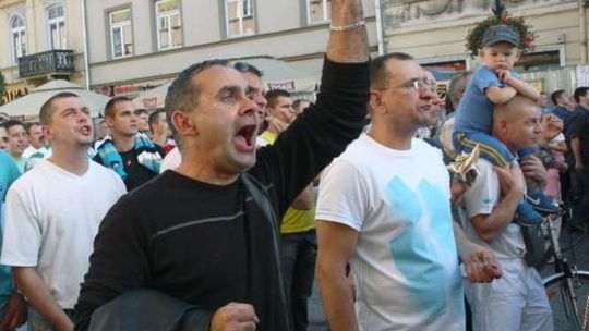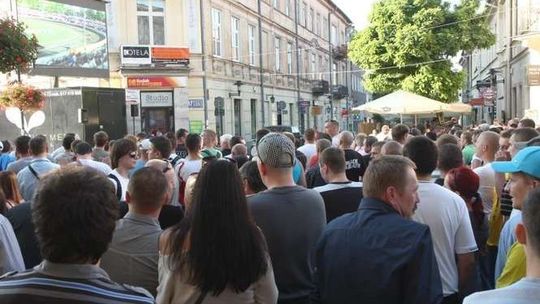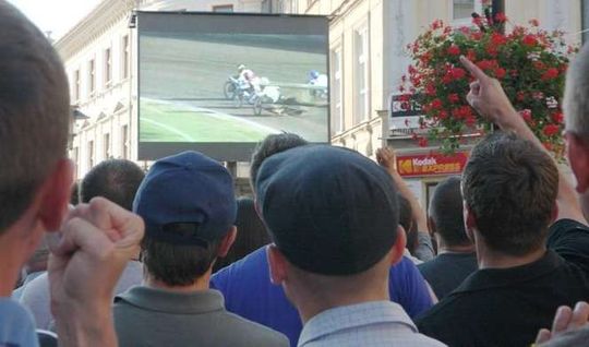 Tłum kibiców, liczący ok 1000 osób dopingował lubelską drużynę żużlową Lubelski Węgiel KMŻ . Podczas zawodów z zespołem Lubawa Litex Ostrów Wlkopolski można było oglądać transmisję na telebimie ustawionym przy ul Krakowskie Przedmieście. Fot.: Maciej Kaczanowski.