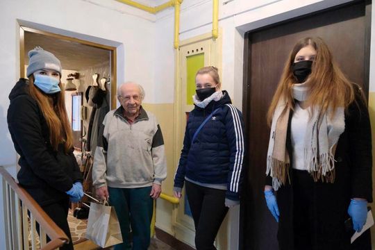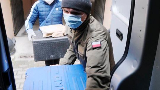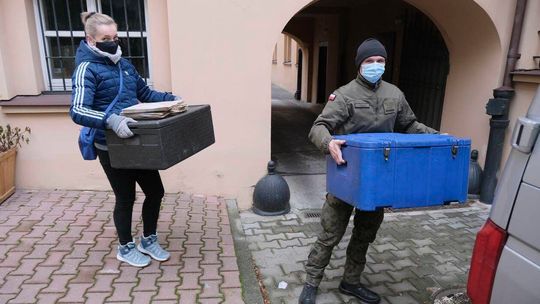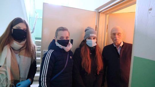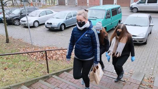 Magdalena Danił, Joanna Łaska-Jarosz i Magdalena Cirkot podczas wizyty u mjr. Mirona Borejszy