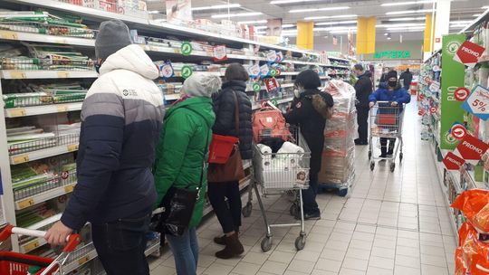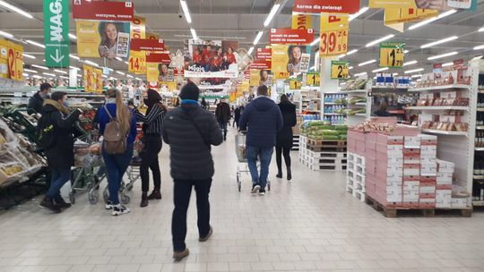 Tłumy klientów sklepach Lidl i Auchan