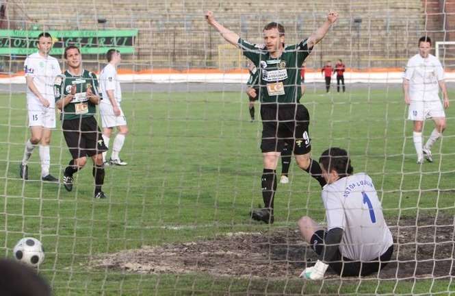 Drugie w tym sezonie derby Lubelszczyzny ponownie zakończyły się zwycięstwem Górnika Łęczna. \"Zielono-czarni” wygrali w Lublinie z Motorem 2:0. Zdjęcia: Maciej Kaczanowski.