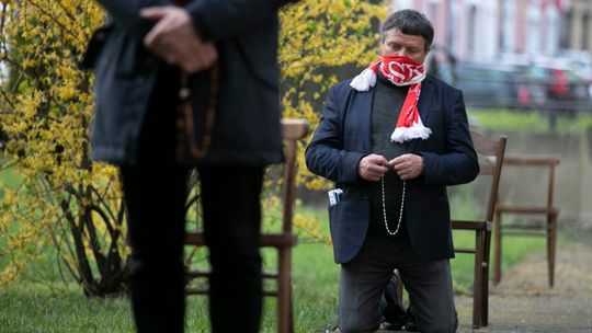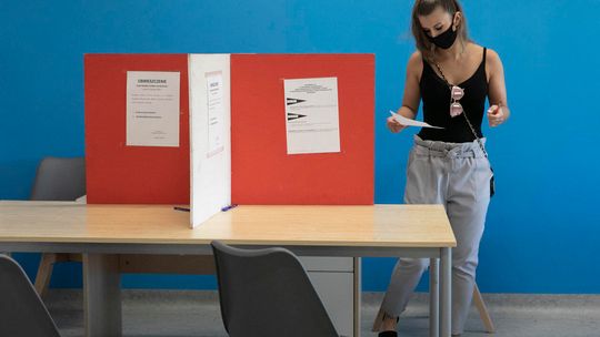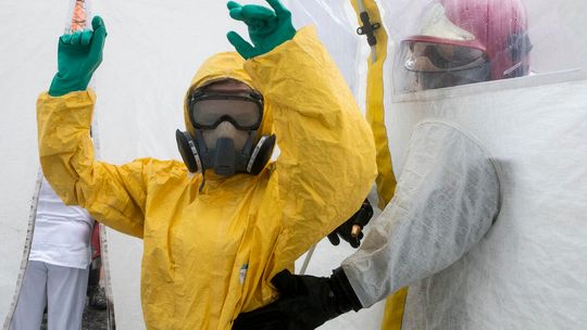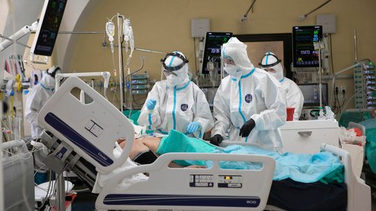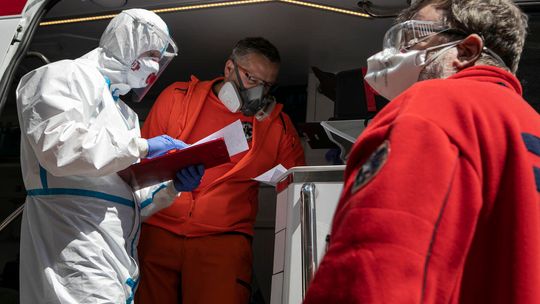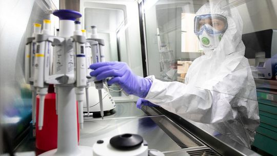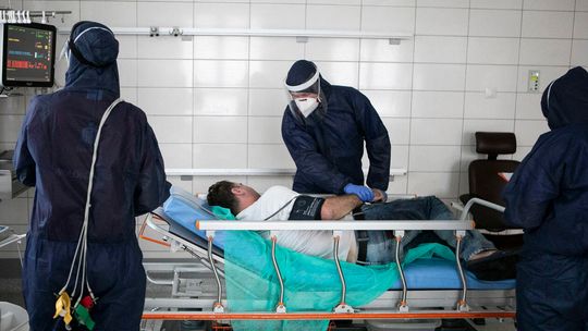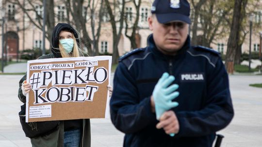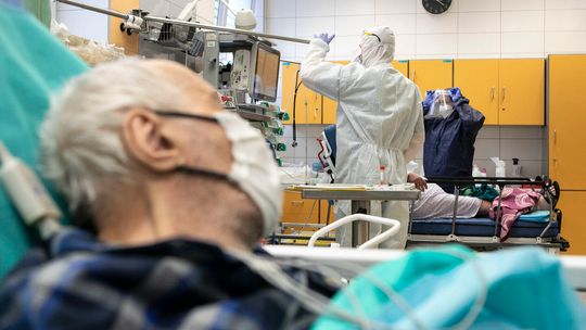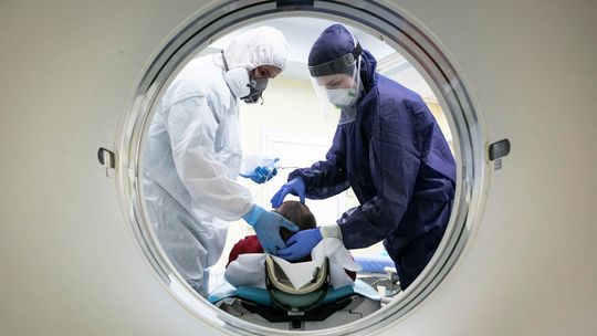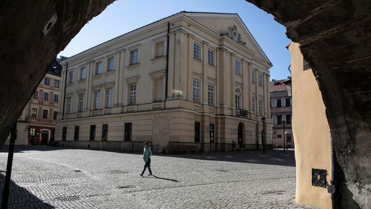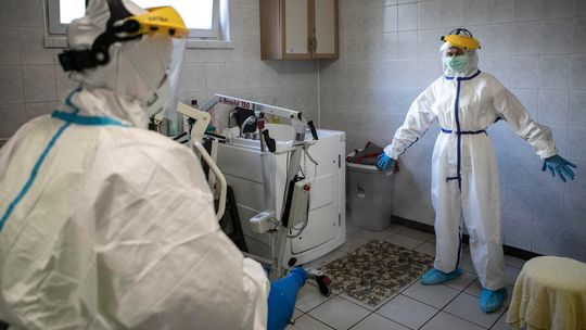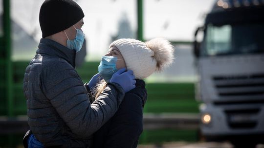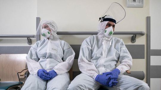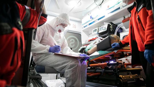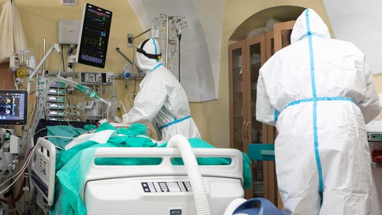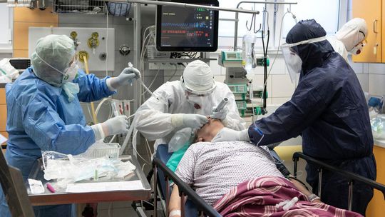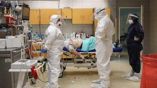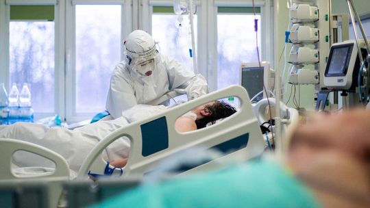 Pielęgniarka w namiocie do segragacji pacjentów przed Szpitalem Klinicznym Nr 4 w Lublinie.
