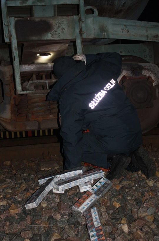 Funkcjonariusze Oddziału Celnego w Dorohusku, podczas kontroli pociągu towarowego wjeżdżającego z Ukrainy, ujawnili 500 paczek papierosów. Nielegalny towar ukryty był w lokomotywie – w skrytce konstrukcyjnej obudowy silnika. Do przemytu przyznali się pracownicy obsługi pociągu. Mężczyźni zostali ukarani mandatami w wysokości po 4330 zł.