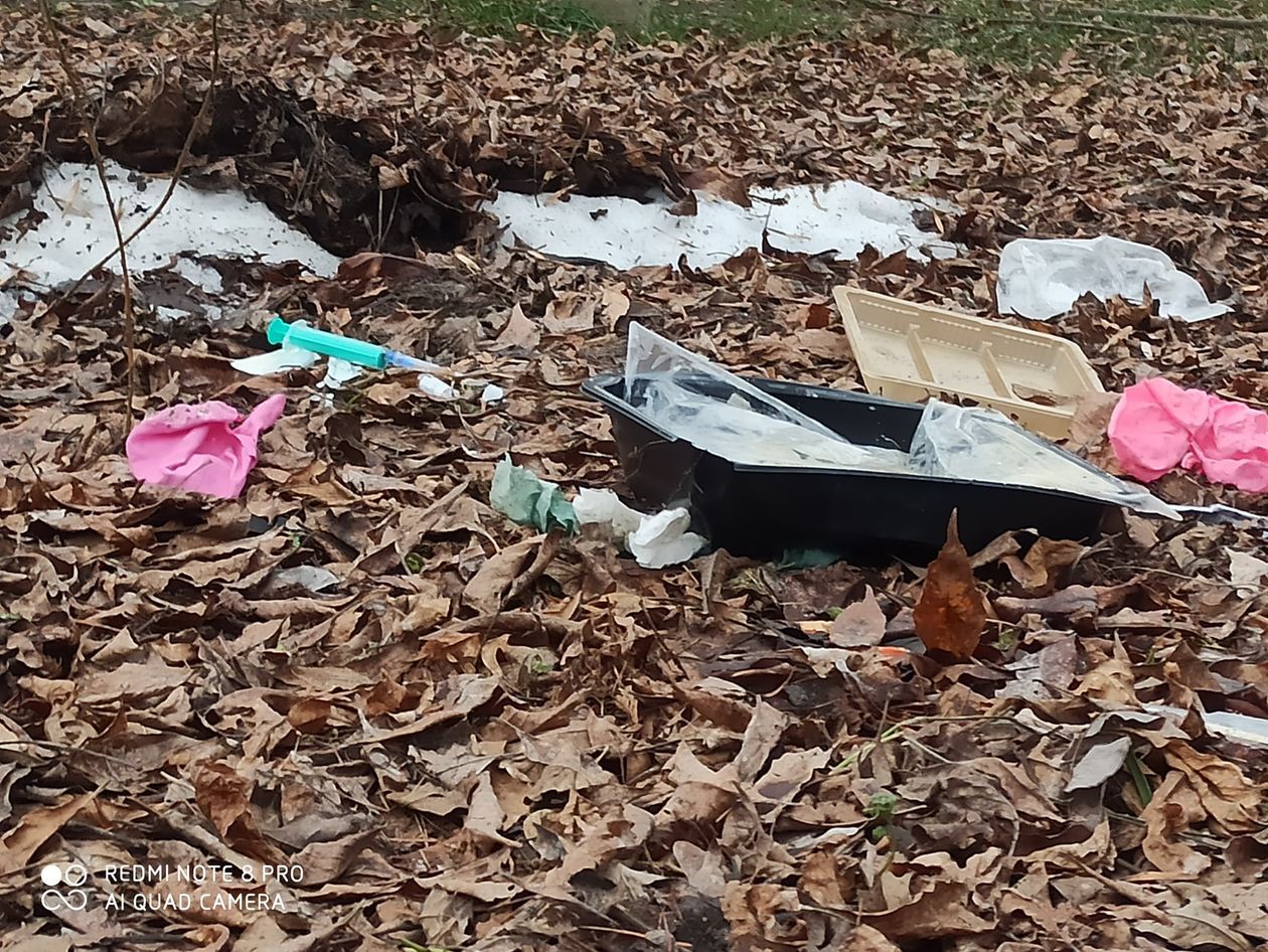 Odpady medyczne wyrzucone przy ul. Choiny w Lublinie