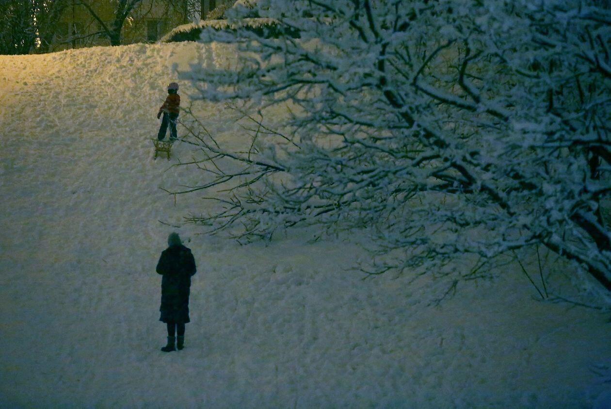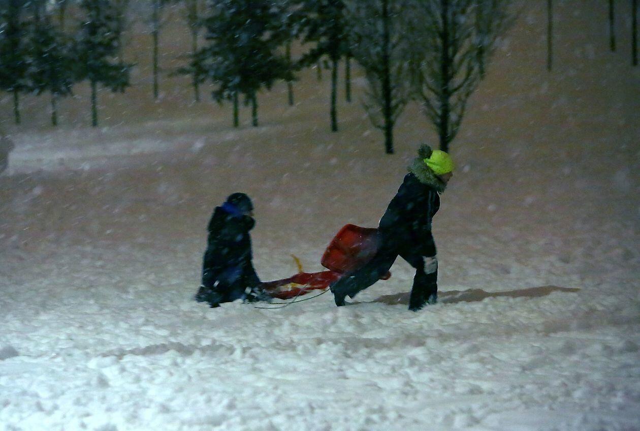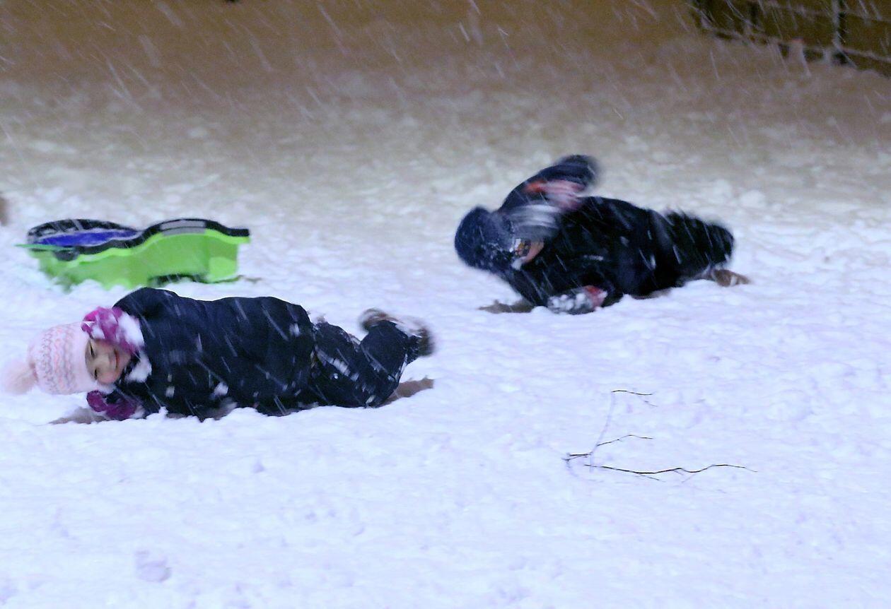 Zabawy na śniegu w wąwozie na Kalinie