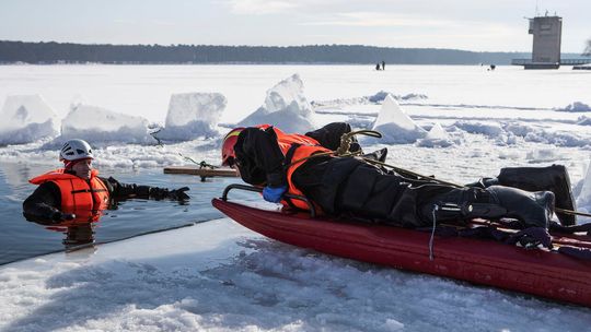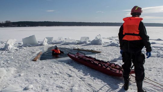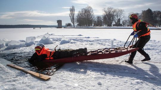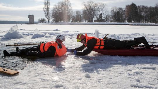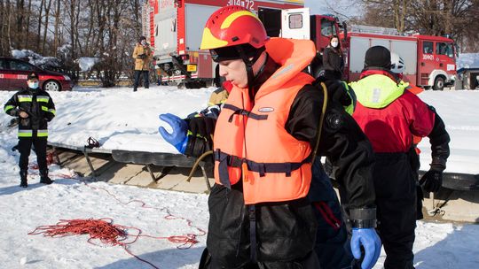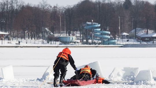 Ćwiczenia ratowników na Zalewie Zemborzyckim w Lublinie