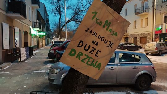 Akcja plakatowa w obronie drzew przy ul. 1 Maja