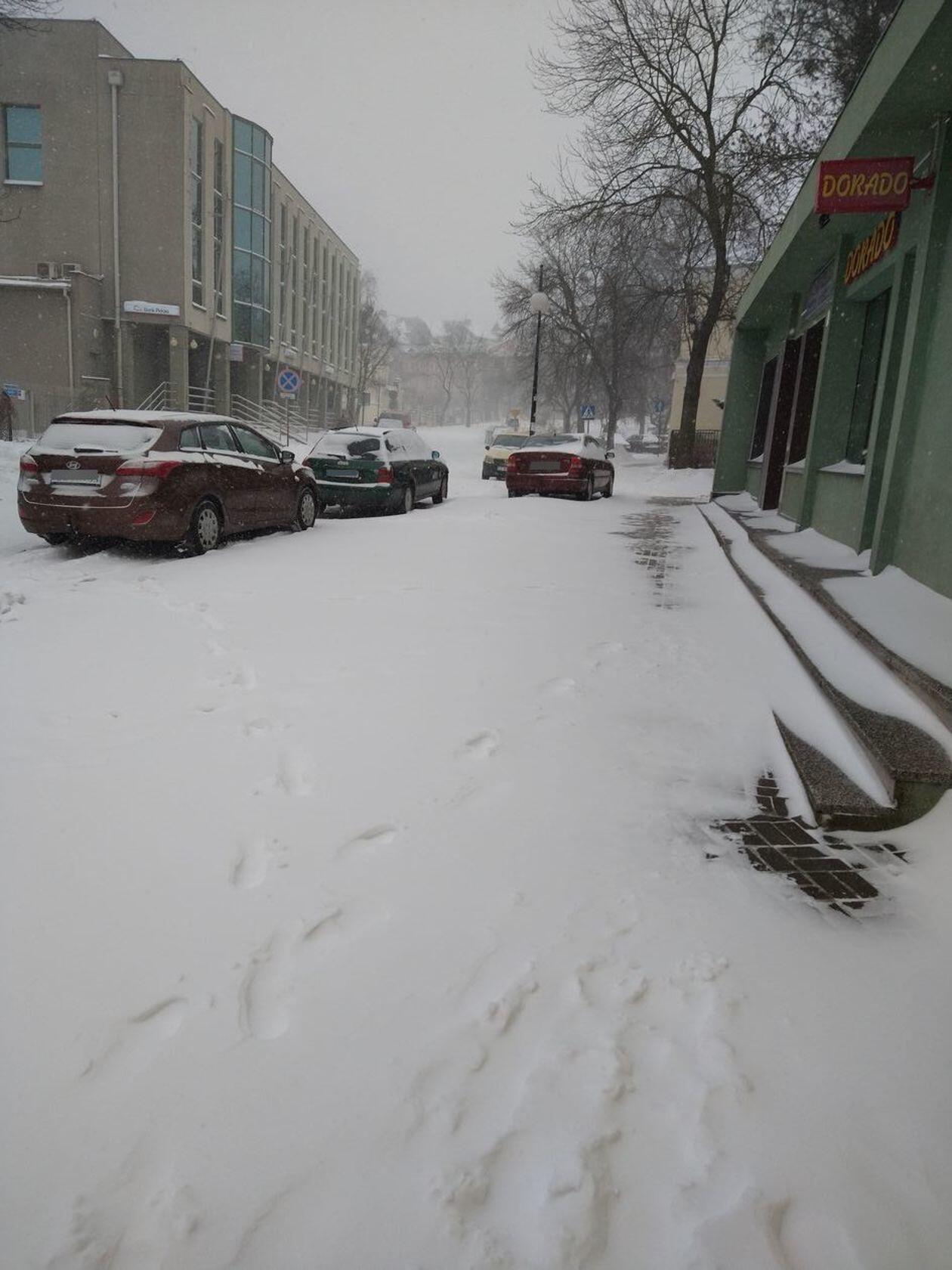 W Chełmie śnieg pada od poniedziałkowego świtu. Do południa służby doliczyły się ok. 40 centymetrów białego puchu, ale to tylko szacunki, bo w mieście i okolicach bardzo wieje, co powoduje powstawanie zasp. Wszystkie wylotówki są przejezdne, ale ruch jest spowolniony do 60km/h. Przechodnie zniknęli z ulic. W mieście jezdnie są białe.