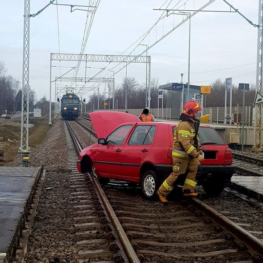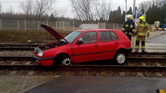 Samochód utknął na przejeździe w Motyczu