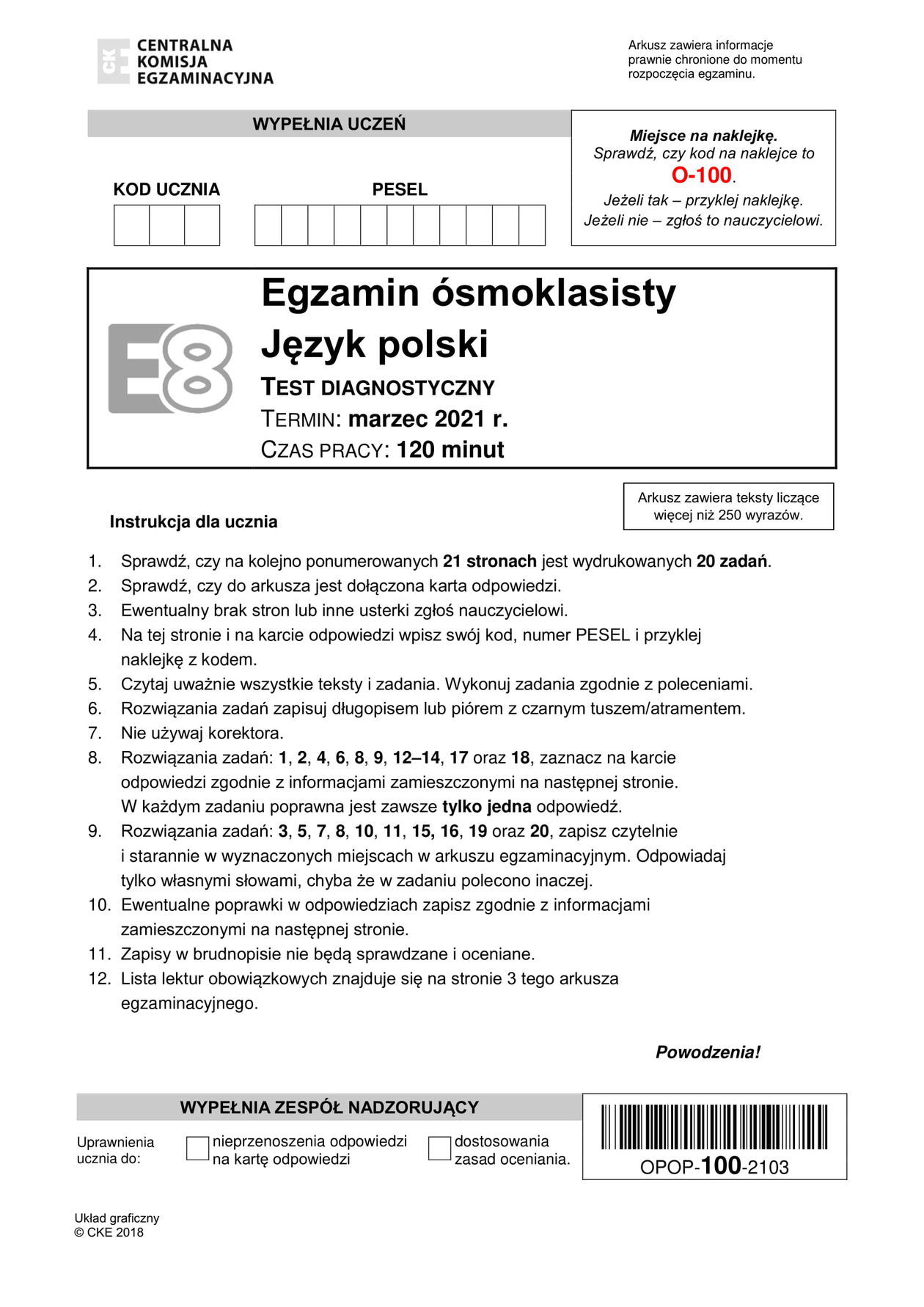 Próbny egzamin ósmoklasistów 2021. Język polski