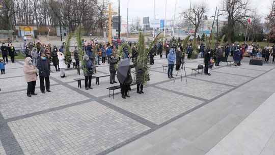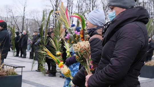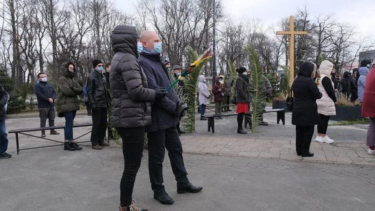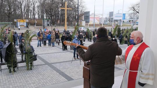 Niedziela palmowa w kościele pw Michała Archanioła. Msza przed kościołem