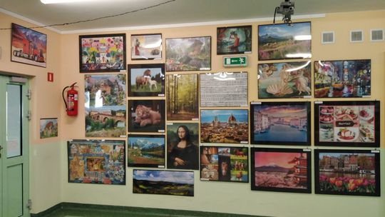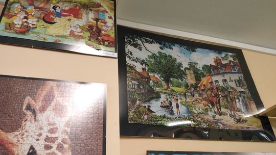 Wystawa puzzli w DPS dla osób niepełnosprawnych fizycznie w Lublinie.