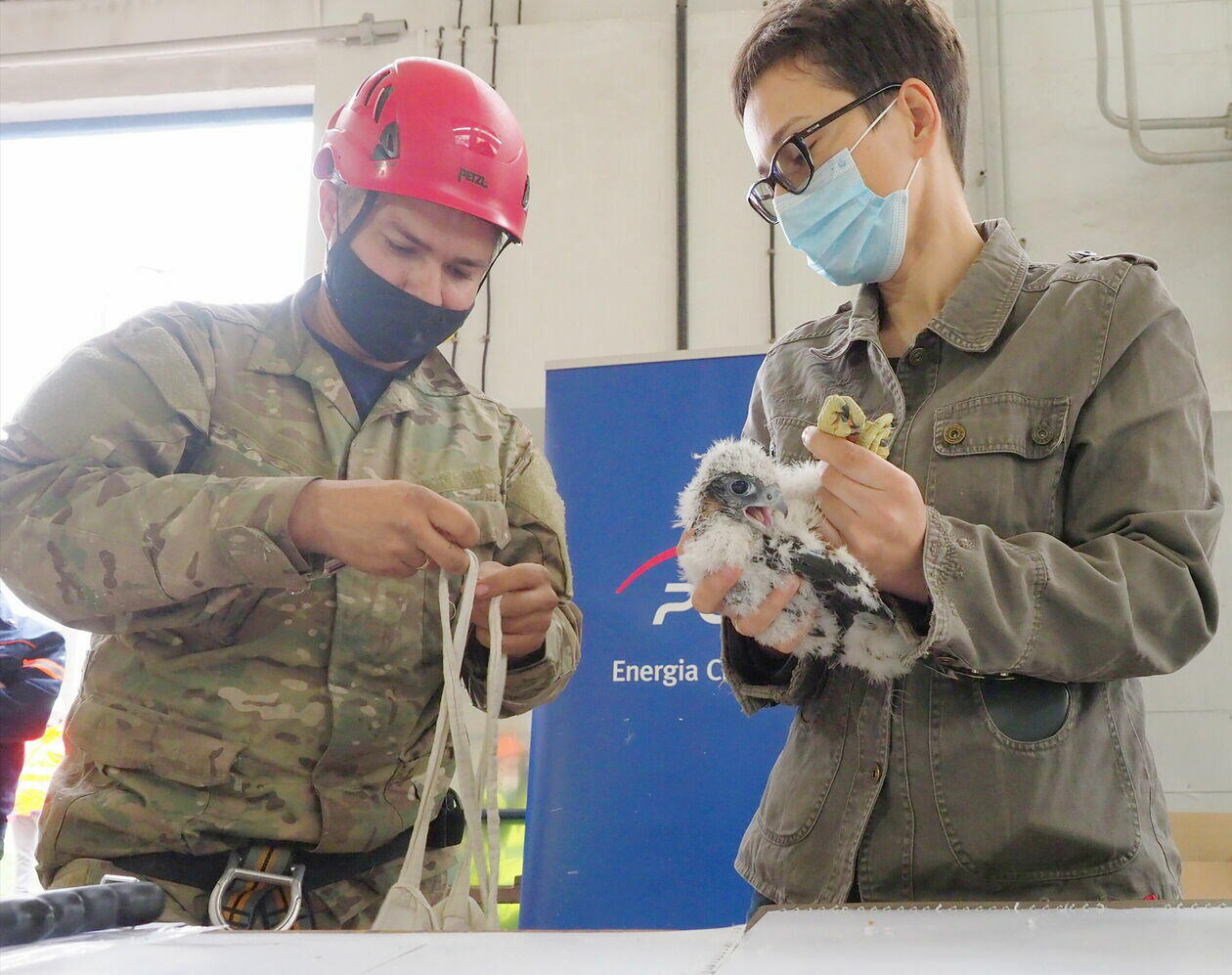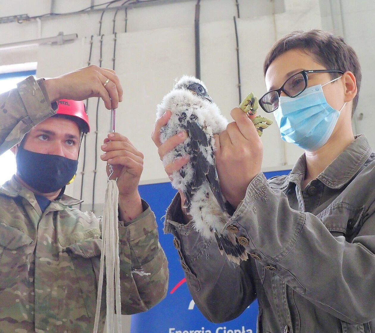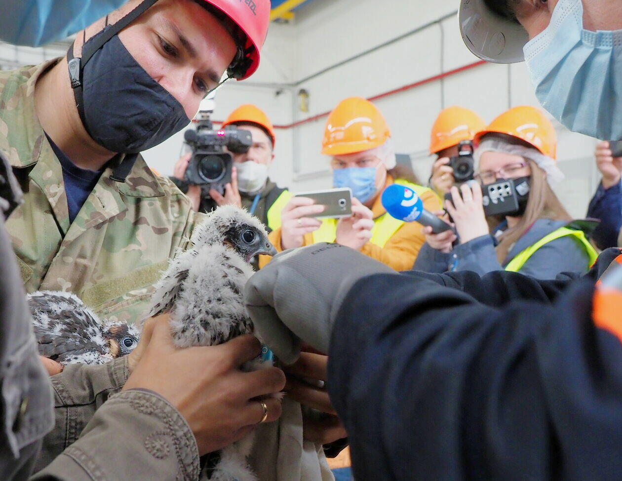 Obrączkowanie młodych sokołów z komina elektrociepłowni w Lu...