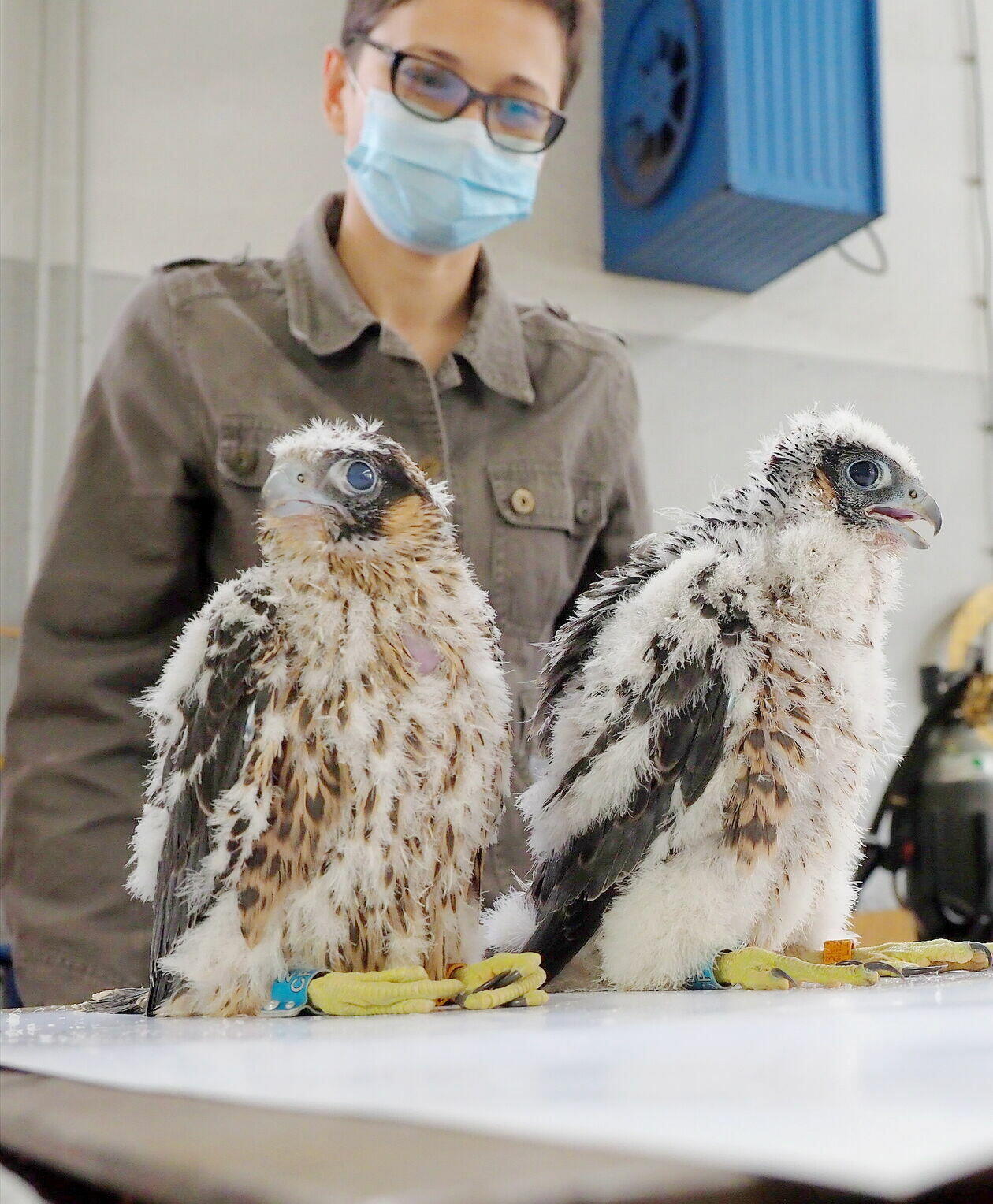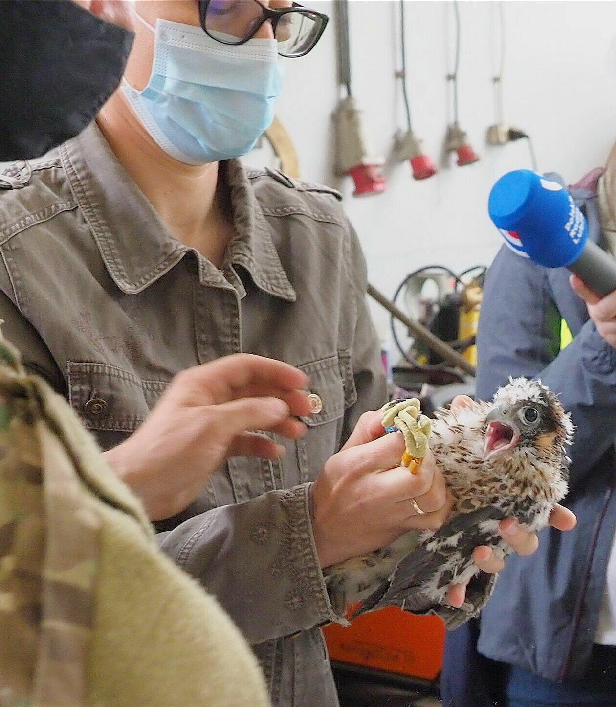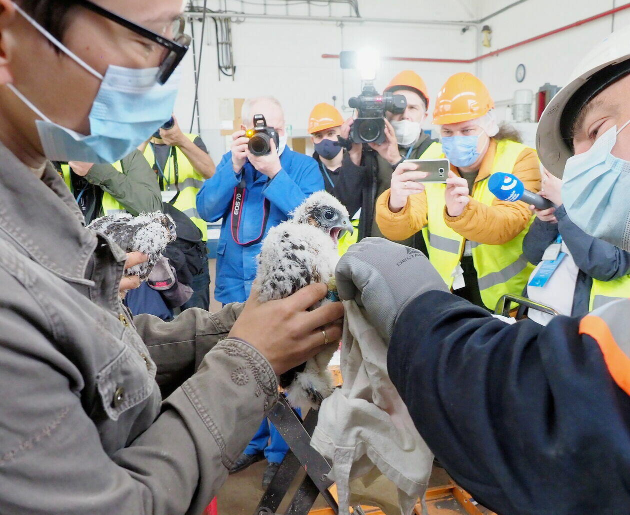 Obrączkowanie młodych sokołów z komina elektrociepłowni w Lu...