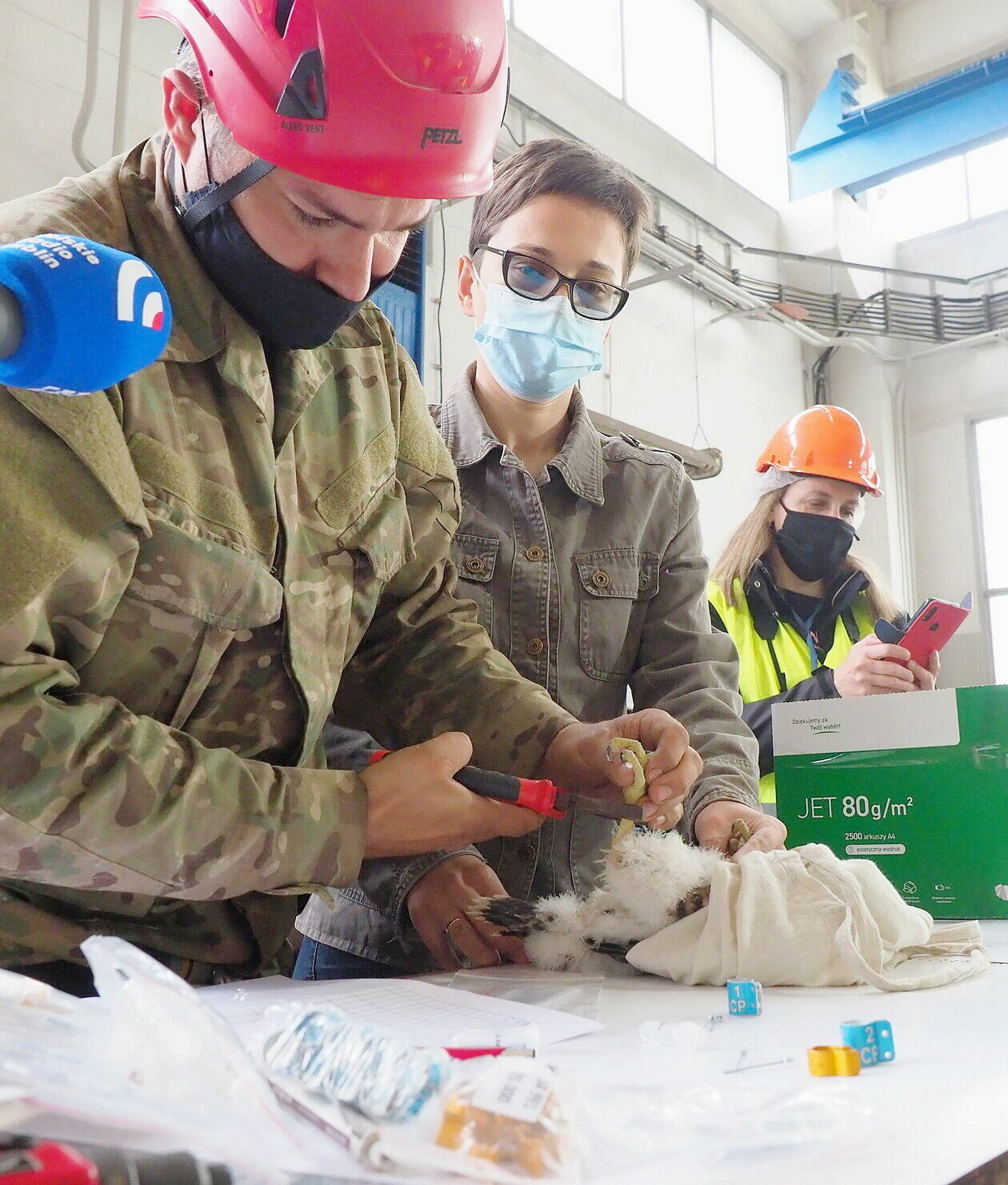 Obrączkowanie młodych sokołów z komina elektrociepłowni w Lublinie