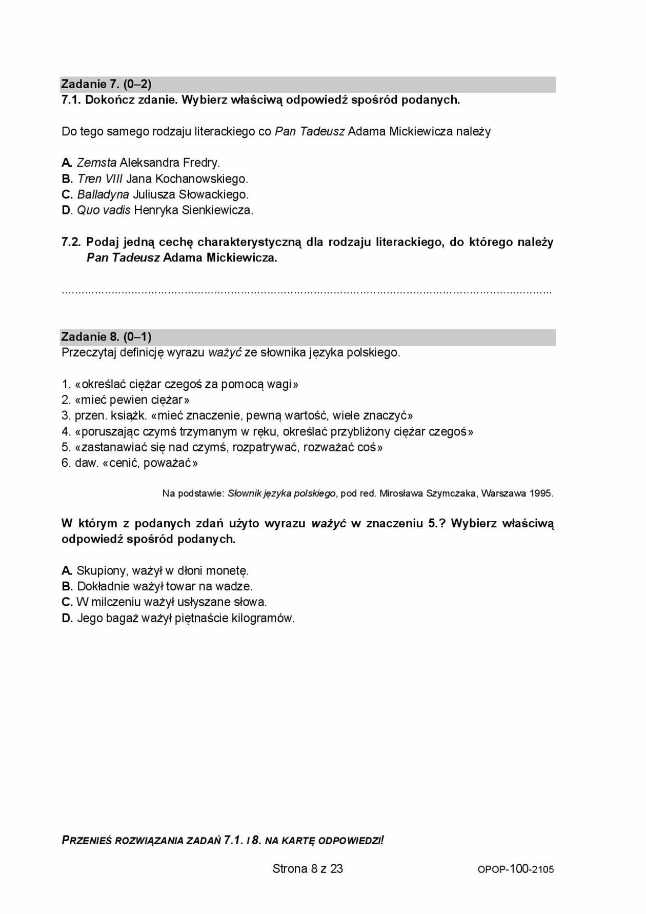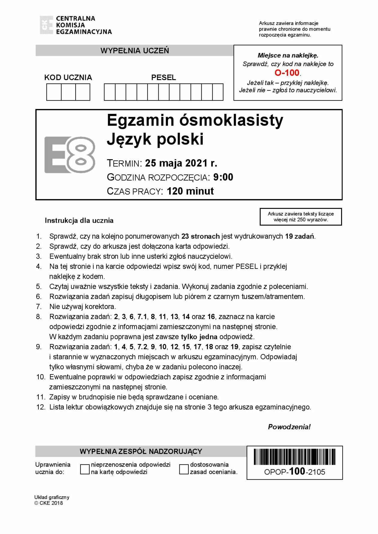 Egzamin ósmoklasisty 2021. Język polski - arkusze