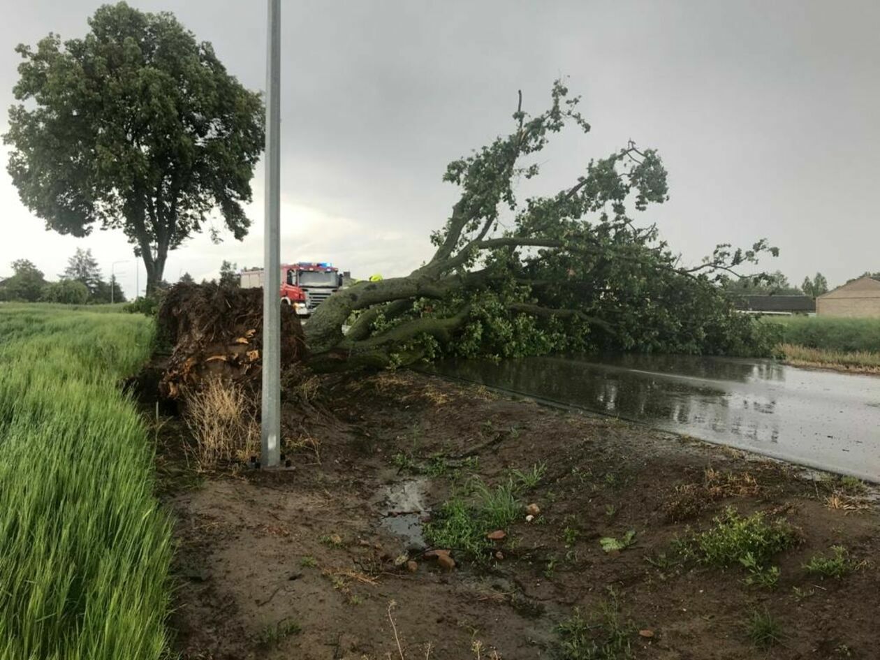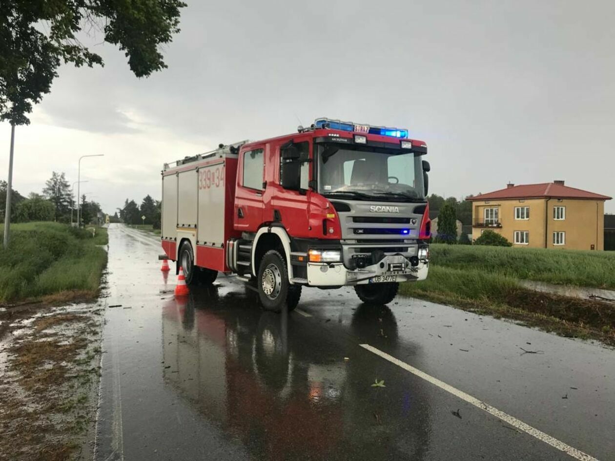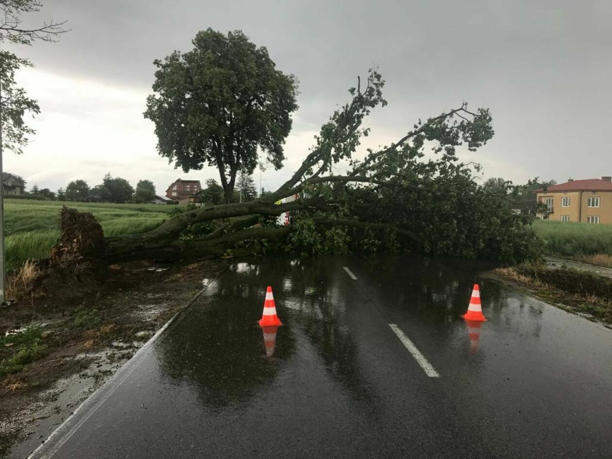 Drzewo tarasuje przejazd drogą