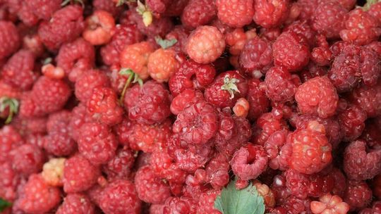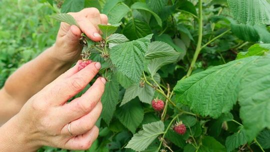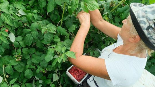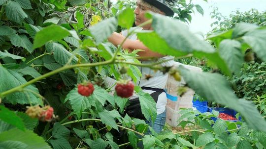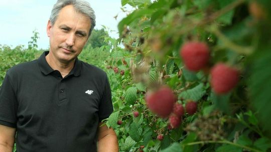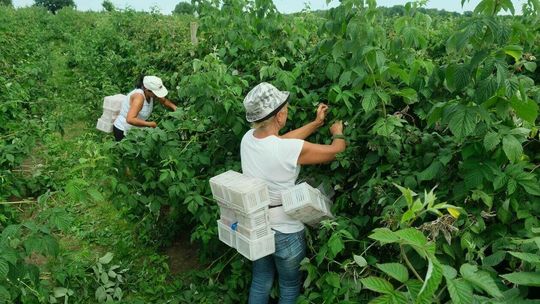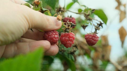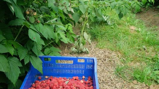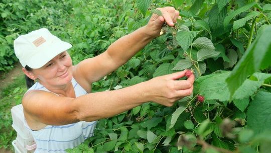 Zbiór malin na plantacji w Moniakach gm. Urzędów