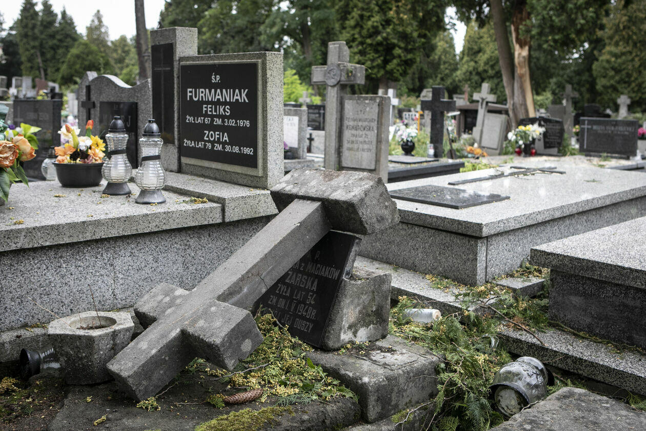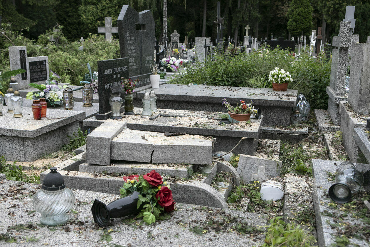Zniszczenia na cmentarzu przu ul. Lipowej w Lublinie