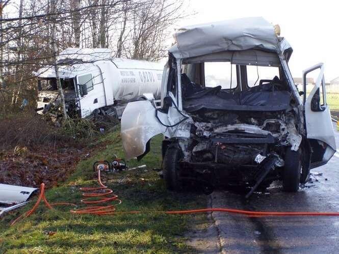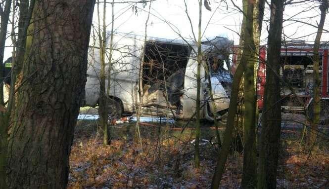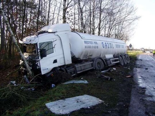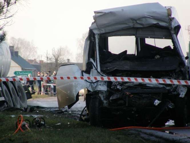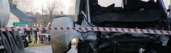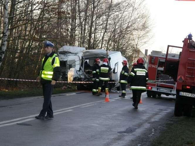 W miejscowo?ci D?bie pod Lukowem bus marki Fiat Ducato zderzyl sie z cystern? przewoz?c? gaz. Na miejscu zgineli wszyscy jad?cy busem.