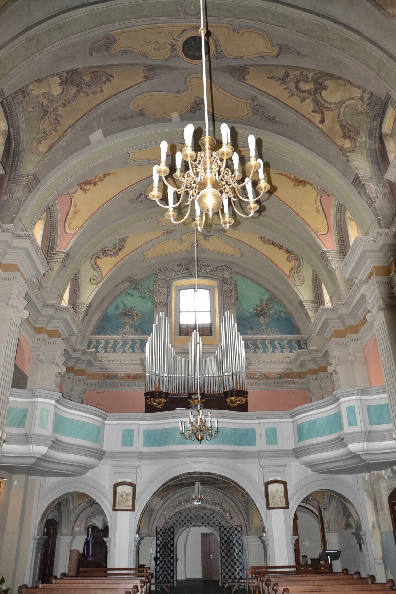 Wykonano montaż ogrzewania podłogowego kościoła i położono nowe posadzki. Prace konserwatorskie i restauratorskie przy wystroju malarskim wnętrza kościoła polegały głównie na konserwacji polichromii ściennej prezbiterium, przęseł sklepienia nawy i pilastrów ścian nawy, sześciu iluzjonistycznie malowanych ołtarzy na ścianach nawy, sklepienia pod emporą chóru muzycznego, łuku tęczowego oraz ściany szczytowej chóru muzycznego.