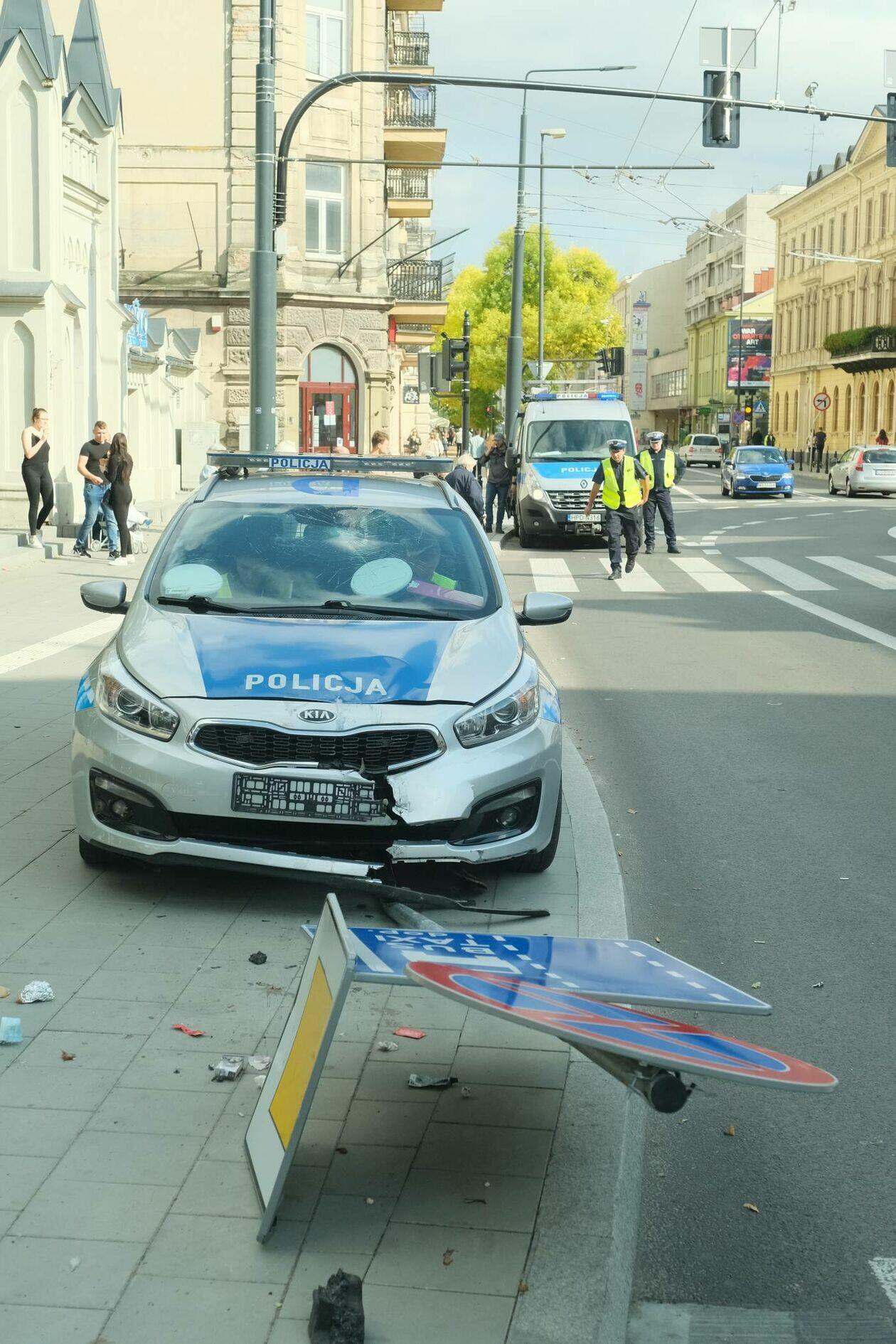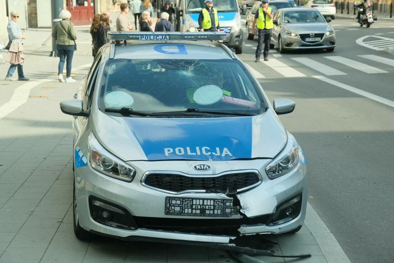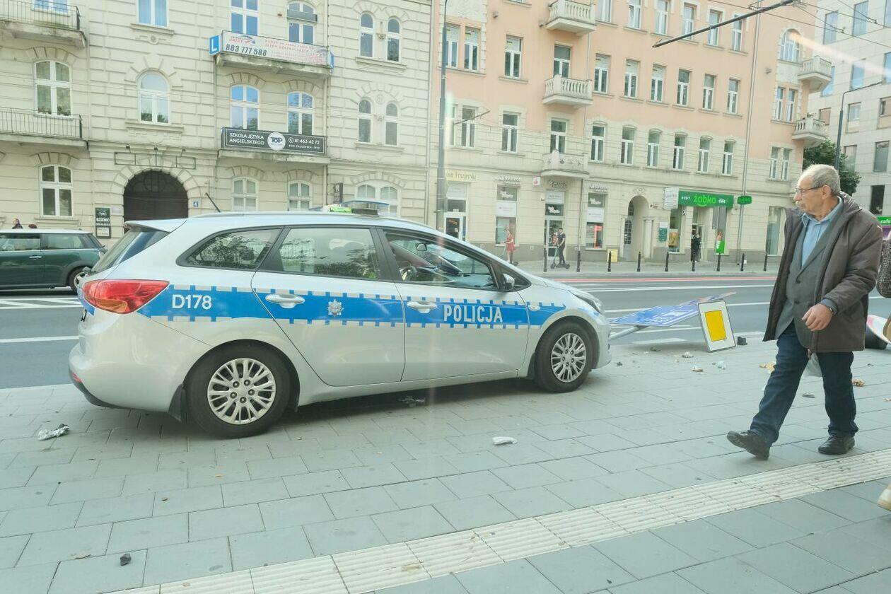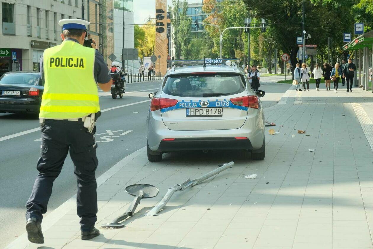 Pościg za motocyklistą. Rozbity jest jeden z radiowozów