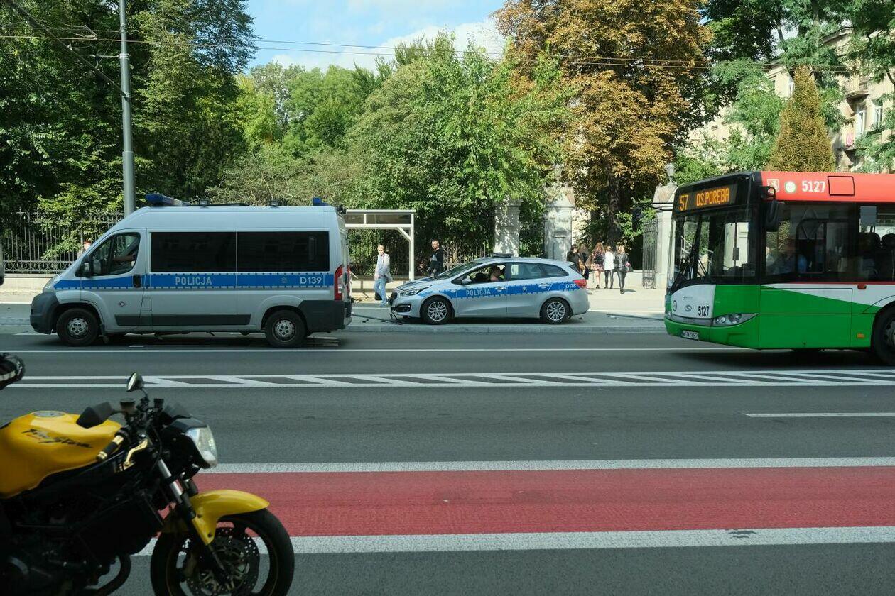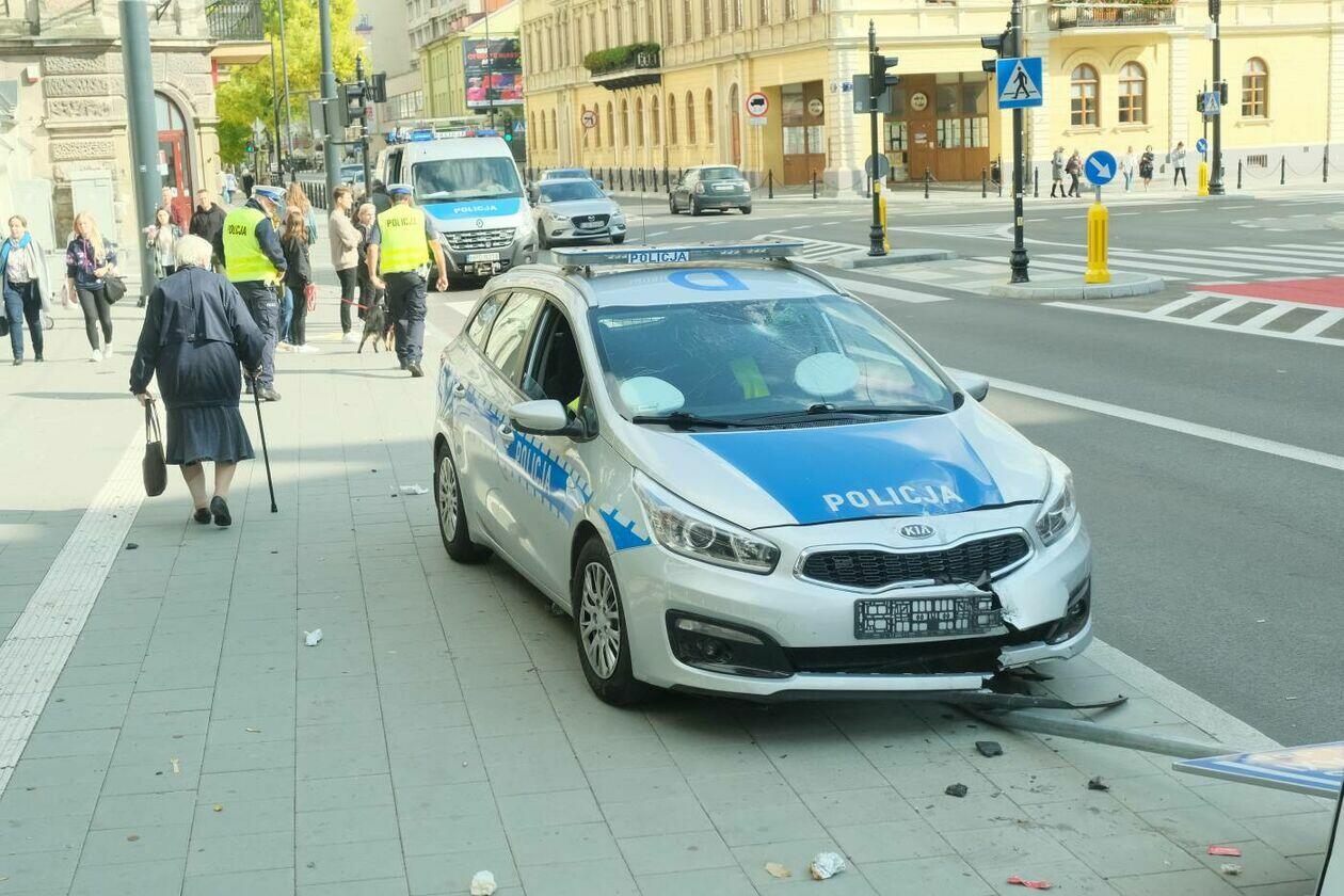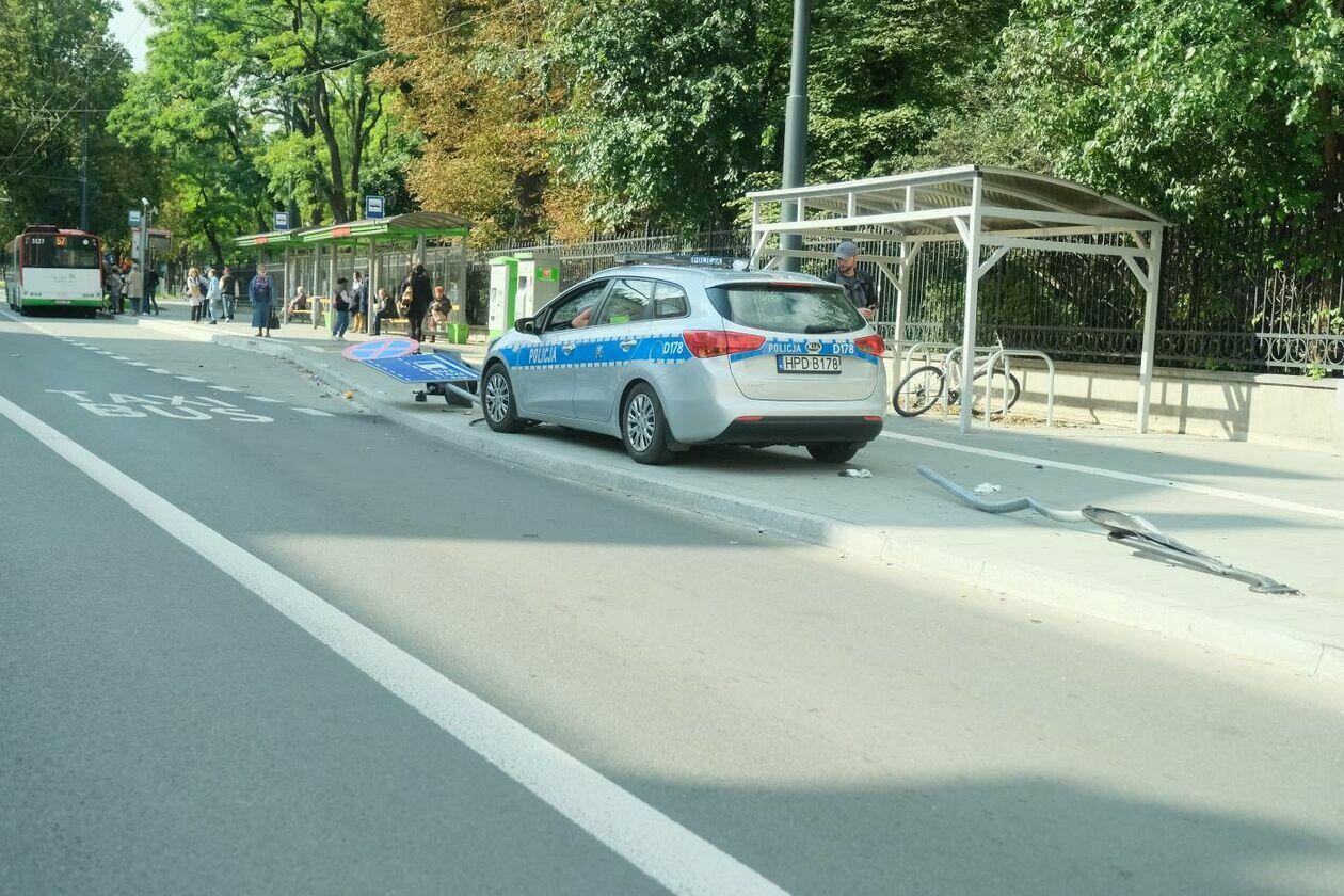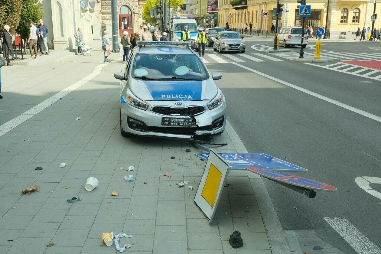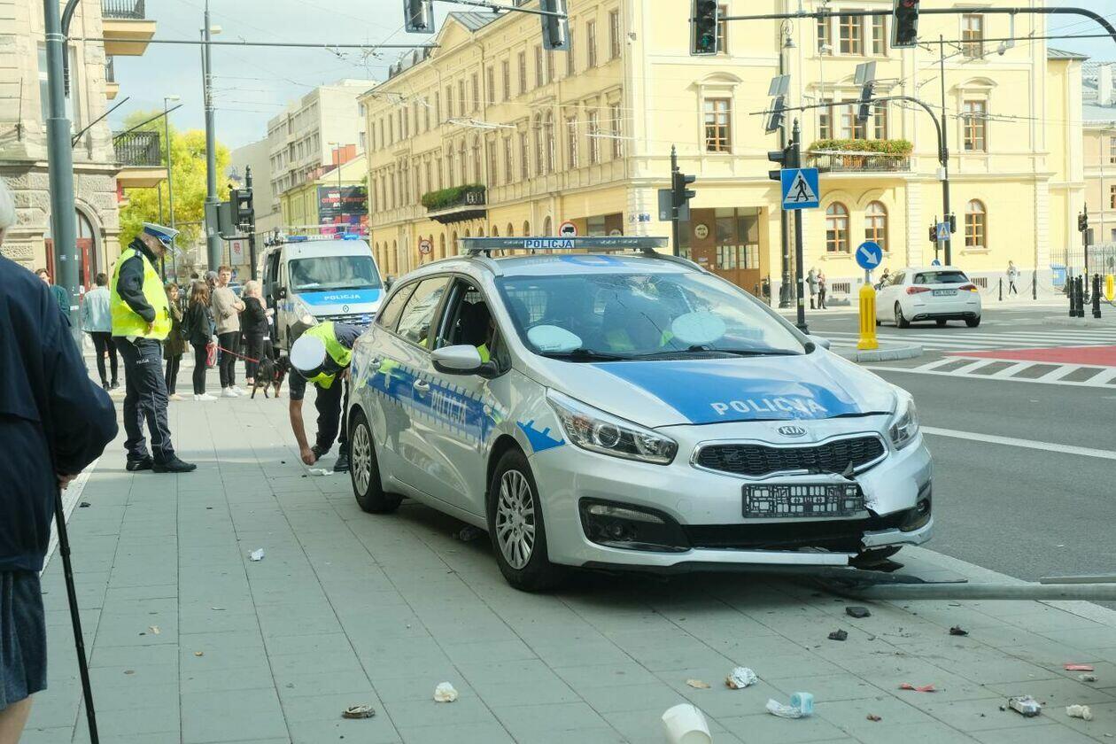 Pościg za motocyklistą. Rozbity jest jeden z radiowozów