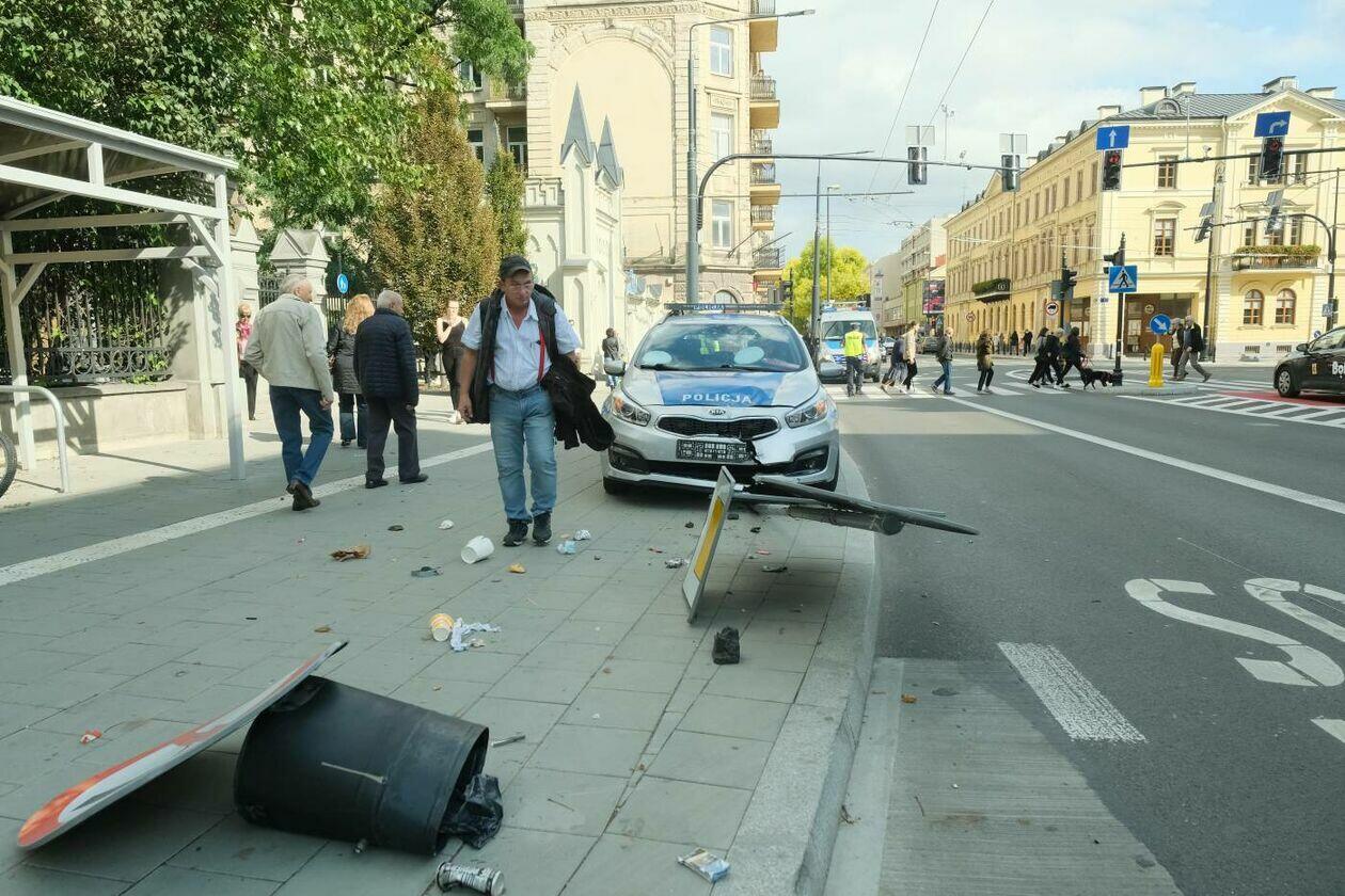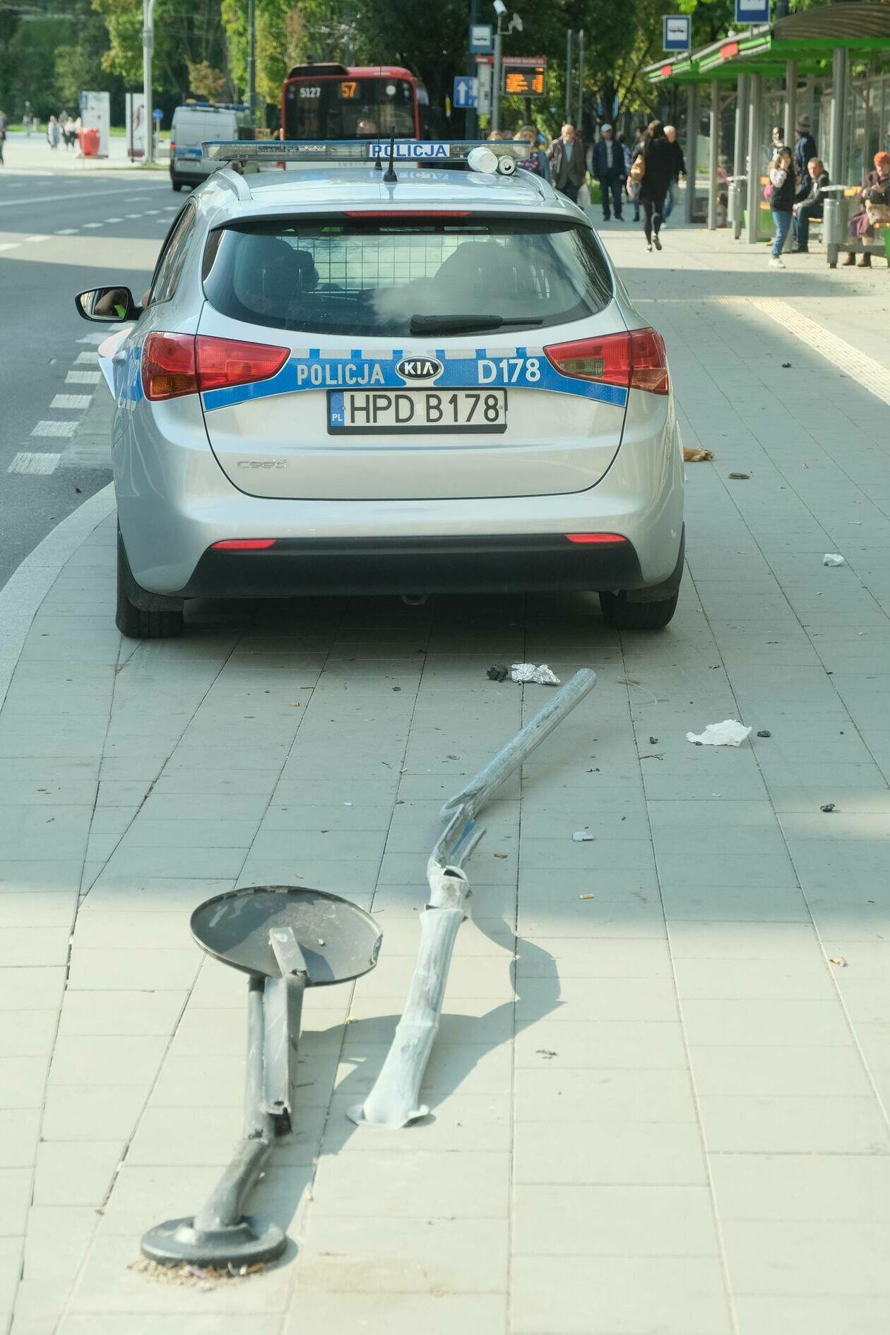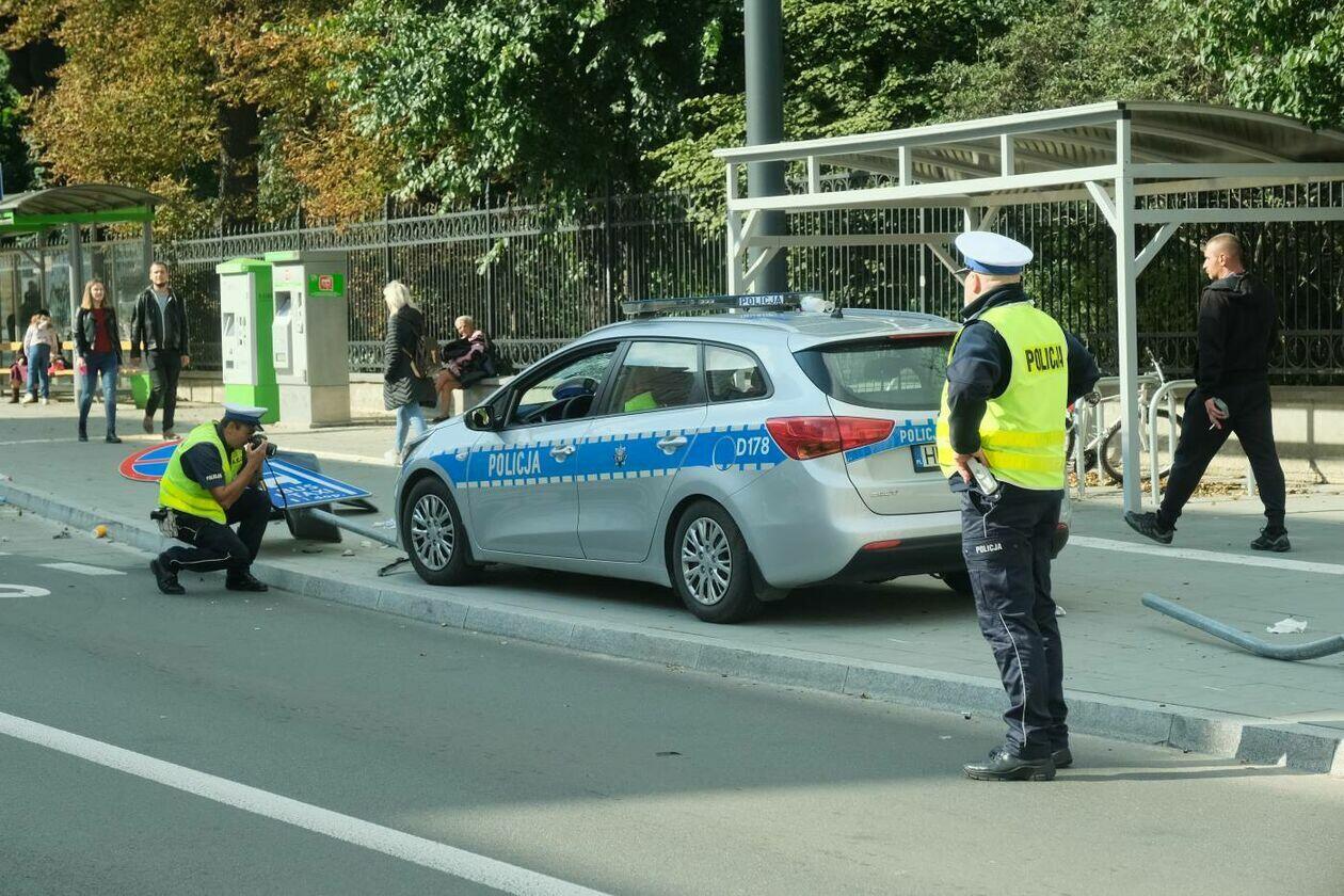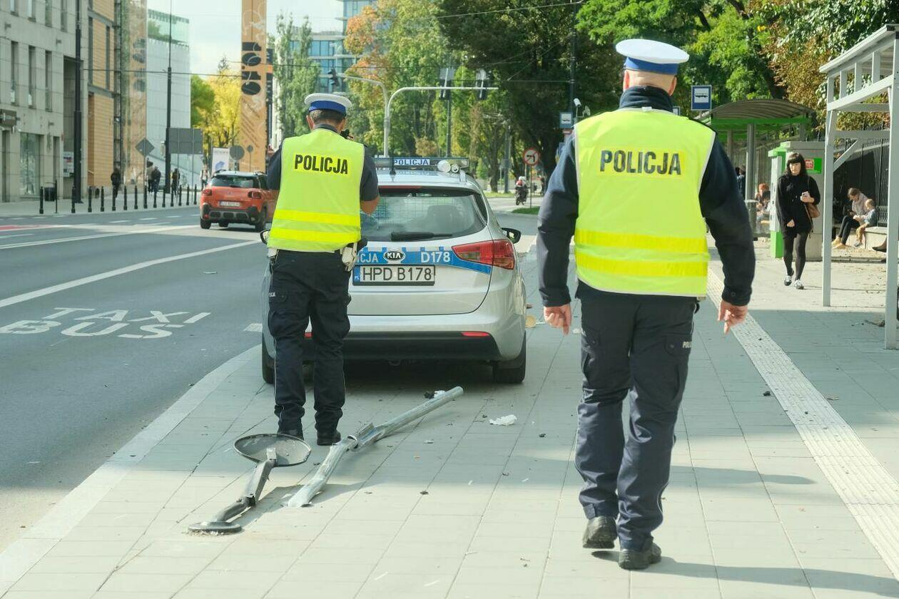 Pościg za motocyklistą. Rozbity jest jeden z radiowozów