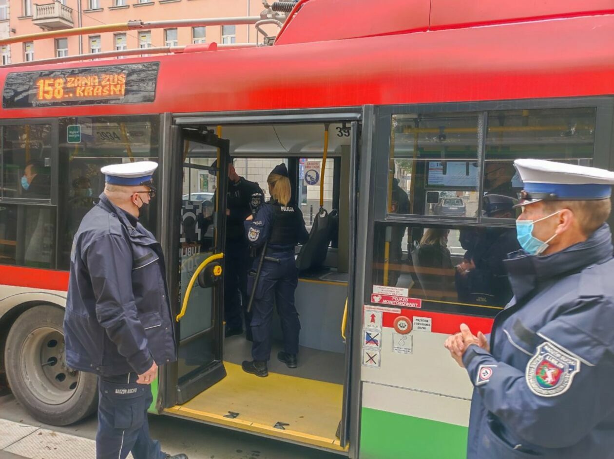 Kontrole policji w autobusach komunikacji miejskiej w Lublin...