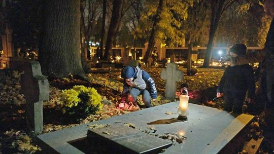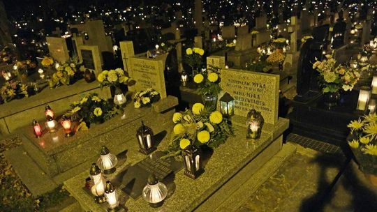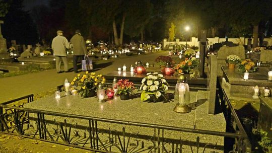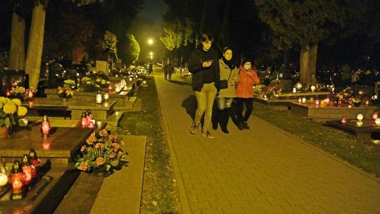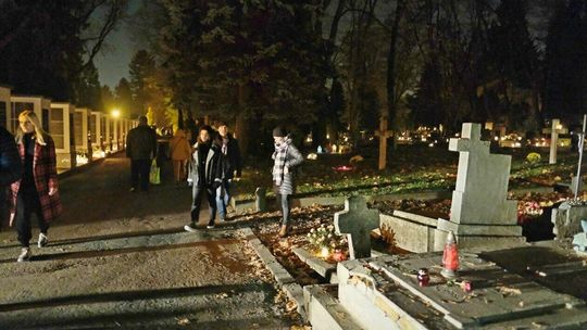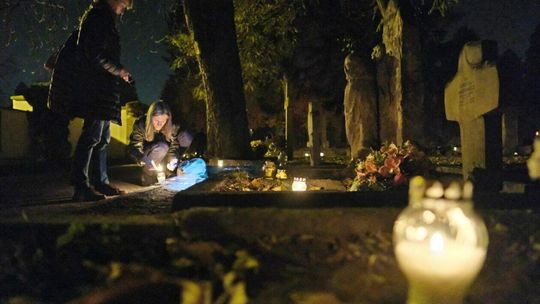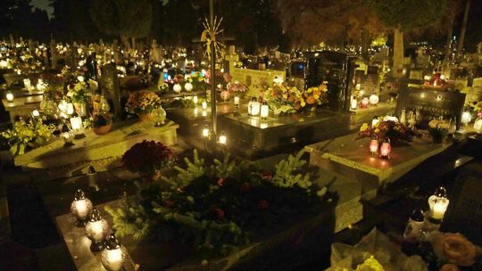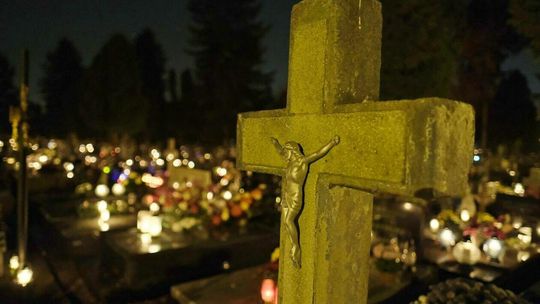 Cmentarz przy ul. Lipowej w nocnej scenerii