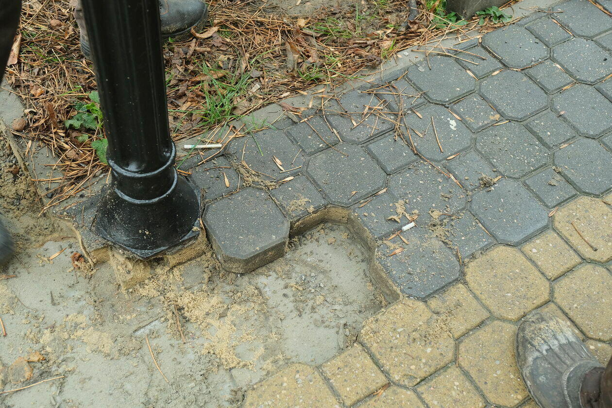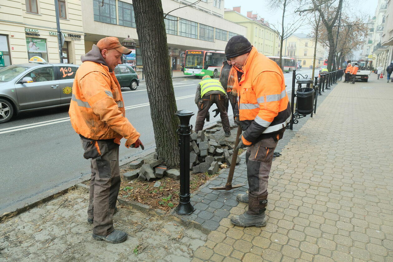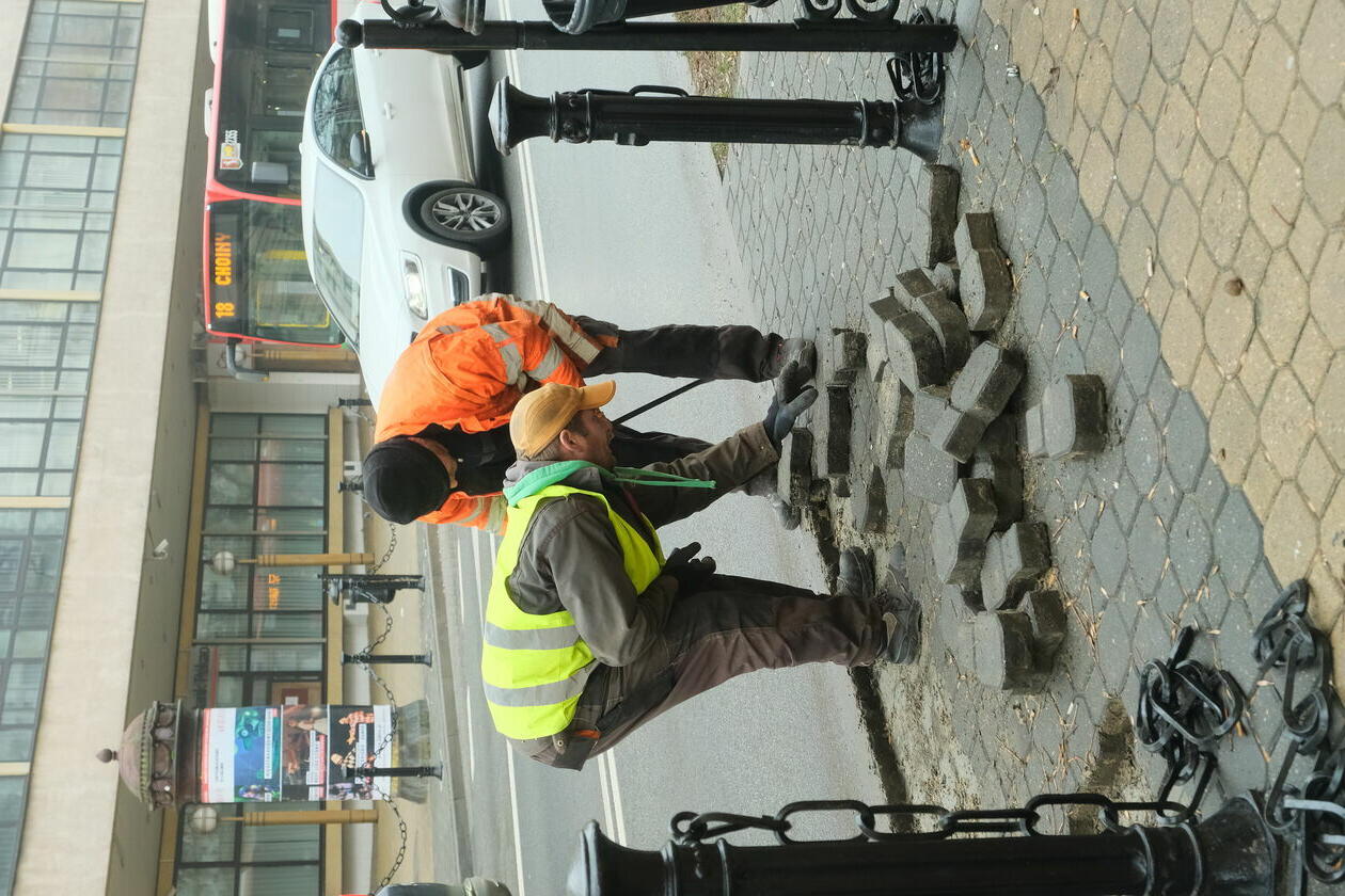 Usuwanie kostki brukowej na Krakowskim Przedmieściu